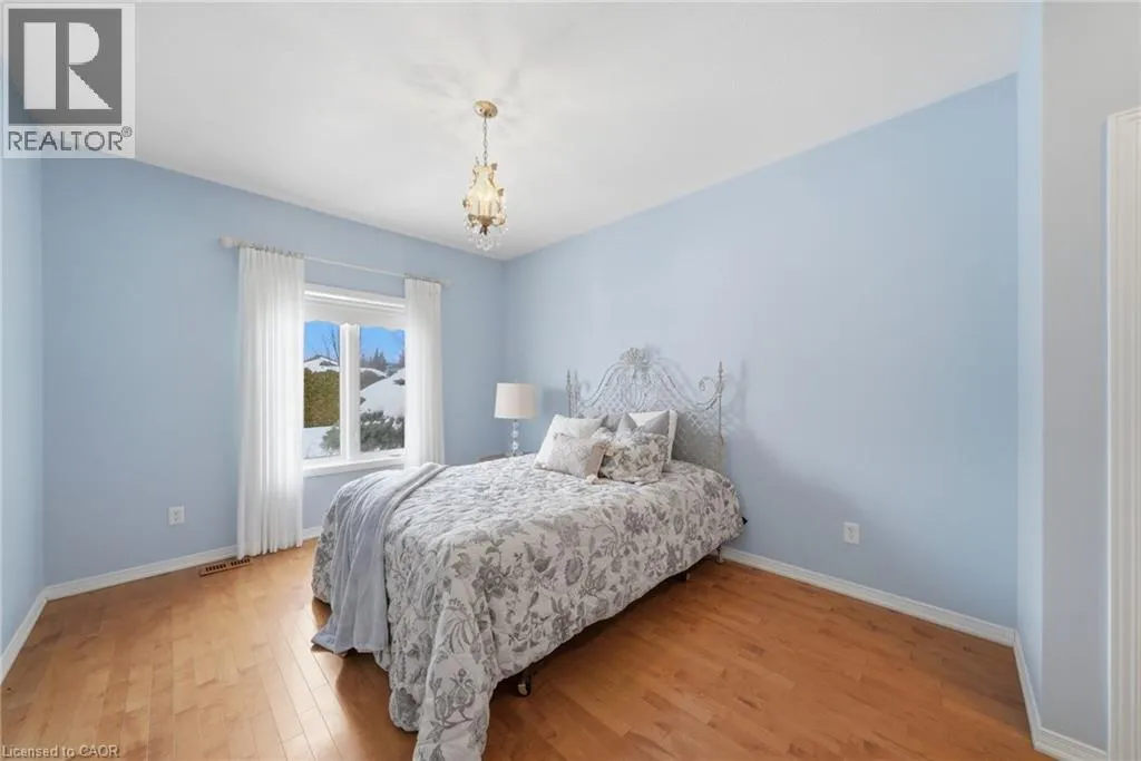 From Twenty W/Garth, N on Garth, E on Abbotsford, N on Manitoulin Welcome to the highly sought-after Garth Trails Complex, where easy living meets a true sense of community. This beautifully maintained 2-bedroom, 2-bath bungalow offers an ideal layout for those looking to downsize without compromise. Hardwood floors flow throughout, enhancing the homeâs open-concept design and spacious principal rooms, perfect for both everyday living and entertaining. The bright, functional kitchen seamlessly connects to the living and dining areas, creating a welcoming space youâll love coming home to. The expansive unfinished basement provides endless potentialâwhether you envision a recreation room, home office, hobby space, or guest retreat, itâs ready for your personal touch. Set within a meticulously cared-for community, residents enjoy exceptional amenities including a pool, party room, exercise room, media room, and tennis courtsâall just steps from your door. Peaceful, social, and well-managed, this is bungalow condo living at its best. Perfect for downsizers seeking comfort, convenience, and communityâthis is a place where your next chapter begins effortlessly. (id:27476)