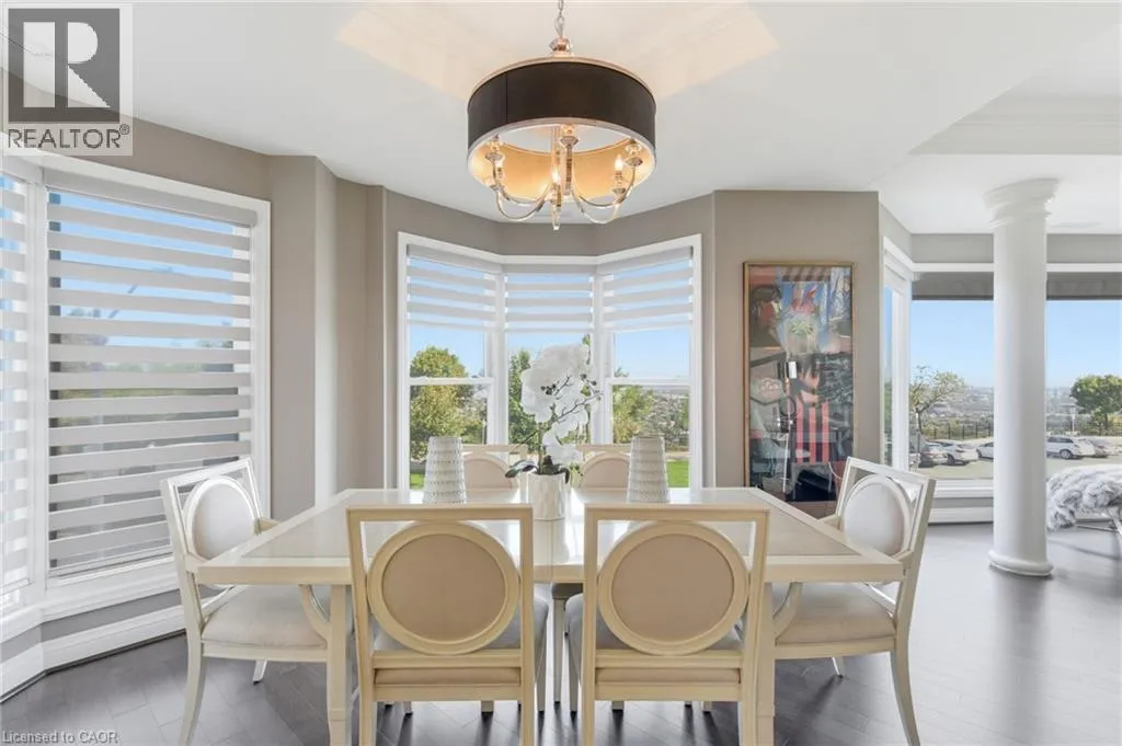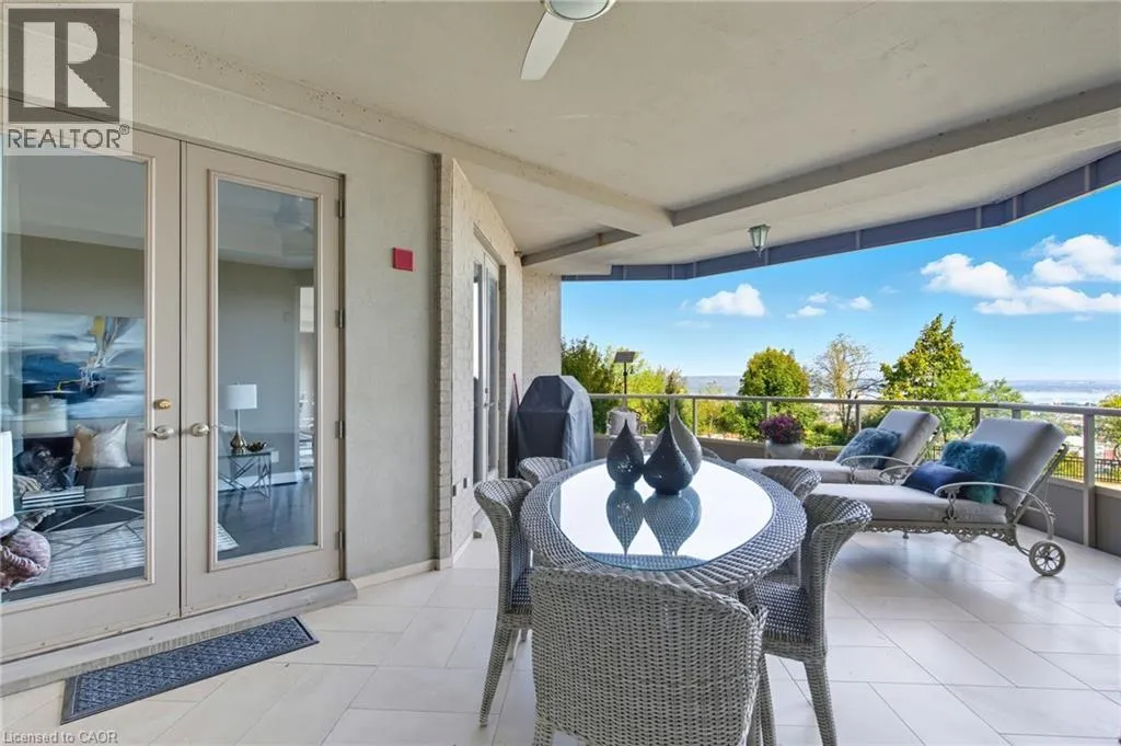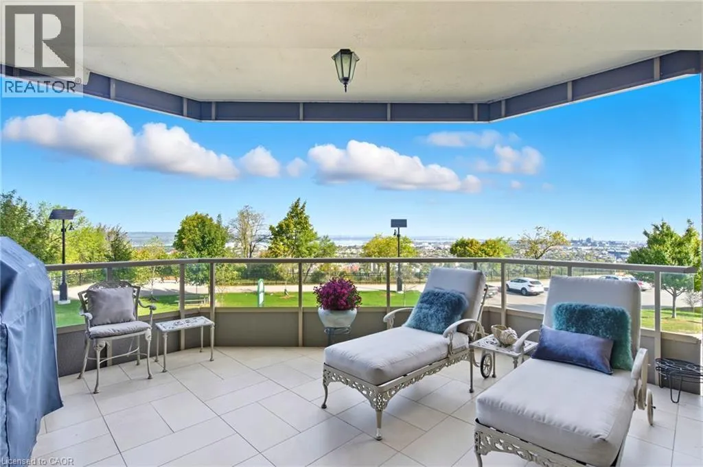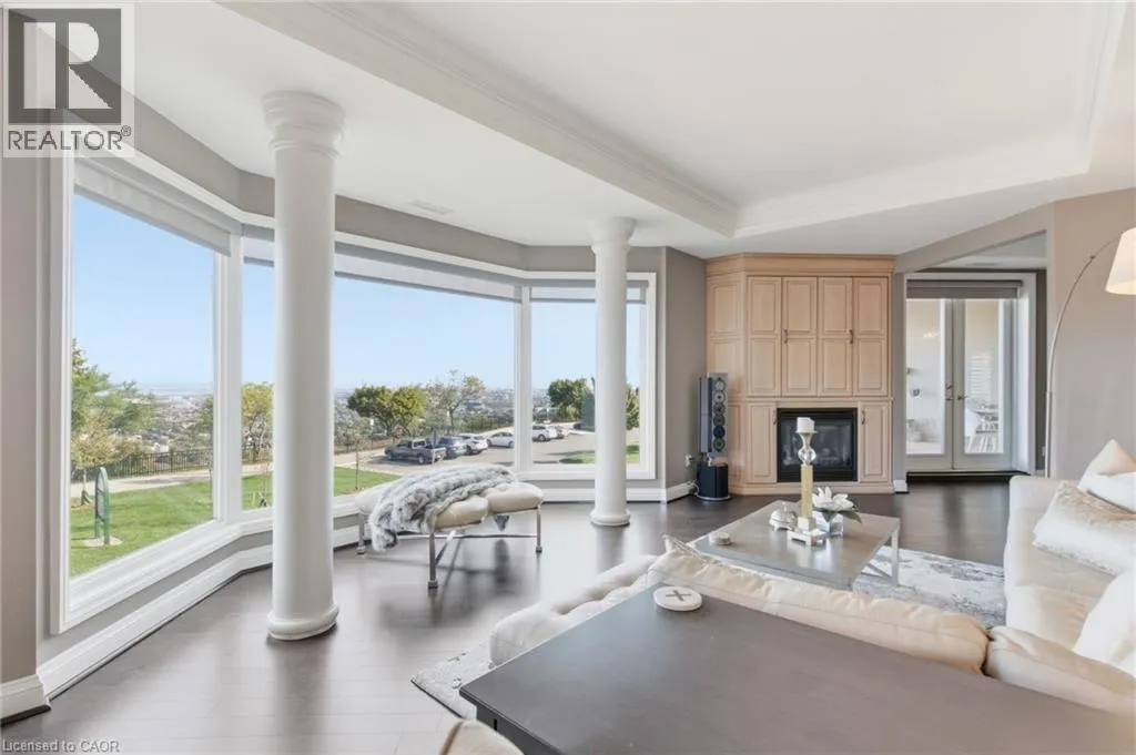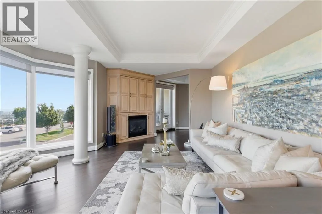 Summit to Mountain Park Welcome to âThe Madisonâ, an exclusive boutique condominium that embodies timeless elegance and refined living. Perfectly perched along the escarpment, this residence offers a sophisticated retreat where design, comfort, and lifestyle unite in perfect harmony. This 2,400 sq ft luxury suite features 3 bedrooms, 2 bathrooms, and a private elevator opening directly into your home, creating a sense of privacy and prestige. Every detail reflects superior craftsmanship â from coffered ceilings and crown molding to hardwood floors, granite surfaces, pot lighting, and custom cabinetry throughout. The gourmet kitchen inspires culinary creativity with dual refrigerators, built-in ovens, cooktop, and dishwasher, ideal for hosting or everyday living. The expansive great room, centered around a gas fireplace, opens to a 400 sq ft terrace that invites morning coffee or evenings under the stars. The primary suite offers a serene escape with walk-in closets and a spa-like 5-piece ensuite designed for relaxation. The second bedroom features its own private balcony and walk-in closet, while the third bedroom or den offers flexibility for a home office or cozy lounge. At The Madison, luxury extends beyond your door â a place where you can entertain effortlessly, unwind in style, and enjoy the ease of in-suite laundry with built-ins and a beverage fridge, two underground parking spaces, and a storage locker. Elegant, intimate, and distinctly sophisticated â The Madison offe s a lifestyle as exceptional as its design. (id:27476)