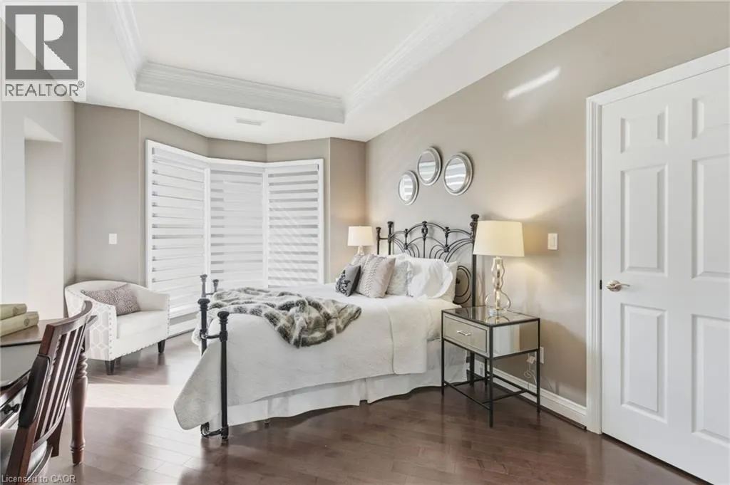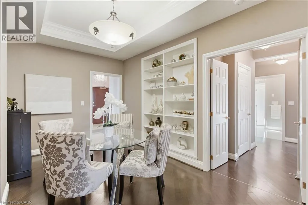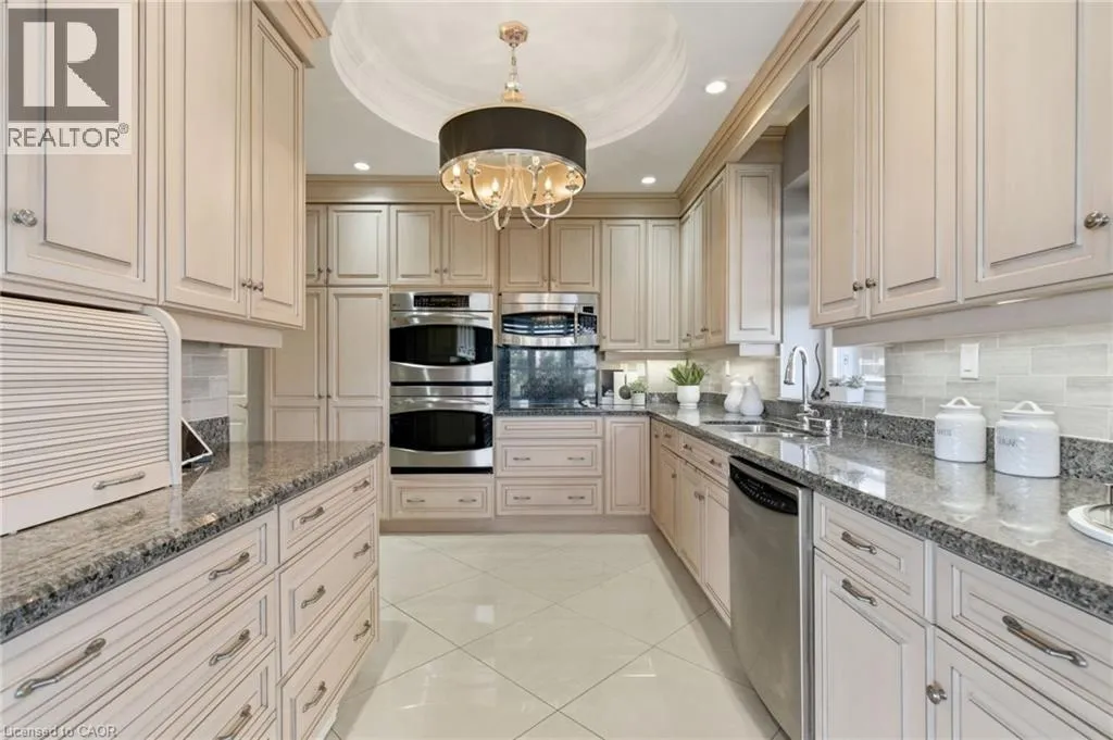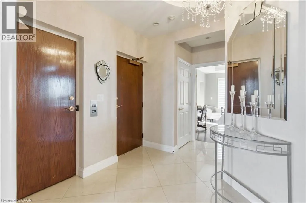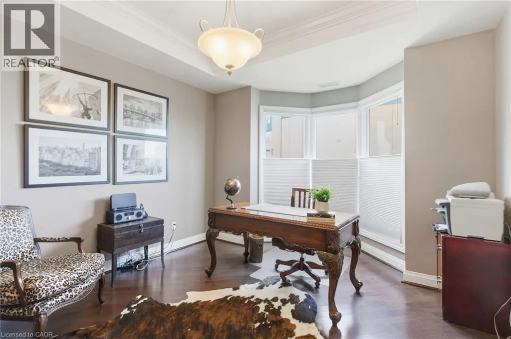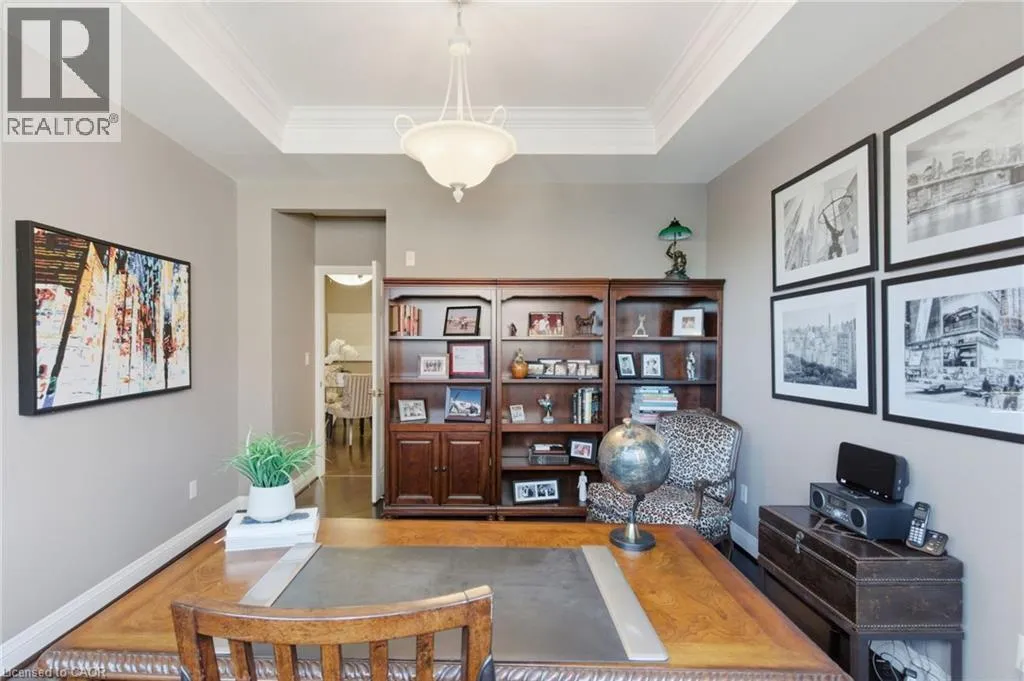 Summit to Mountain Park Welcome to âThe Madisonâ, an exclusive boutique condominium that embodies timeless elegance and refined living. Perfectly perched along the escarpment, this residence offers a sophisticated retreat where design, comfort, and lifestyle unite in perfect harmony. This 2,400 sq ft luxury suite features 3 bedrooms, 2 bathrooms, and a private elevator opening directly into your home, creating a sense of privacy and prestige. Every detail reflects superior craftsmanship â from coffered ceilings and crown molding to hardwood floors, granite surfaces, pot lighting, and custom cabinetry throughout. The gourmet kitchen inspires culinary creativity with dual refrigerators, built-in ovens, cooktop, and dishwasher, ideal for hosting or everyday living. The expansive great room, centered around a gas fireplace, opens to a 400 sq ft terrace that invites morning coffee or evenings under the stars. The primary suite offers a serene escape with walk-in closets and a spa-like 5-piece ensuite designed for relaxation. The second bedroom features its own private balcony and walk-in closet, while the third bedroom or den offers flexibility for a home office or cozy lounge. At The Madison, luxury extends beyond your door â a place where you can entertain effortlessly, unwind in style, and enjoy the ease of in-suite laundry with built-ins and a beverage fridge, two underground parking spaces, and a storage locker. Elegant, intimate, and distinctly sophisticated â The Madison offe s a lifestyle as exceptional as its design. (id:27476)