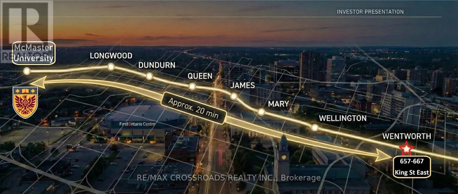 Cross Streets: King St E /Wentworth. ** Directions: North West. Rare transit-oriented mixed-use Assemblage [657-667 King St E] on Hamilton's future LRT corridor. Three contiguous properties offering over 11,400 sq. ft. of Combined Land Area with continuous King Street East frontage. Direct LRT access connecting to McMaster University, Downtown Hamilton and Eastgate Square. Exceptional redevelopment potential for mid-rise rental, student housing, mixed-use condominium or long-term income hold in a designated growth corridor. (id:27476)
