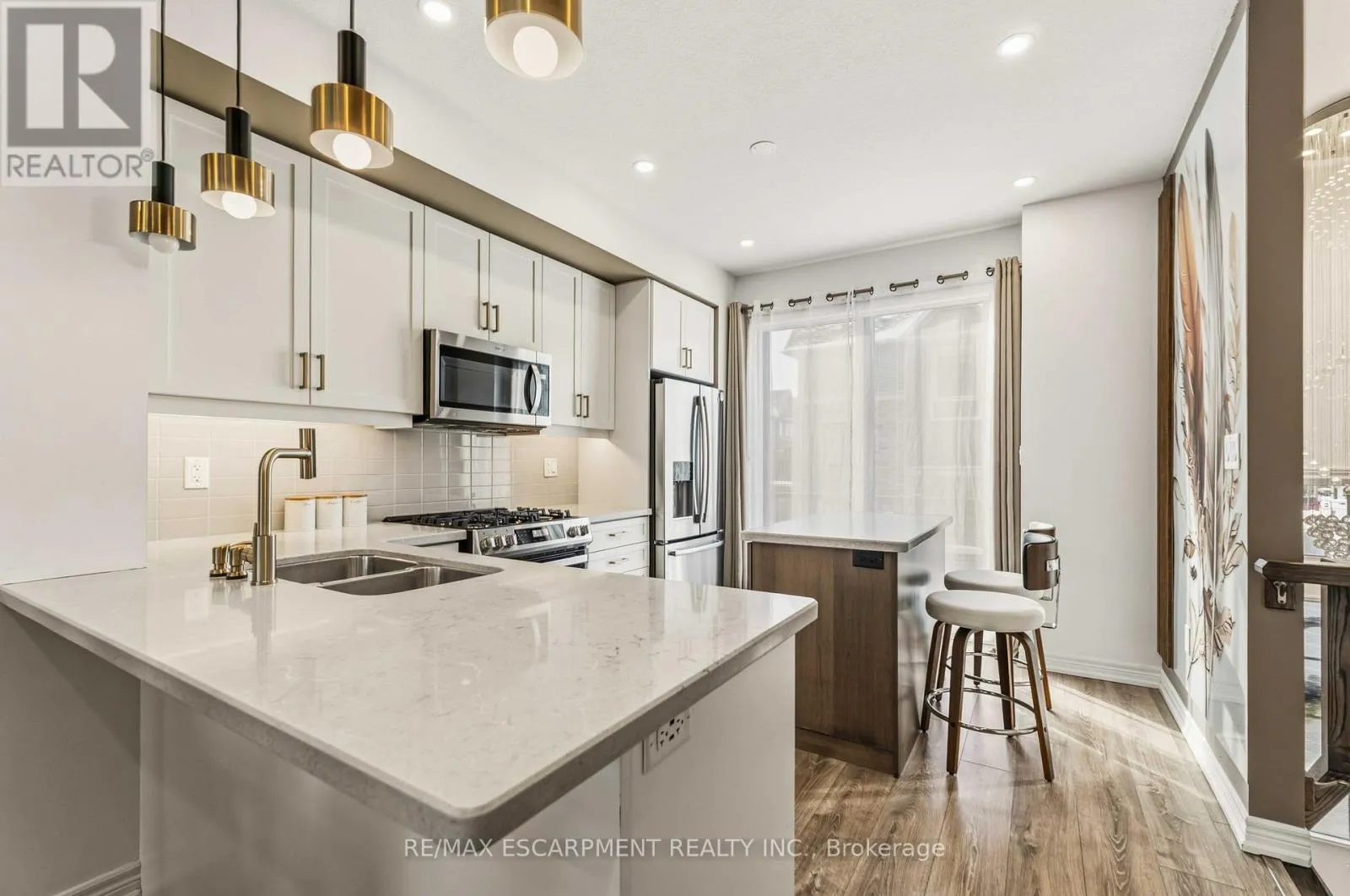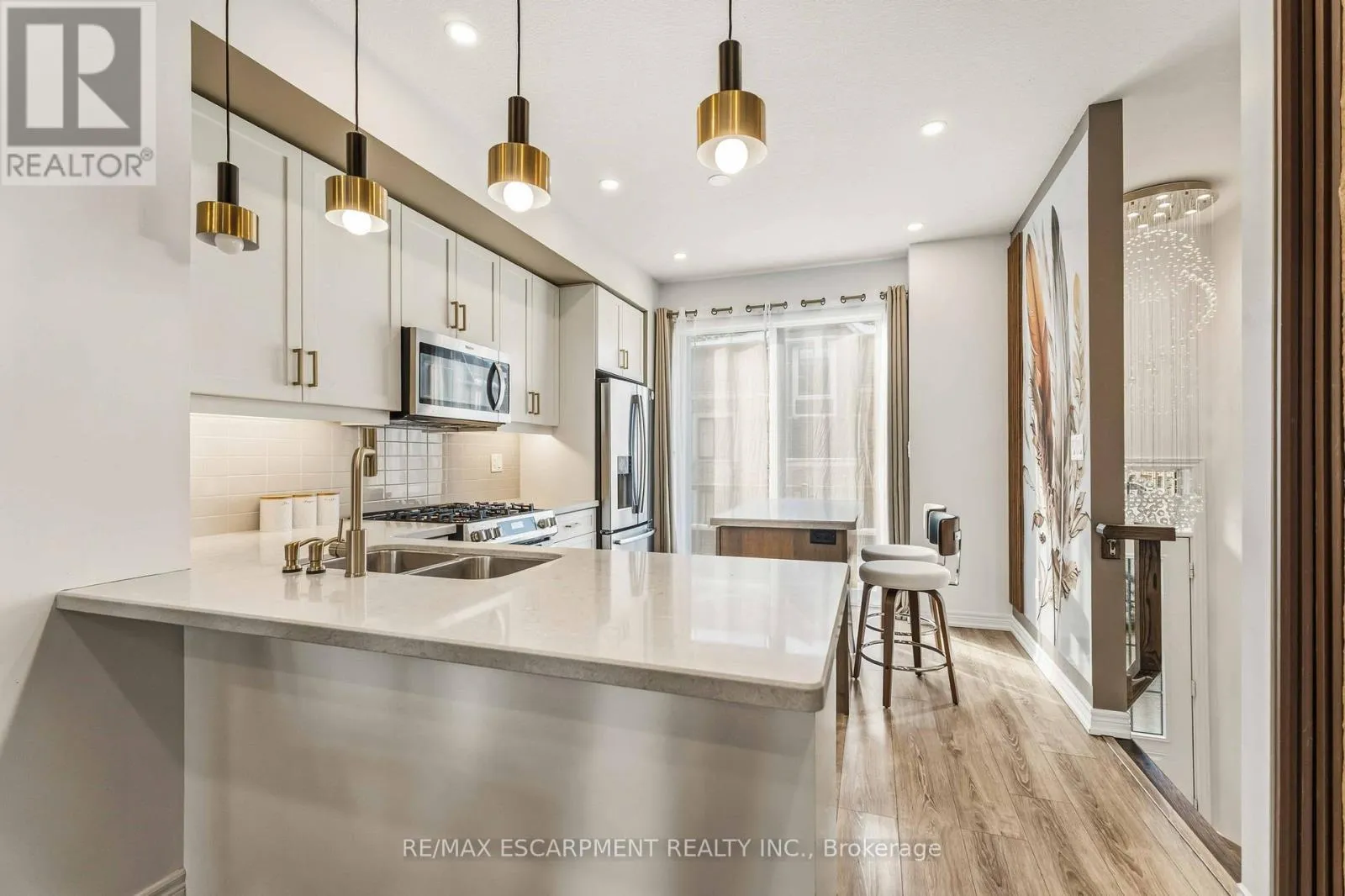 Rymal Rd E & Upper Red Hill Valley Parkway Welcome to this beautifully designed 3-storey townhome in one of Hamilton's most desirable and convenient neighbourhoods. This home features a thoughtfully planned layout that blends flexibility, comfort, and modern functionality. The second level is the heart of the home, featuring a bright, open-concept kitchen, living, and dining area - perfect for entertaining or enjoying cozy nights in. Large windows invite natural light throughout, creating a warm and inviting atmosphere. On the third floor, you'll find two generously sized bedrooms, including a spacious primary retreat complete with its own private ensuite and balcony access. A second full bathroom on this level provides added convenience for family or guests. The ground level offers a versatile family room, ideal as a media space, home office, or play area, along with a 3-piece bathroom and direct access to the garage. The basement level features an additional bedroom and a dedicated laundry room, providing extra flexibility for guests, extended family, or work-from-home needs. Situated close to shopping, schools, parks, dining, transit, and easy highway access, this home combines style, comfort, and location. A fantastic opportunity to own in the Hannon community. (id:27476)