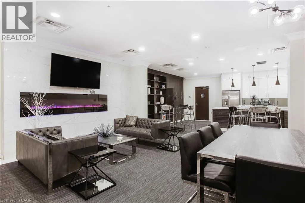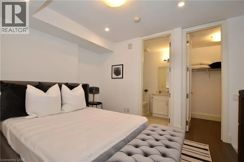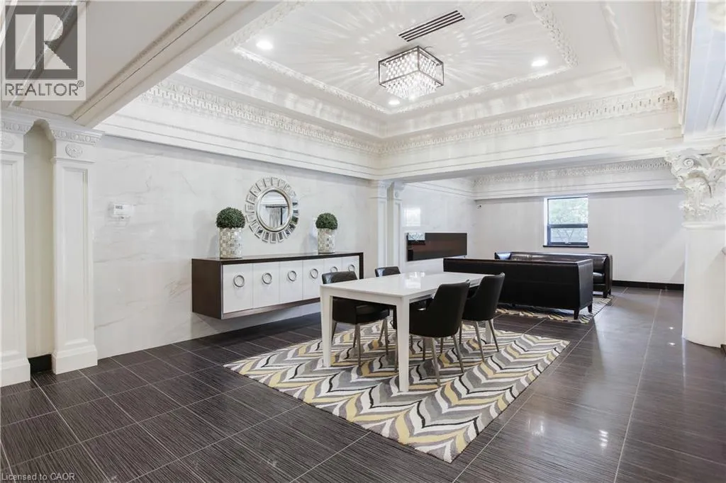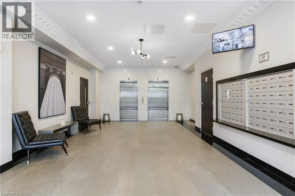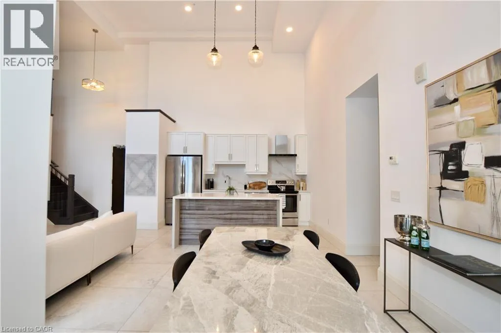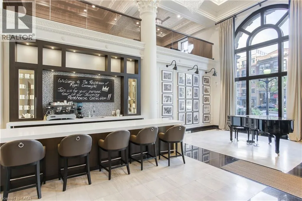 Corner of King st E. and John St. S. An incredible opportunity to call this iconic landmark building your home - introducing the unrivaled penthouse level. This exceptional loft-style suite showcases luxury living with thoughtfully curated, high-end finishes throughout.Featuring dramatic 18-foot ceilings, dual balconies, and an open-concept kitchen, living, and dining area framed by soaring windows, the space feels both expansive and inviting. Large-format tile flooring complements the sleek quartz countertops, complete with a waterfall-edge island and matching backsplash. The kitchen is fully equipped with stainless steel refrigerator, stove, dishwasher, and hood fan.Spectacular two-storey windows create a striking architectural focal point. A den just off the kitchen offers the perfect work-from-home space. In-suite laundry includes a convenient stacked washer and dryer.Retreat to the stunning primary bedroom, bathed in natural light from beautiful oversized windows. Step onto your private balcony to enjoy peaceful morning moments. The spa-inspired ensuite features a separate glass shower and soaker tub, along with a generous walk-in closet.Upstairs, the loft level offers a second bedroom overlooking the main living area, complete with its own large walk-in closet and full ensuite bath.Designed for those who value both form and function, this residence is equally suited for elegant entertaining or relaxed personal living. The thoughtfully designed floorplan is truly impressive.Included are one underground parking space and two storage lockers.Situated in the heart of downtown, you're steps from top restaurants, vibrant bars, unique boutiques, McMaster University, hospitals, and the beloved Art Crawl. This location delivers a complete live-work lifestyle experience. (id:27476)
