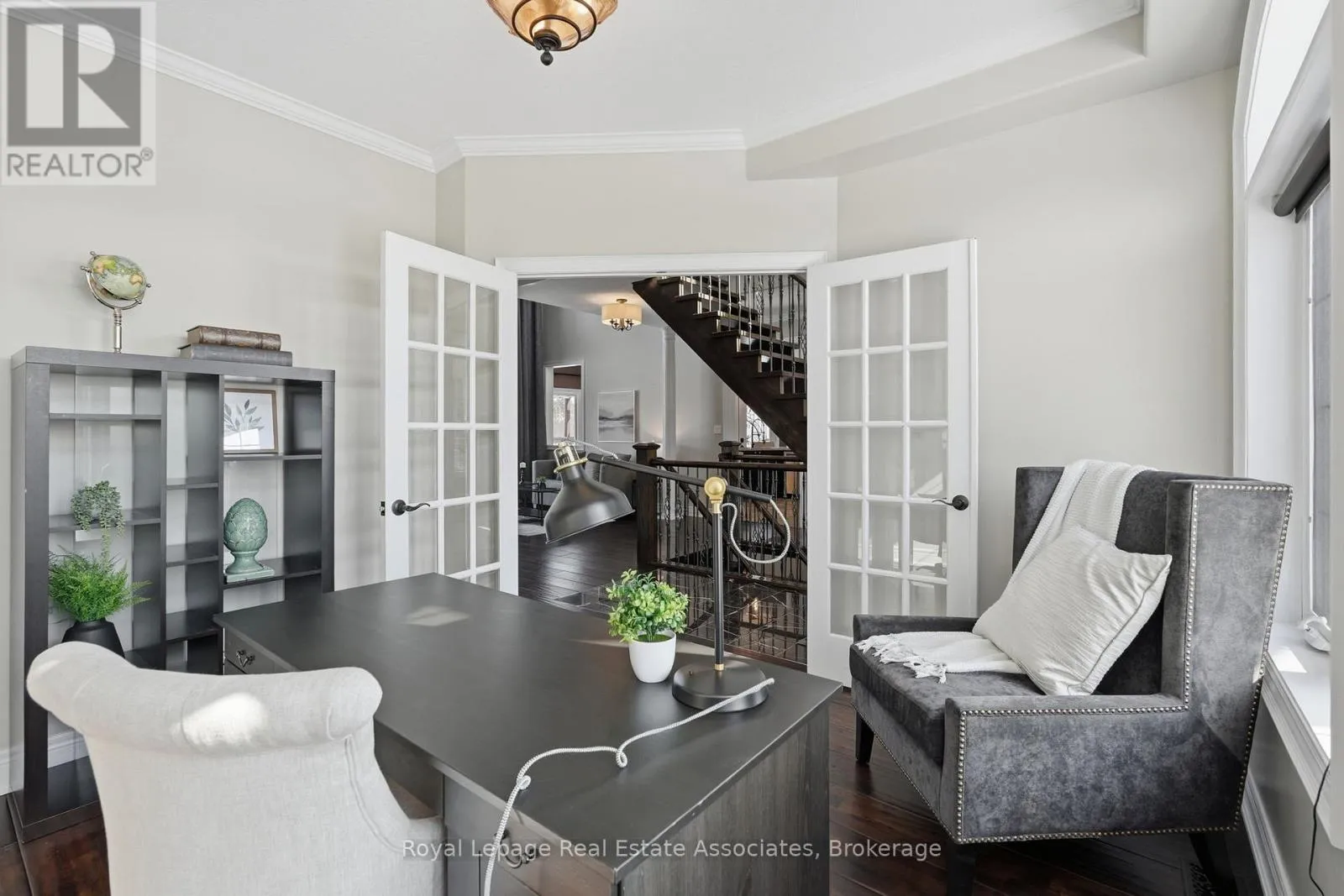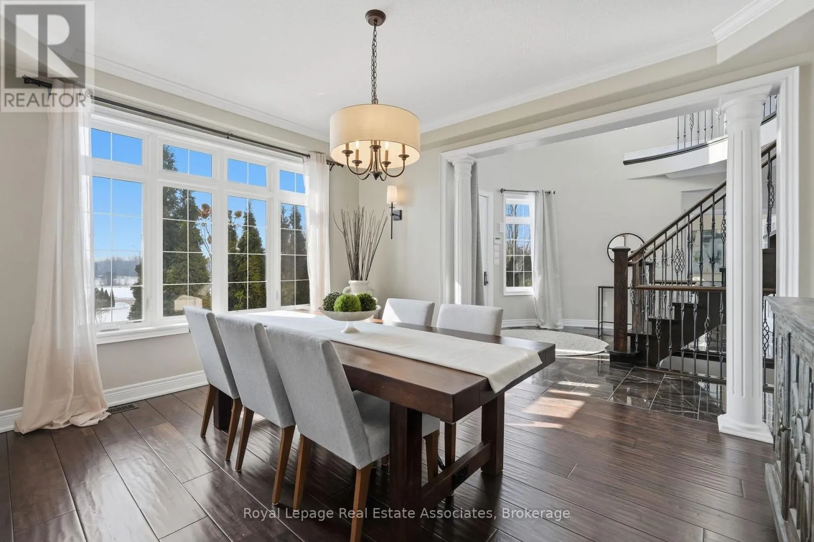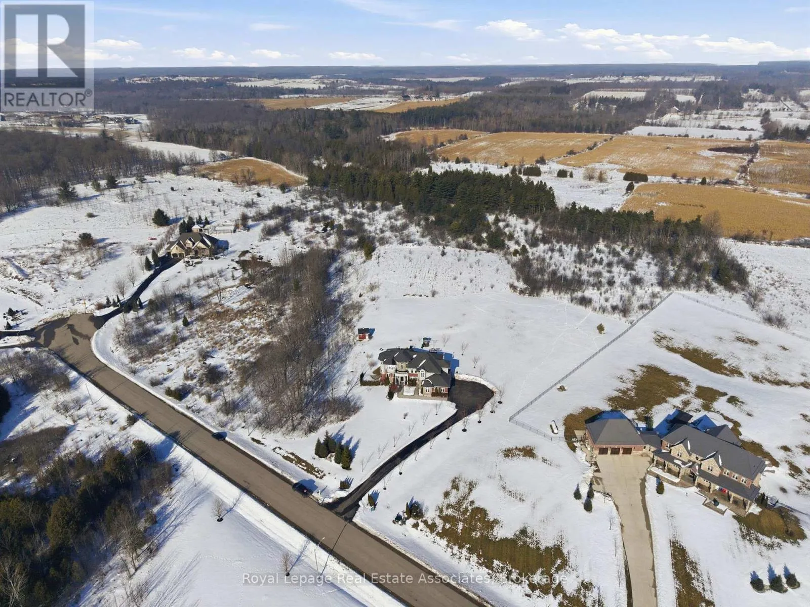 Chesswood Trail & Campbellville Road Welcome to 100 Chesswood Trail, an executive custom built estate home on a quiet cul-de-sac in prestigious Chestnut Grove Estates. Set on over 8 acres with breathtaking countryside views, this spectacular home has it all. Featuring over 6,000 sq ft of finished living space with 6+2 bedrooms, 5.5 bathrooms, this home makes a stunning first impression with a 19-foot, two-story foyer, marble flooring, and grand 'Scarlett O'Hara' Staircase. The wide-plank hardwood floors lead to a bright two-storey sitting room with floor-to-ceiling windows and a stone gas fireplace. The kitchen offers granite countertops, stainless steel appliances, and an oversized island, with a breakfast area opening to the backyard deck. The main level also includes a family room, formal dining room, office, versatile bonus room (bedroom or den), and a mudroom with built-ins, including separate exterior access and access to the 3-car garage. Upstairs, five bedrooms enjoy ensuite or shared Jack-and-Jill baths, ensuring privacy and convenience for family or guests. The luxurious primary retreat features a spa-inspired 5-piece ensuite, custom walk-in closet, and private sitting area. The fully finished walk-out basement has a separate entrance, offering excellent in-law suite potential, and includes a kitchen rough-in, large recreation area, media room, two bedrooms, a 3-piece bath, gym or multi-purpose room, and ample storage. Additional highlights include geothermal heating and cooling, pot lights, rounded wall corners, 200 AMP service, professionally landscaped grounds, and patterned concrete walkways. Conveniently located 15/20 minutes to Waterdown, Burlington, Guelph, Cambridge, this home offers quick highway access and is your perfect picturesque city retreat. (id:27476)