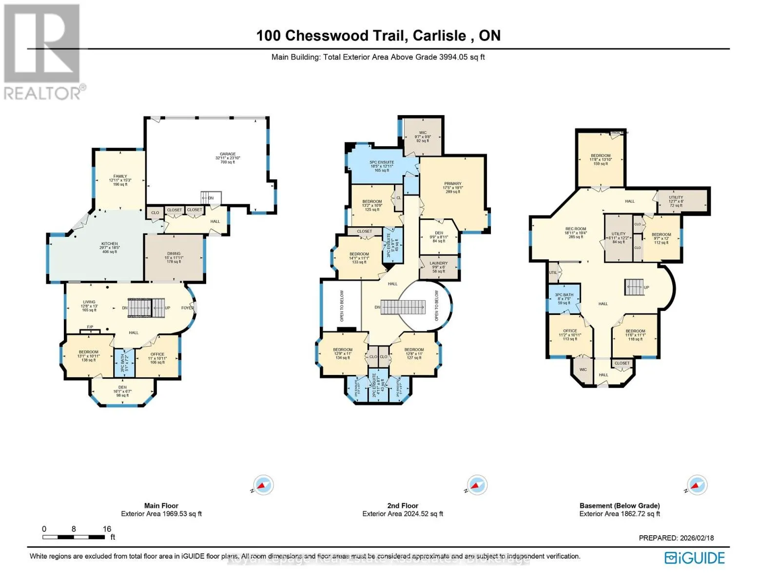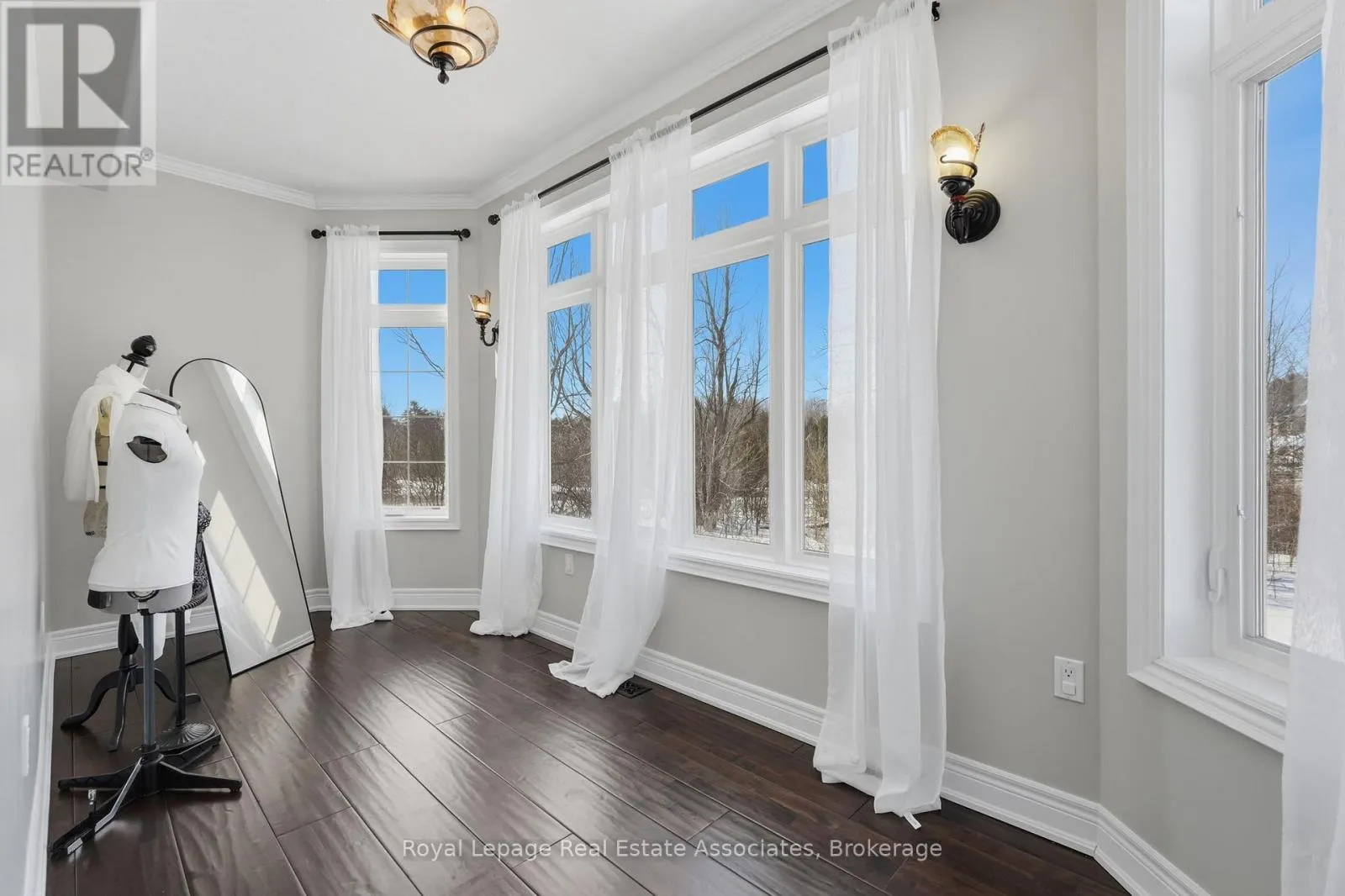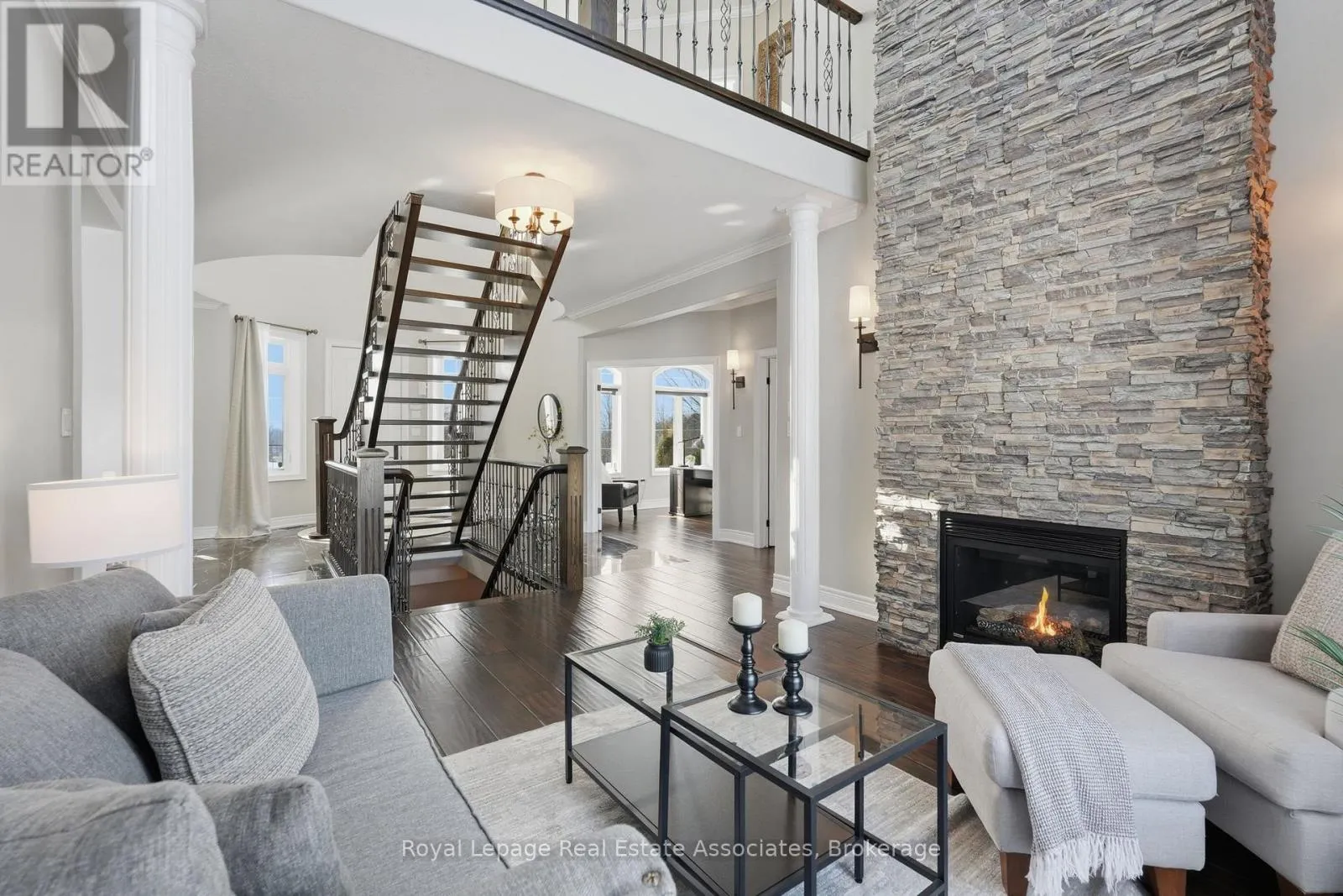 Chesswood Trail & Campbellville Road Welcome to 100 Chesswood Trail, an executive custom built estate home on a quiet cul-de-sac in prestigious Chestnut Grove Estates. Set on over 8 acres with breathtaking countryside views, this spectacular home has it all. Featuring over 6,000 sq ft of finished living space with 6+2 bedrooms, 5.5 bathrooms, this home makes a stunning first impression with a 19-foot, two-story foyer, marble flooring, and grand 'Scarlett O'Hara' Staircase. The wide-plank hardwood floors lead to a bright two-storey sitting room with floor-to-ceiling windows and a stone gas fireplace. The kitchen offers granite countertops, stainless steel appliances, and an oversized island, with a breakfast area opening to the backyard deck. The main level also includes a family room, formal dining room, office, versatile bonus room (bedroom or den), and a mudroom with built-ins, including separate exterior access and access to the 3-car garage. Upstairs, five bedrooms enjoy ensuite or shared Jack-and-Jill baths, ensuring privacy and convenience for family or guests. The luxurious primary retreat features a spa-inspired 5-piece ensuite, custom walk-in closet, and private sitting area. The fully finished walk-out basement has a separate entrance, offering excellent in-law suite potential, and includes a kitchen rough-in, large recreation area, media room, two bedrooms, a 3-piece bath, gym or multi-purpose room, and ample storage. Additional highlights include geothermal heating and cooling, pot lights, rounded wall corners, 200 AMP service, professionally landscaped grounds, and patterned concrete walkways. Conveniently located 15/20 minutes to Waterdown, Burlington, Guelph, Cambridge, this home offers quick highway access and is your perfect picturesque city retreat. (id:27476)