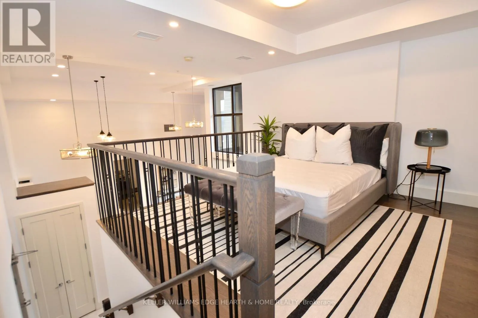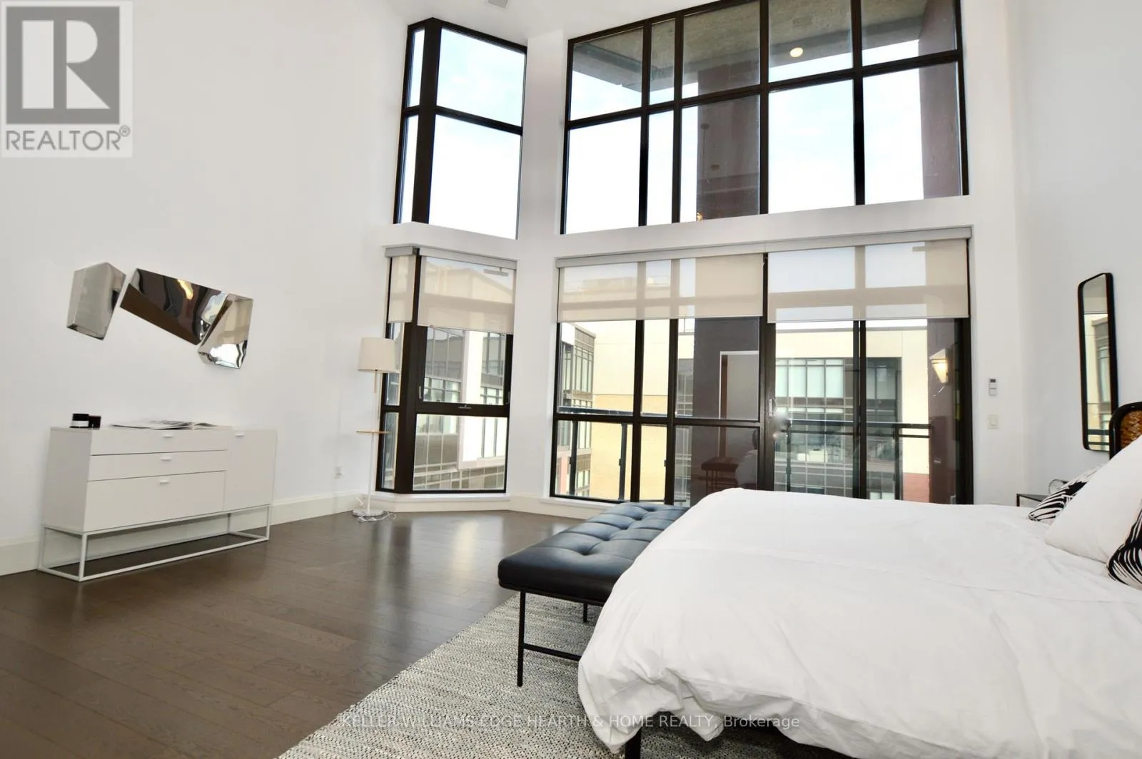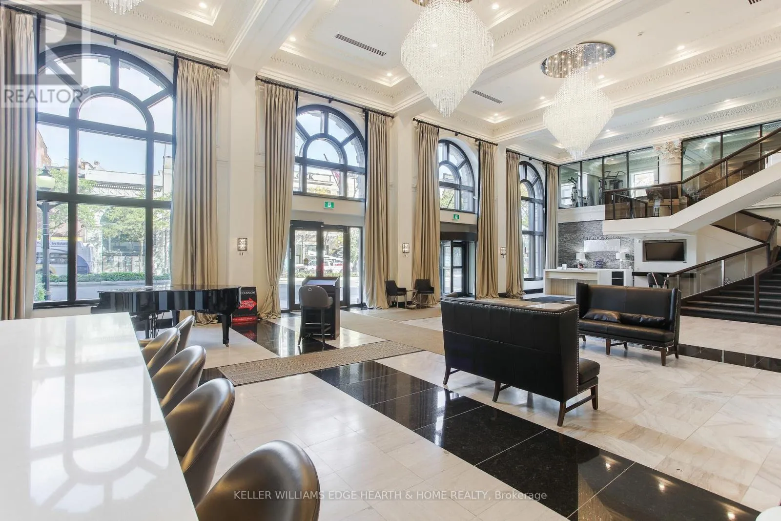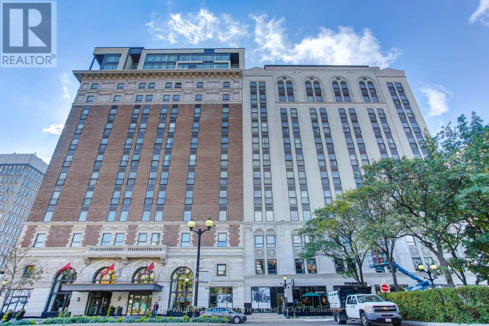 Cross Streets: Catharine. ** Directions: E. An incredible opportunity to call this iconic landmark building your home - introducing the unrivaled penthouse level. This exceptional loft-style suite showcases luxury living with thoughtfully curated, high-end finishes throughout.Featuring dramatic 18-foot ceilings, dual balconies, and an open-concept kitchen, living, and dining area framed by soaring windows, the space feels both expansive and inviting. Large-format tile flooring complements the sleek quartz countertops, complete with a waterfall-edge island and matching backsplash. The kitchen is fully equipped with stainless steel refrigerator, stove, dishwasher, and hood fan.Spectacular two-storey windows create a striking architectural focal point. A den just off the kitchen offers the perfect work-from-home space. In-suite laundry includes a convenient stacked washer and dryer.Retreat to the stunning primary bedroom, bathed in natural light from beautiful oversized windows. Step onto your private balcony to enjoy peaceful morning moments. The spa-inspired ensuite features a separate glass shower and soaker tub, along with a generous walk-in closet.Upstairs, the loft level offers a second bedroom overlooking the main living area, complete with its own large walk-in closet and full ensuite bath.Designed for those who value both form and function, this residence is equally suited for elegant entertaining or relaxed personal living. The thoughtfully designed floorplan is truly impressive.Included are one underground parking space and two storage lockers.Situated in the heart of downtown, you're steps from top restaurants, vibrant bars, unique boutiques, McMaster University, hospitals, and the beloved Art Crawl. This location delivers a complete live-work lifestyle experience. (id:27476)