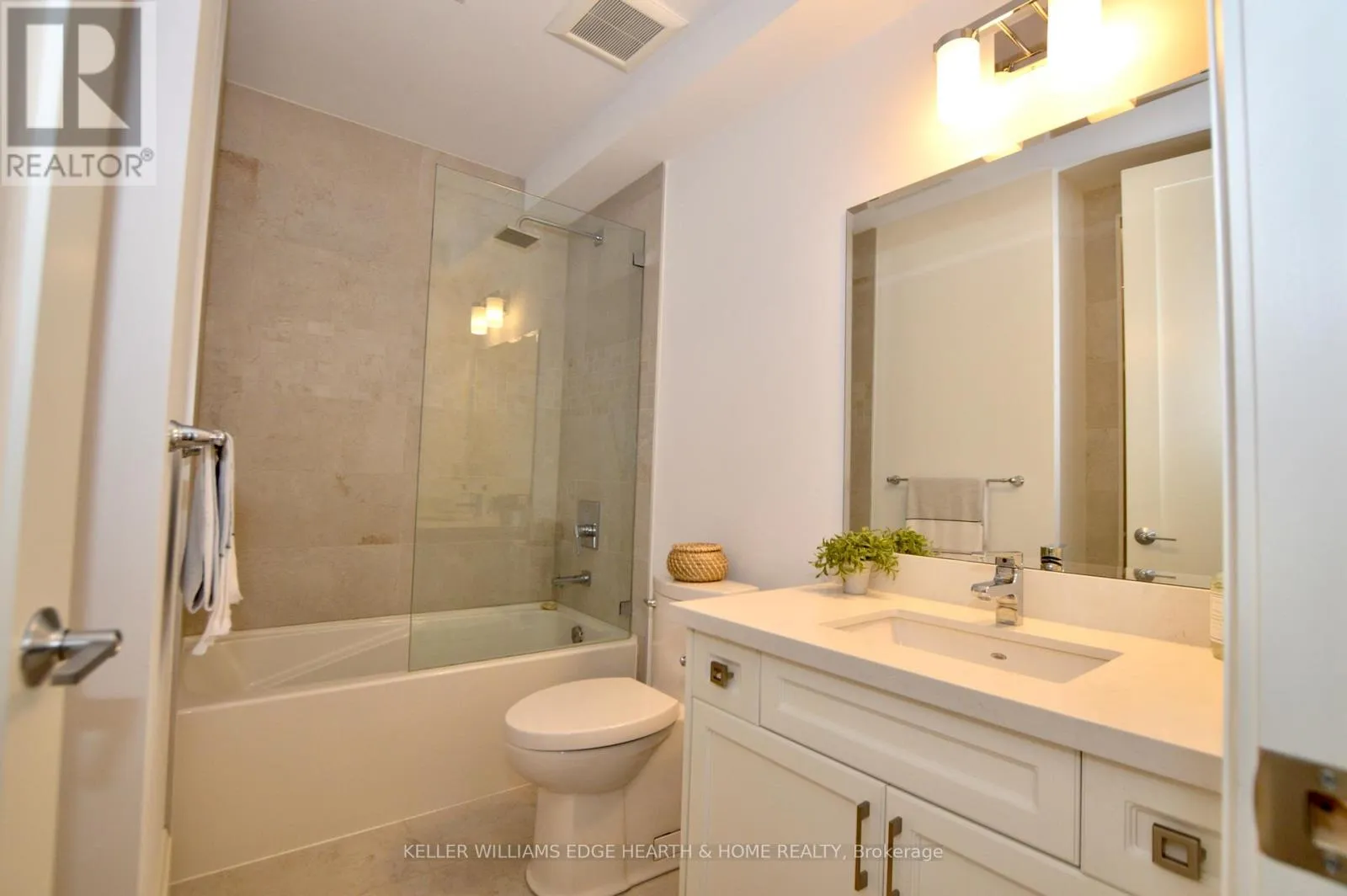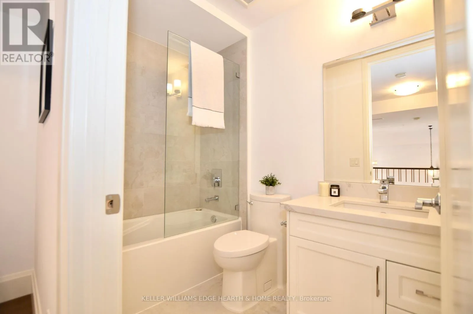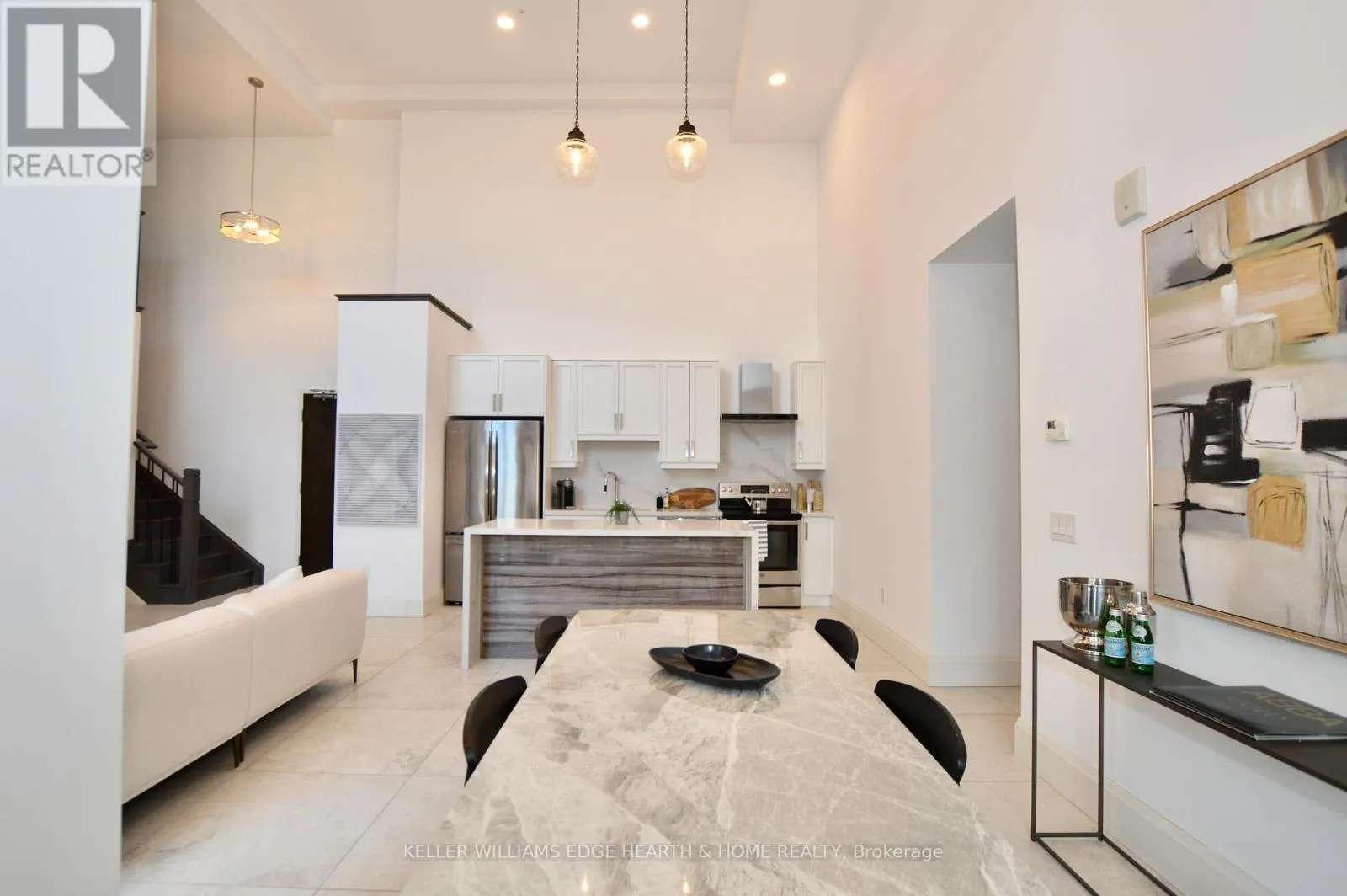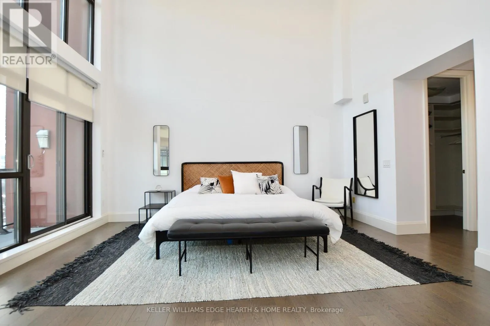 Cross Streets: Catharine. ** Directions: E. An incredible opportunity to call this iconic landmark building your home - introducing the unrivaled penthouse level. This exceptional loft-style suite showcases luxury living with thoughtfully curated, high-end finishes throughout.Featuring dramatic 18-foot ceilings, dual balconies, and an open-concept kitchen, living, and dining area framed by soaring windows, the space feels both expansive and inviting. Large-format tile flooring complements the sleek quartz countertops, complete with a waterfall-edge island and matching backsplash. The kitchen is fully equipped with stainless steel refrigerator, stove, dishwasher, and hood fan.Spectacular two-storey windows create a striking architectural focal point. A den just off the kitchen offers the perfect work-from-home space. In-suite laundry includes a convenient stacked washer and dryer.Retreat to the stunning primary bedroom, bathed in natural light from beautiful oversized windows. Step onto your private balcony to enjoy peaceful morning moments. The spa-inspired ensuite features a separate glass shower and soaker tub, along with a generous walk-in closet.Upstairs, the loft level offers a second bedroom overlooking the main living area, complete with its own large walk-in closet and full ensuite bath.Designed for those who value both form and function, this residence is equally suited for elegant entertaining or relaxed personal living. The thoughtfully designed floorplan is truly impressive.Included are one underground parking space and two storage lockers.Situated in the heart of downtown, you're steps from top restaurants, vibrant bars, unique boutiques, McMaster University, hospitals, and the beloved Art Crawl. This location delivers a complete live-work lifestyle experience. (id:27476)