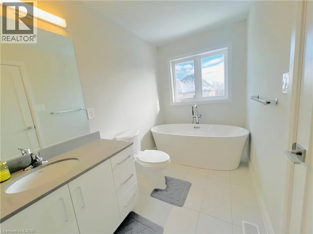 Rymal Rd W to Hazelton Ave to Alessio Dr to Cherry Blossom Heights Welcome to this newly built semi-detached 2-storey home by reputable Spallacci Homes, available for lease in the highly desirable West Hamilton Mountain. With its brick and stone exterior and covered front porch, this home offers great curb appeal in a family-friendly neighbourhood. The bright main floor features 9-foot ceilings, large windows, and an open-concept layout perfect for everyday living. The modern kitchen includes quartz countertops, ample cabinetry, and a walk-out to the rear deckâideal for summer BBQs or relaxing outdoors. Upstairs, the spacious primary bedroom offers a walk-in closet and private ensuite. Two additional bedrooms (one with its own walk-in closet) and a convenient second-floor laundry room complete the level. The partially finished basement includes a 3-piece bath for added flexibility. Located just minutes to Upper James, shopping, parks, and schools, this is a fantastic opportunity to lease a stylish home in a prime West Mountain location. Sqft and room sizes approximate. (id:27476)
