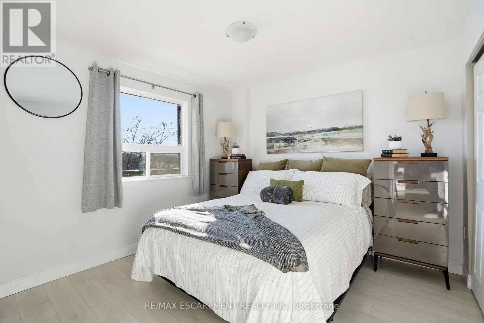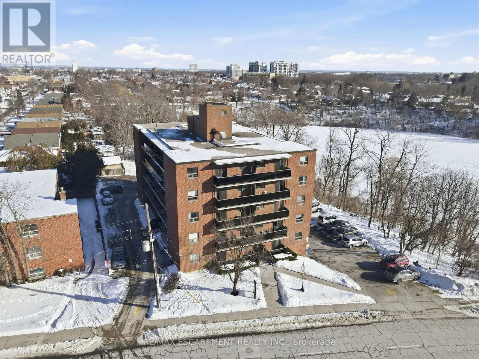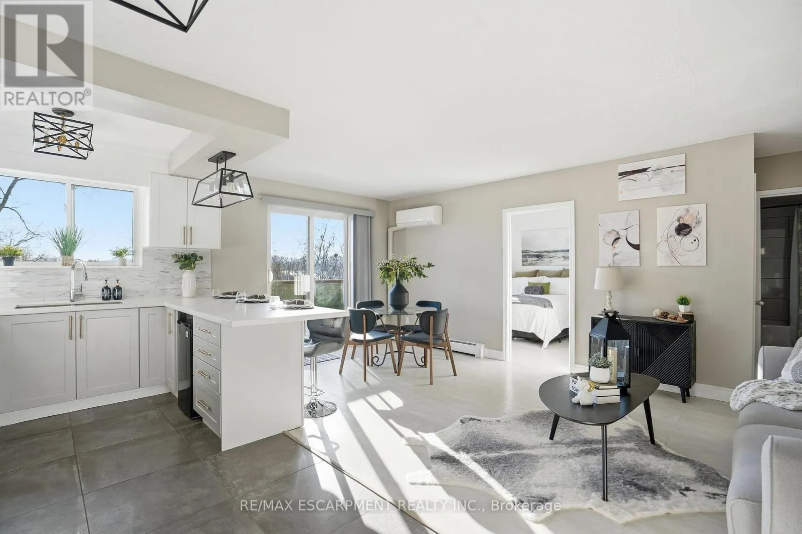 Cross Streets: Parkdale. ** Directions: King St E exit from Red Hill Valley Parkway. Welcome to this beautifully renovated condo apartment in the highly desirable Bartonville-Glenview neighbourhood of East Hamilton. Offering a comfortable, low-maintenance lifestyle, this move-in-ready unit with an owned storage locker, presents a rare combination of modern updates, peaceful surroundings, and exceptional views-ideal for first-time buyers, downsizers, or investors. The thoughtfully renovated interior features carpet-free living throughout, stone countertops, a functional breakfast bar, and one of the few units in the building with built-in air conditioning, creating a bright, modern space ideal for everyday living and entertaining. Large windows and a massive private balcony extend the living space outdoors and showcase an exceptional scenic view overlooking the tree-lined skyline of the Red Hill Valley Bowl, offering a peaceful green backdrop and a rare connection to nature seldom found in condo living. Enjoy nearby green spaces, including Red Hill Valley Trail across the street providing scenic walking and biking trails throughout the Red Hill Valley. Commuters will appreciate easy access to major routes including the Red Hill Valley Parkway, the LINC, QEW, and Highway 403, making travel across Hamilton and into the GTA efficient and stress-free. Public transit, shopping, restaurants, and essential amenities are all nearby along King Street East, Queenston Road, and Centennial Parkway. Surrounded by parks, schools, and community services, this location offers a peaceful residential setting enhanced by stunning tree-lined valley views, while remaining minutes from downtown Hamilton, Stoney Creek, and major employment hubs. A fantastic opportunity to own in a well-established East Hamilton neighbourhood known for its accessibility, natural surroundings, and lifestyle appeal. (id:27476)
