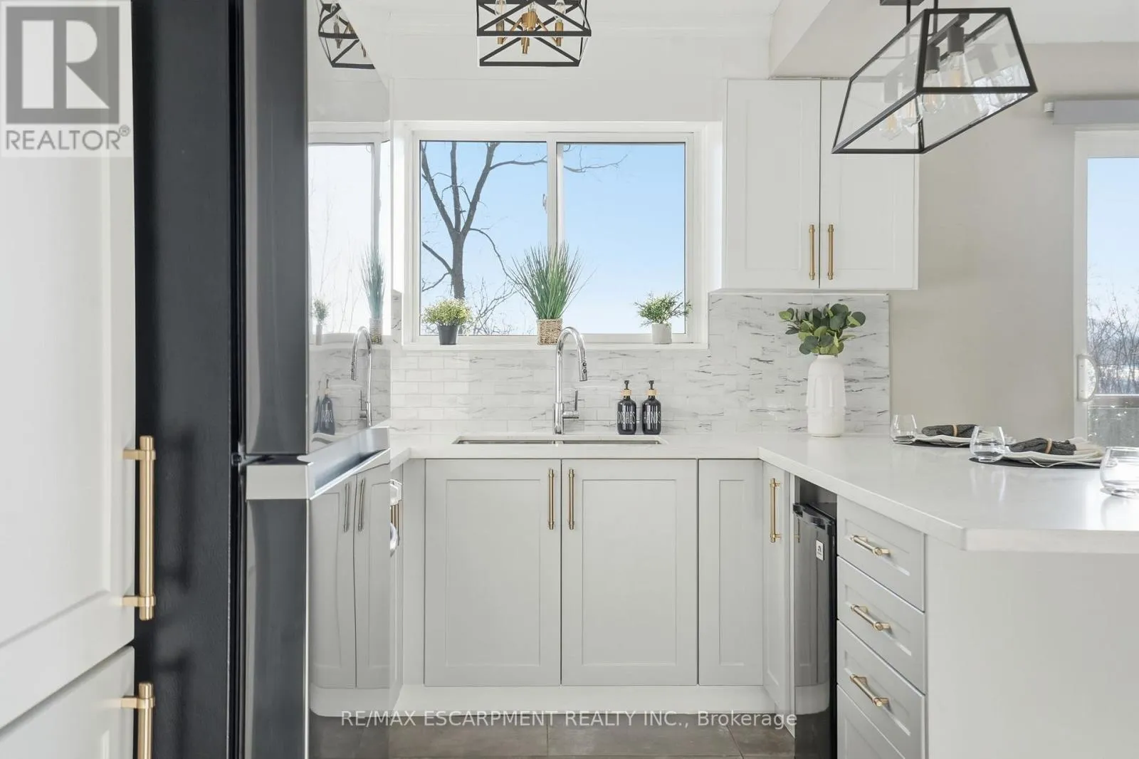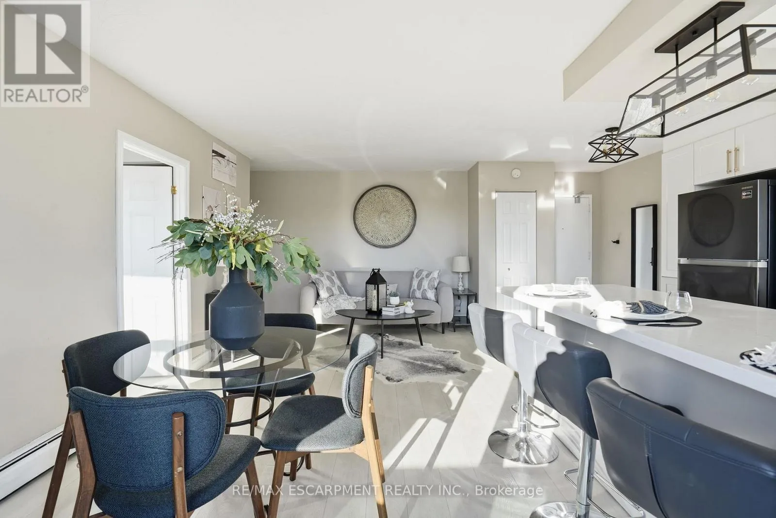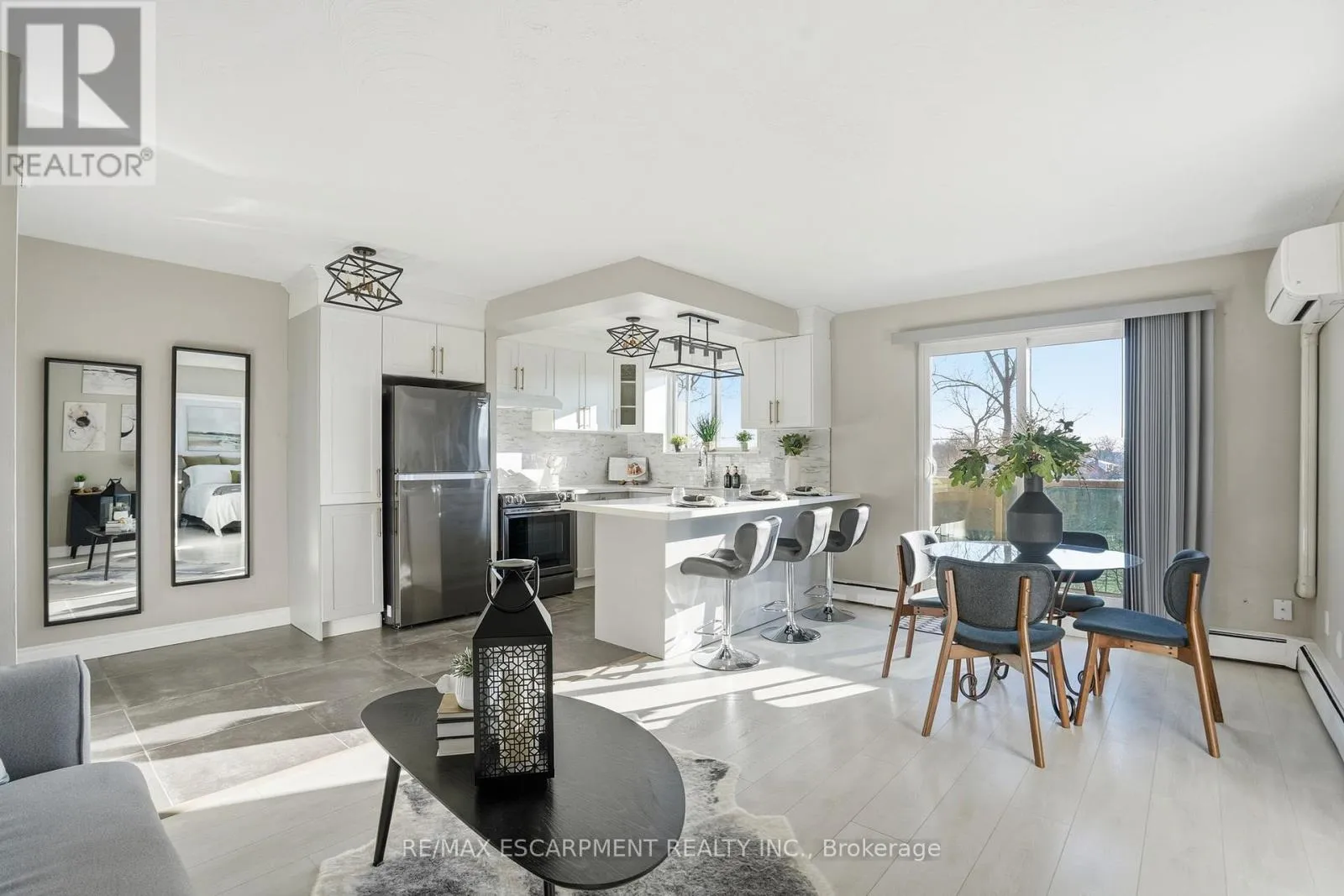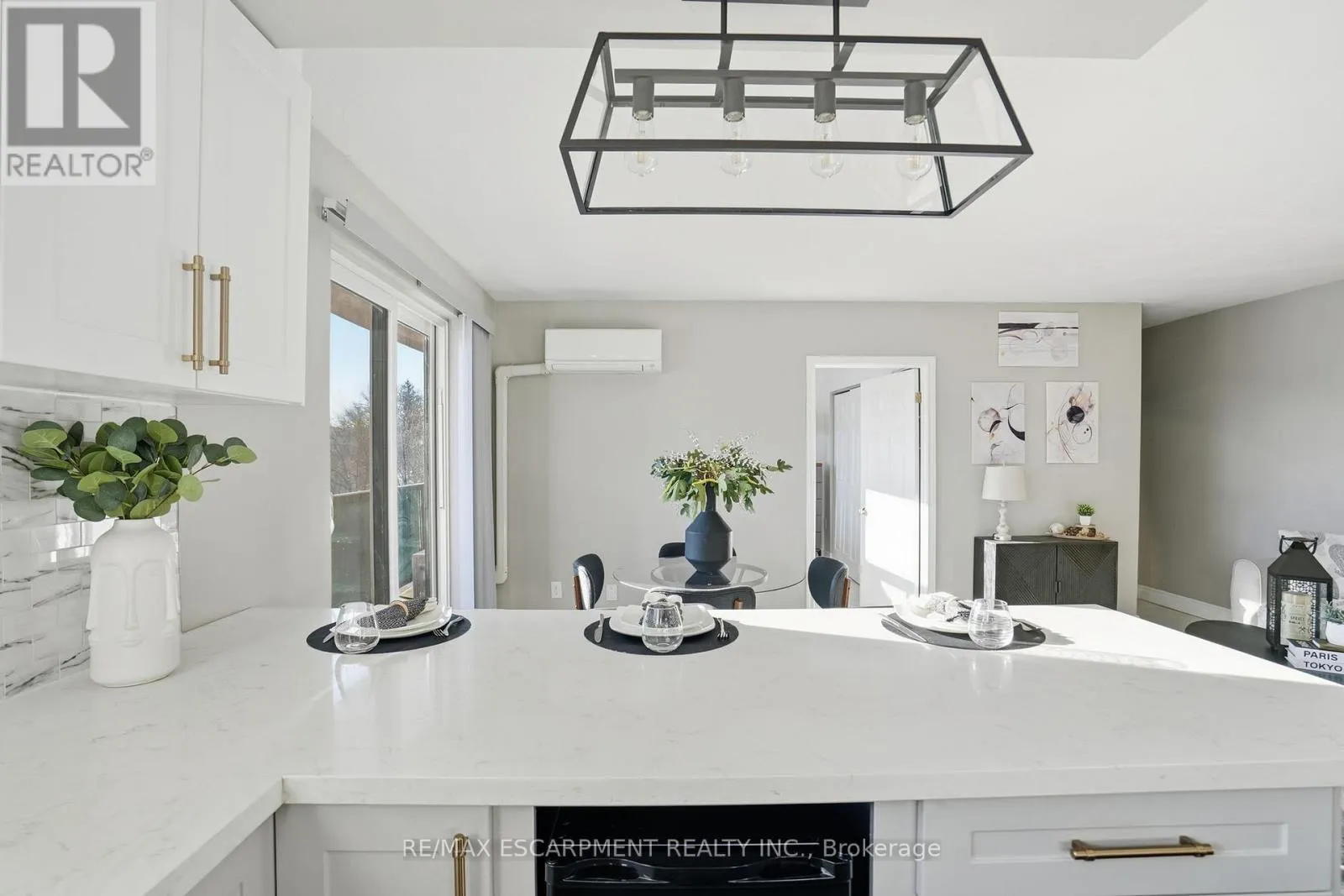 Cross Streets: Parkdale. ** Directions: King St E exit from Red Hill Valley Parkway. Welcome to this beautifully renovated condo apartment in the highly desirable Bartonville-Glenview neighbourhood of East Hamilton. Offering a comfortable, low-maintenance lifestyle, this move-in-ready unit with an owned storage locker, presents a rare combination of modern updates, peaceful surroundings, and exceptional views-ideal for first-time buyers, downsizers, or investors. The thoughtfully renovated interior features carpet-free living throughout, stone countertops, a functional breakfast bar, and one of the few units in the building with built-in air conditioning, creating a bright, modern space ideal for everyday living and entertaining. Large windows and a massive private balcony extend the living space outdoors and showcase an exceptional scenic view overlooking the tree-lined skyline of the Red Hill Valley Bowl, offering a peaceful green backdrop and a rare connection to nature seldom found in condo living. Enjoy nearby green spaces, including Red Hill Valley Trail across the street providing scenic walking and biking trails throughout the Red Hill Valley. Commuters will appreciate easy access to major routes including the Red Hill Valley Parkway, the LINC, QEW, and Highway 403, making travel across Hamilton and into the GTA efficient and stress-free. Public transit, shopping, restaurants, and essential amenities are all nearby along King Street East, Queenston Road, and Centennial Parkway. Surrounded by parks, schools, and community services, this location offers a peaceful residential setting enhanced by stunning tree-lined valley views, while remaining minutes from downtown Hamilton, Stoney Creek, and major employment hubs. A fantastic opportunity to own in a well-established East Hamilton neighbourhood known for its accessibility, natural surroundings, and lifestyle appeal. (id:27476)