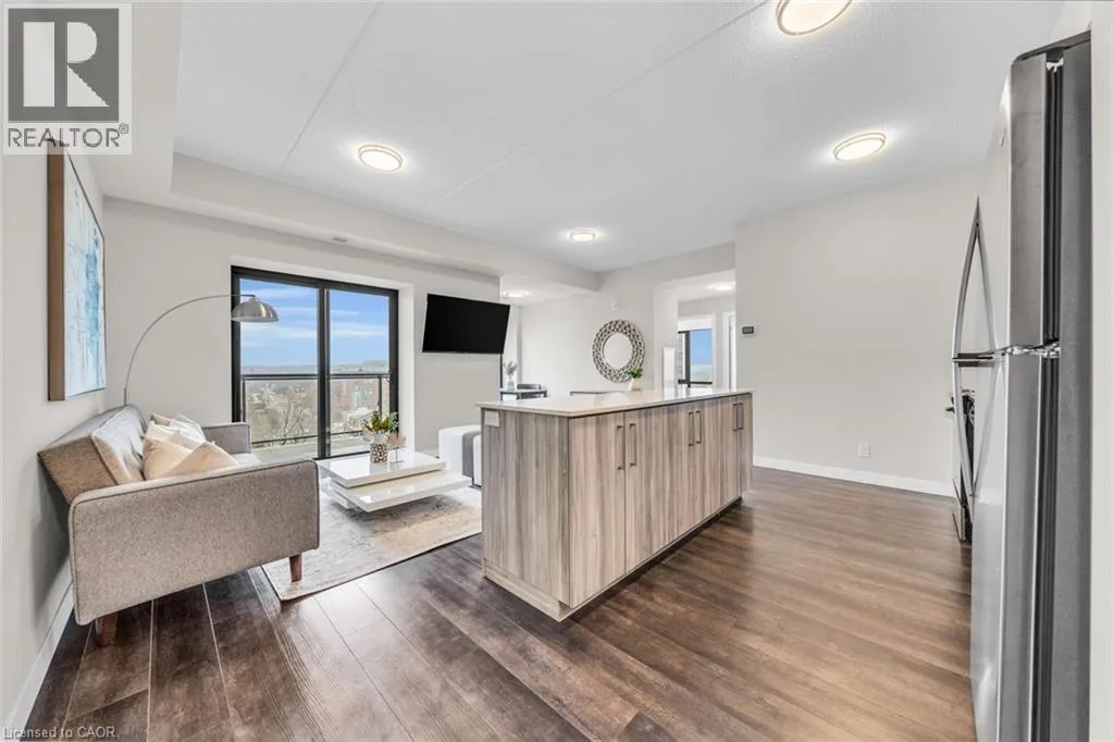 Main St to Queen St Welcome to unit #807 at Platinum Condos in the Heart of Hamilton. This âZurichâ model is 894 square feet featuring 2 Bedrooms + Den and 2 full bathrooms. Walking into the foyer of the unit you have a large closet as well as your stackable washer and dryer. Off the foyer you have your open concept floor plan featuring your kitchen with large island and stainless-steel appliances. This is open to your living room with sliding glass doors that lead out to your private terrace. Off the living room and kitchen, you have a den/workspace or a dining area. The primary bedroom features large windows looking out to Lake Ontario as well as a 3-piece ensuite. The second bedroom is at the corner of the unit, so you have windows facing Lake Ontario as well as Dundas Peak. Off the second bedroom you have a 4-piece bathroom. Platinum Condos is just steps to Hess Street, Locke Street, James Street, restaurants, coffee shops,, public transit, and all other amenities. *No Parking Spot* - Canada Wide Parking Lot (55 Queen St N, Hamilton) Monthly Parking. (id:27476)