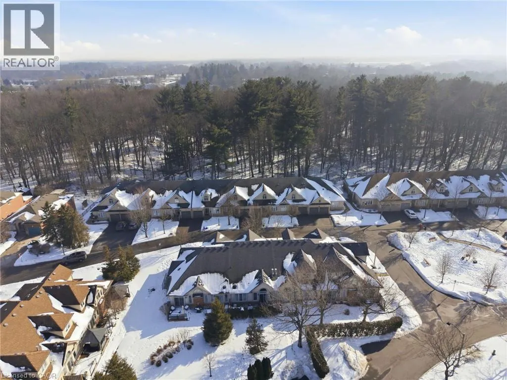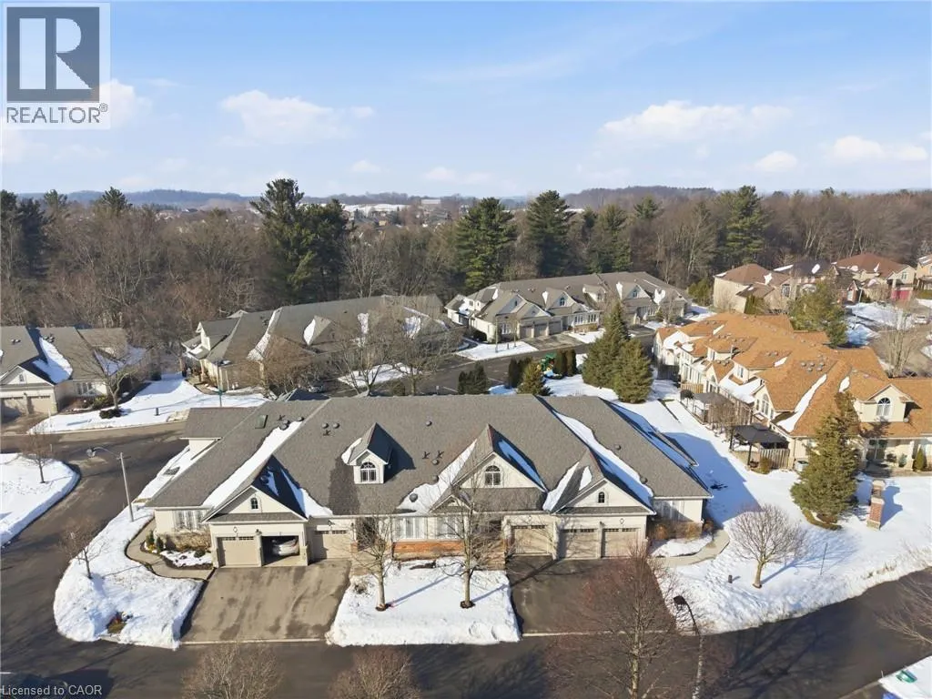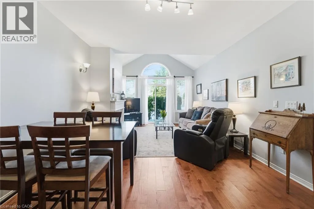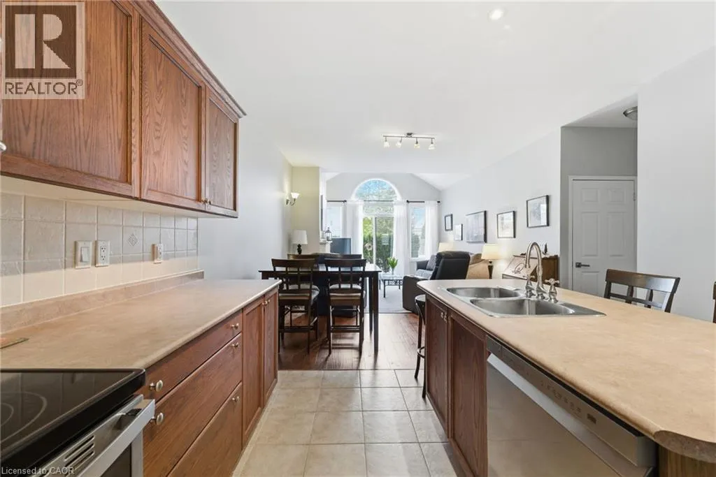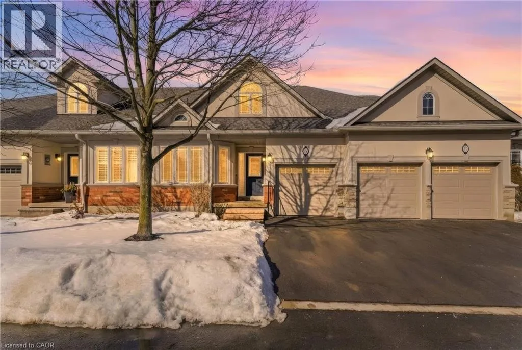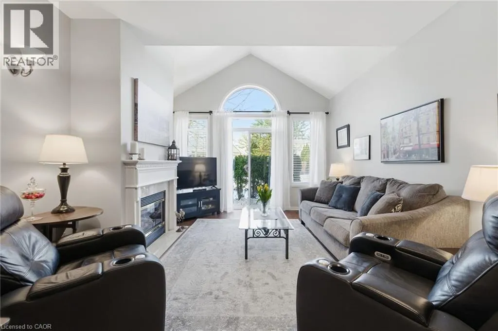 Meadowbrook Dr to Tranquility Ave to Wesleyan Crt Welcome to effortless living in the heart of Ancaster! This beautifully maintained townhome offers the perfect blend of comfort, space, and convenience in a sought-after complex. Bright and airy, the main level features an open-concept layout with vaulted ceilings, a gas fireplace, and oversized windows that fill the living room with natural light. The kitchen is designed for both everyday living and entertaining, showcasing abundant cabinetry, generous counter space, ceramic backsplash, pantry storage, and a breakfast bar island with seating. The primary suite is a true retreat with hardwood flooring, a walk-in closet, and a spacious 4-piece ensuite complete with stone countertop, separate tub, and shower. A second bedroom or office enjoys ensuite privileges and exceptional natural light. Main floor laundry adds everyday convenience. The fully finished lower level expands your living space with a large recreation room, an additional bedroom, a 3-piece bathroom with shower, and a utility/storage area - ideal for guests, hobbies, or multi-generational living. Additional highlights include: Neutral ceramic flooring in foyer, kitchen, and baths, hardwood flooring throughout main living areas, attached single garage with inside entry and storage shelving. Immaculately presented and move-in ready, this home offers outstanding value for buyers seeking low-maintenance living without sacrificing space or style. WELCOME HOME! (id:27476)