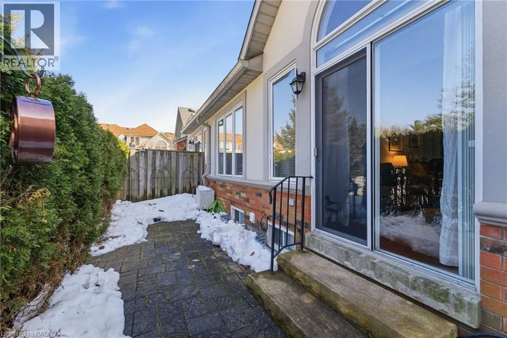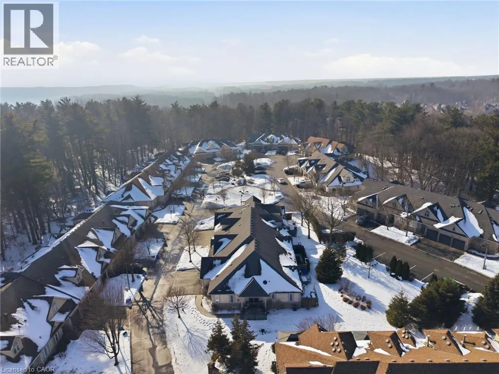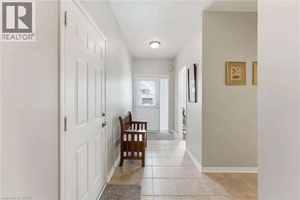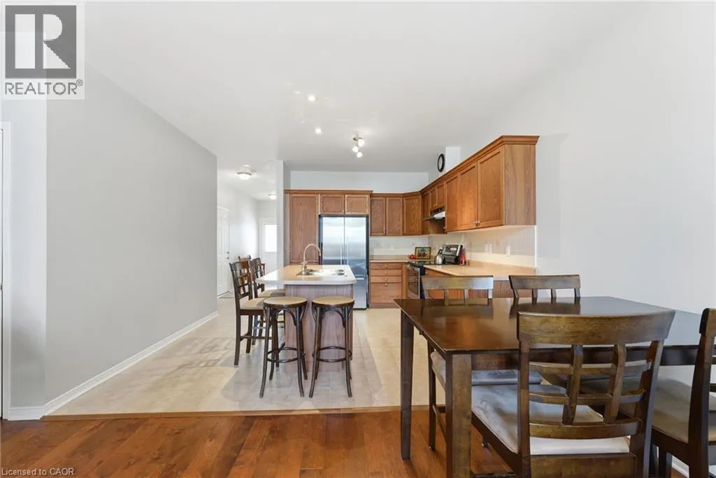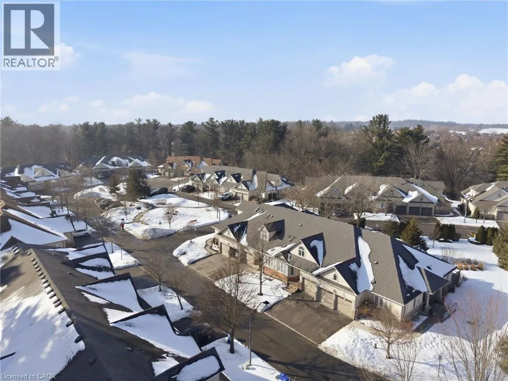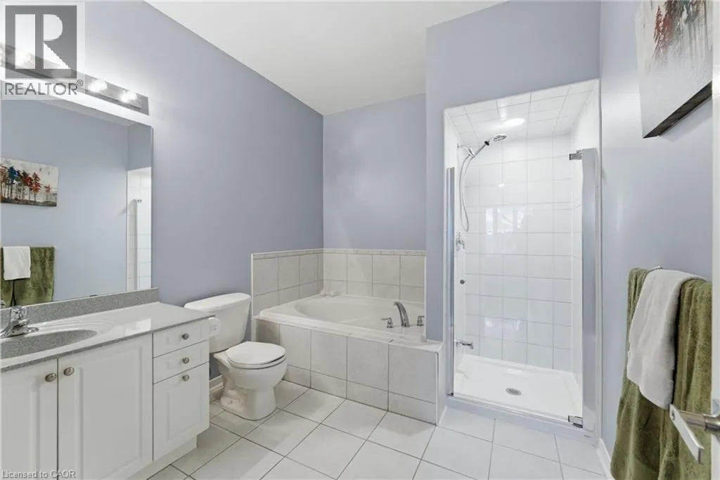 Meadowbrook Dr to Tranquility Ave to Wesleyan Crt Welcome to effortless living in the heart of Ancaster! This beautifully maintained townhome offers the perfect blend of comfort, space, and convenience in a sought-after complex. Bright and airy, the main level features an open-concept layout with vaulted ceilings, a gas fireplace, and oversized windows that fill the living room with natural light. The kitchen is designed for both everyday living and entertaining, showcasing abundant cabinetry, generous counter space, ceramic backsplash, pantry storage, and a breakfast bar island with seating. The primary suite is a true retreat with hardwood flooring, a walk-in closet, and a spacious 4-piece ensuite complete with stone countertop, separate tub, and shower. A second bedroom or office enjoys ensuite privileges and exceptional natural light. Main floor laundry adds everyday convenience. The fully finished lower level expands your living space with a large recreation room, an additional bedroom, a 3-piece bathroom with shower, and a utility/storage area - ideal for guests, hobbies, or multi-generational living. Additional highlights include: Neutral ceramic flooring in foyer, kitchen, and baths, hardwood flooring throughout main living areas, attached single garage with inside entry and storage shelving. Immaculately presented and move-in ready, this home offers outstanding value for buyers seeking low-maintenance living without sacrificing space or style. WELCOME HOME! (id:27476)