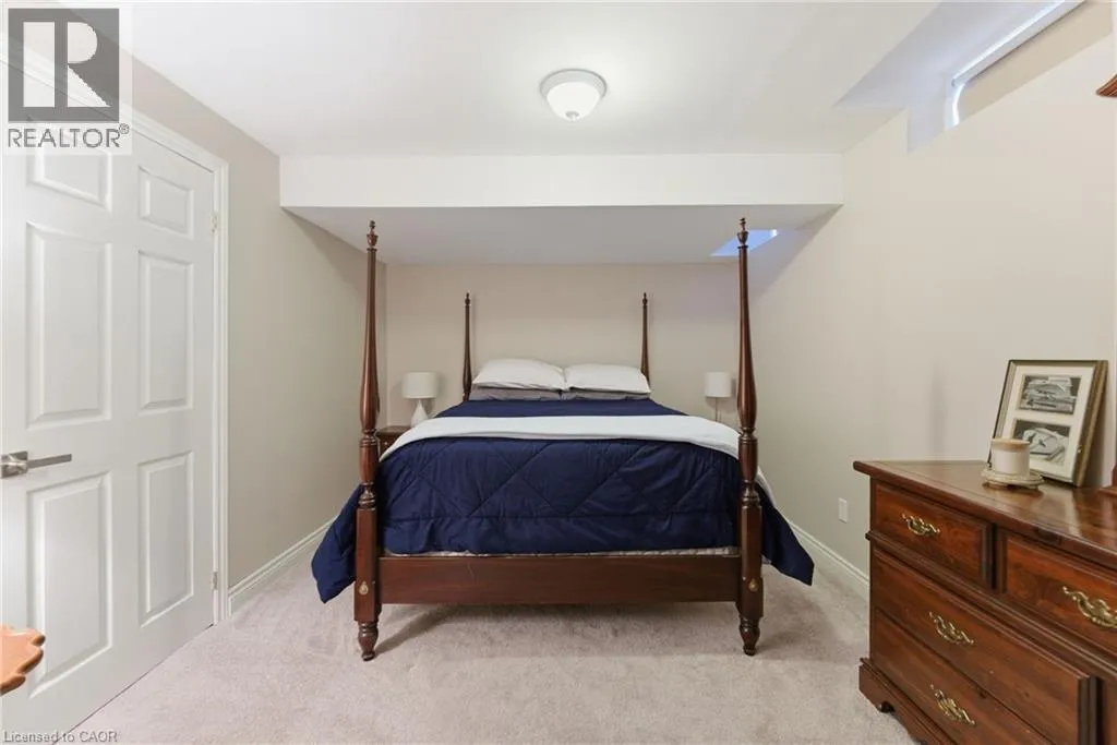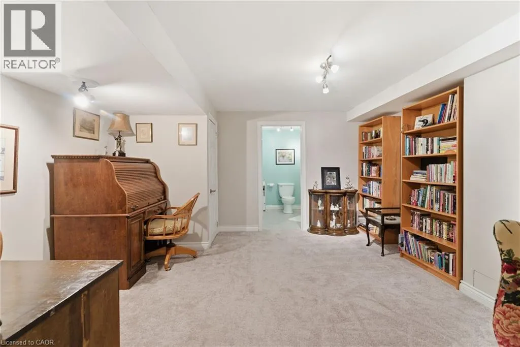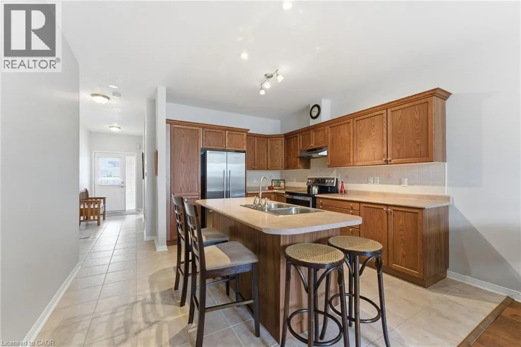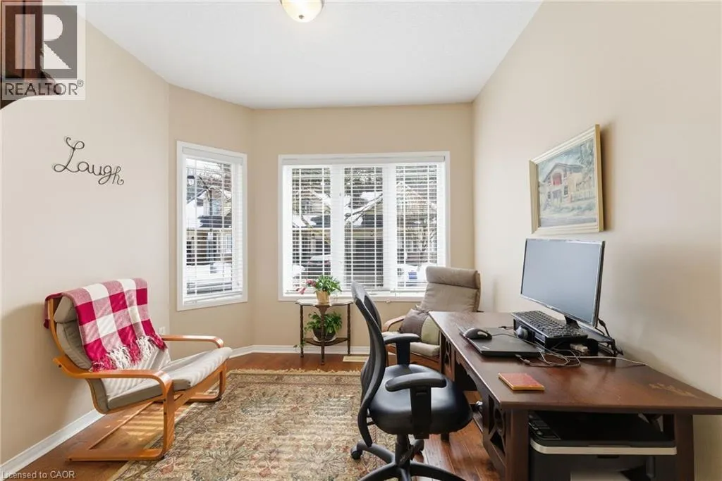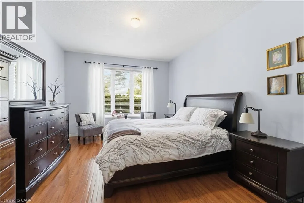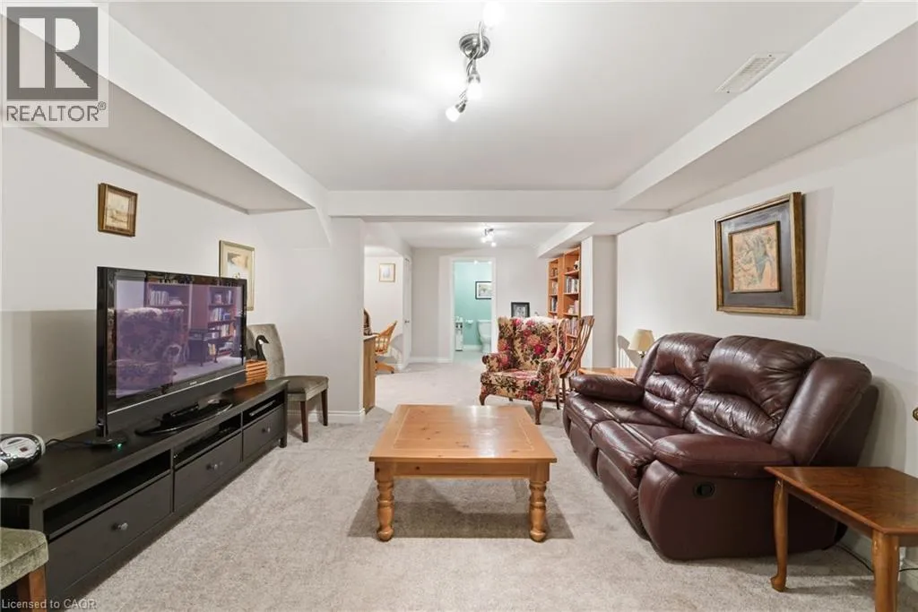 Meadowbrook Dr to Tranquility Ave to Wesleyan Crt Welcome to effortless living in the heart of Ancaster! This beautifully maintained townhome offers the perfect blend of comfort, space, and convenience in a sought-after complex. Bright and airy, the main level features an open-concept layout with vaulted ceilings, a gas fireplace, and oversized windows that fill the living room with natural light. The kitchen is designed for both everyday living and entertaining, showcasing abundant cabinetry, generous counter space, ceramic backsplash, pantry storage, and a breakfast bar island with seating. The primary suite is a true retreat with hardwood flooring, a walk-in closet, and a spacious 4-piece ensuite complete with stone countertop, separate tub, and shower. A second bedroom or office enjoys ensuite privileges and exceptional natural light. Main floor laundry adds everyday convenience. The fully finished lower level expands your living space with a large recreation room, an additional bedroom, a 3-piece bathroom with shower, and a utility/storage area - ideal for guests, hobbies, or multi-generational living. Additional highlights include: Neutral ceramic flooring in foyer, kitchen, and baths, hardwood flooring throughout main living areas, attached single garage with inside entry and storage shelving. Immaculately presented and move-in ready, this home offers outstanding value for buyers seeking low-maintenance living without sacrificing space or style. WELCOME HOME! (id:27476)