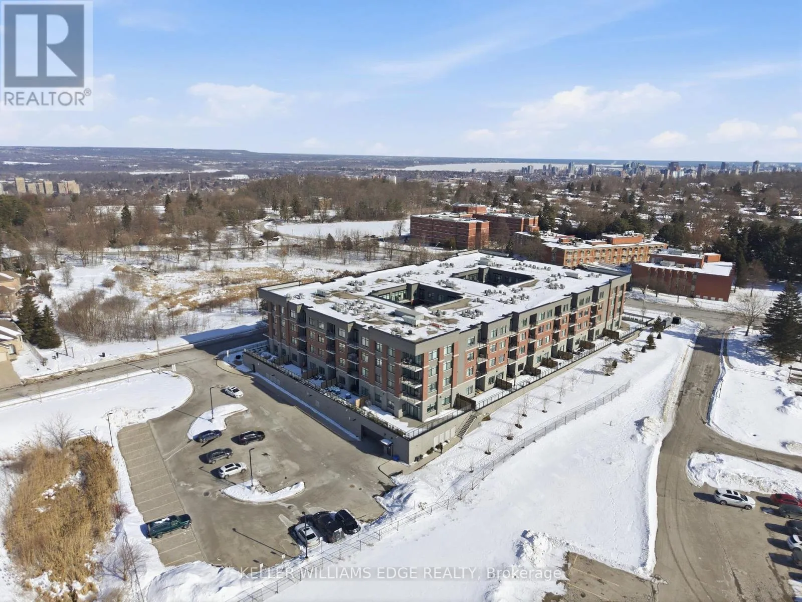 Cross Streets: Redfern Ave. & Sanatorium Rd. ** Directions: Mohawk Road W. to Sanatorium Road to Redfern Avenue. Welcome to Redfern Avenue, this beautifully upgraded 1 bedroom, 1 bathroom condo offers stylish finishes, thoughtful amenities, and stunning western-facing sunsets from your own private balcony. Flooded with natural light, the open-concept layout showcases upgraded laminate flooring, pot lighting throughout, and a modern kitchen enhanced from builder grade with updated cabinetry, quartz countertops, and a timeless subway tile backsplash, all complemented by a full suite of Whirlpool stainless steel appliances plus a Whirlpool washer and dryer conveniently located in-unit. The living space flows seamlessly to the private balcony, creating the perfect spot to unwind and take in evening sunsets. This unit also includes one indoor parking space and one locker, along with the added security of a full intercom system in the building. Residents enjoy exceptional amenities including a main floor party room, private theatre room, billiards and games room, exercise room, wine storage room, bike repair station, dog washing station, and two beautifully maintained central courtyards with a common BBQ area for summer gatherings. Located near the scenic Chedoke Steps and close to shops, restaurants, transit, and everyday conveniences, this condo offers low-maintenance living with elevated finishes in a vibrant, well-appointed community. (id:27476)