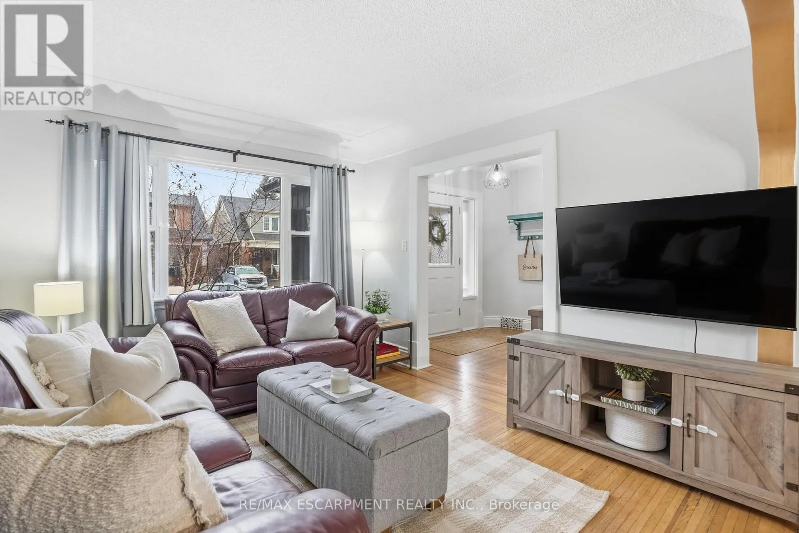 Cross Streets: King Street East. ** Directions: Between King Street East and Lawrence Road. Welcome to this bright, character-filled 3-bedroom home in an unbeatable location just steps to Gage Park and vibrant Ottawa Street! Offering a beautiful blend of charm and function, this spacious home features original inlay hardwood floors on the main level, updated exterior stained glass windows throughout, and a full dining room perfect for hosting family and friends. The cozy sunroom just off the kitchen is the ideal morning coffee spot, and the vintage gas stove works like a charm for your baking and cooking needs! Downstairs you'll find a fully finished basement (2022) providing additional living space/work space/gym or a cozy hang out spot along with 2pc powder room and laundry for convenience & ample storage. Step outside to a generously sized backyard made for entertaining, complete with a HUGE detached shed/workshop with hydro - perfect for hobbyists, storage, or creative projects. Additional updates include furnace (approx. 2023), updated waterline, back flow valve, and private parking for one vehicle via mutual drive with wonderful neighbouring homes on either side.This home is full of charm, warmth, and opportunity in one of Hamilton's most sought-after neighbourhoods. (id:27476)