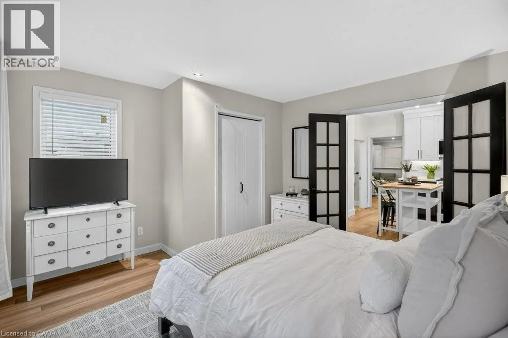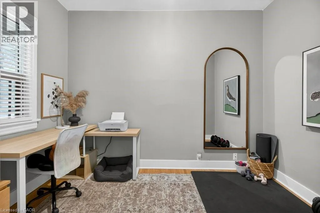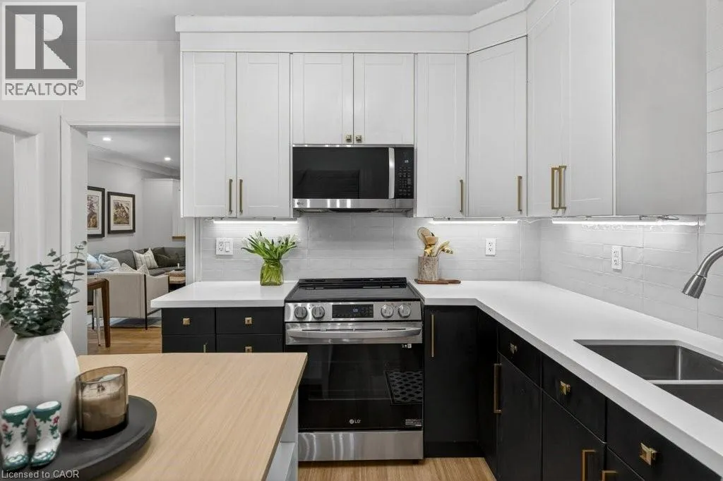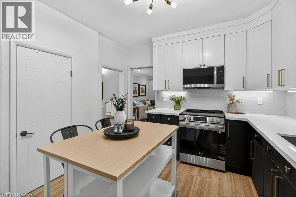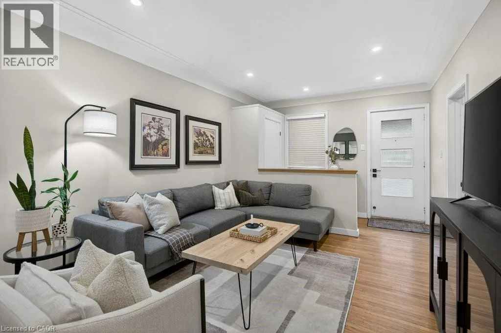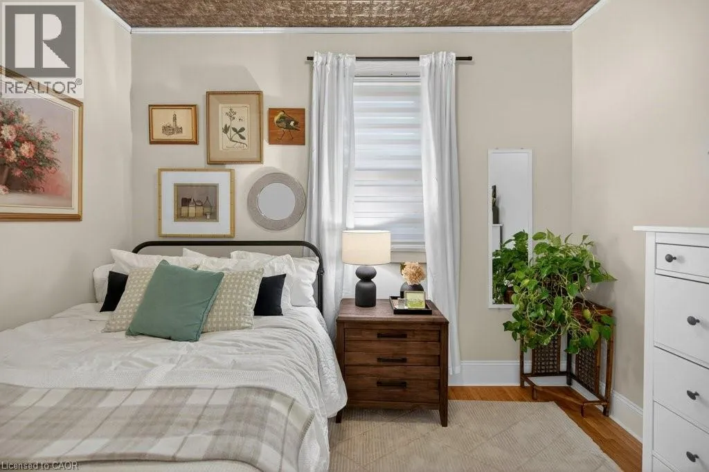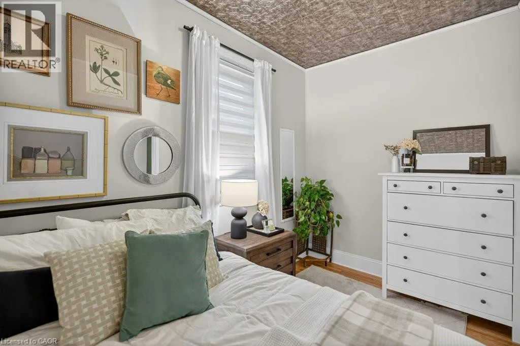 Paling between Roxborough & Britannia Not your average bungalow, this value packed home has style, sustainability, & storage! Starting with a new concrete walkway â25, 3+ driveway & garage, straight to a covered porch with room to lounge. New glass door â24, complimented by a MCM original with reclaimed fluted glass & updated hardware. With a big front window, room for shoe storage & a generous closet the informal foyer is a welcome addition. The living & dining area are exquisite at 96 years old - a blend of original charm in the coved mouldings, & modernity w/ professionally installed potlights â21. The ceiling height is rivalled by original oak floors, refinished & shining. Also find two nearly identical bedrooms: accommodate kids, office, gym, guests - one with an impressive tin ceiling detail. At the centre of the home is a chefâs kitchen, fully reimagined in â21 w/ custom uppers, quartz counter, dishwasher, commercial grade vinyl floor, & a new backsplash & stainless fridge, stove, and microwave in â23. The IKEA island, included in the sale, is a great breakfast bar and prep space, & the walk-in pantry w/ custom sliding shelving will keep you organized! A fully updated bathroom w/soaker tub, new shower fixtures, porcelain sink, & a thoughtful access panel & exhaust fan. This 800sf home rounds out in a primary bedroom through French doors overlooking the Koi pond & backyard. With a new roof & windows â22, fits a king bed, features a double door closet, & is a cosy hideaway. Other investments include having the chimney removed â26, electrical panel replacement â21, new furnace & AC â18, pond pump & filter in â24. An unfinished basement currently is home to laundry, with back door access to the driveway & generous fully fenced backyard. The yard has been the sellers oasis with a patio, grass for pups, a well serviced pond, & unique alley access opening up endless opportunity! This great East Hamilton location is minutes to the hwy, shopping & is very family oriented, an easy choice for smart buyers! (id:27476)