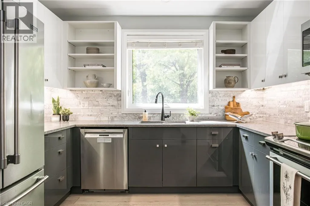 CORNER OF OAKWOOD PLACE & STERLING STREET Outstanding Ravine Property! 3 Oakwood Place is a stately Tudor on a 178-foot deep, pie-shaped ravine lot in a serene Westdale cul-de-sac. With 5+1 bedrooms, 3+1 baths, and 3,300+ sq ft, it blends Tudor charm with modern updates. Renovations (2017) include a finished lower level with a second kitchen and bath (2021). The spacious living room features bay windows and a fireplace, the dining room highlights Tudor detailing, and the renovated kitchen boasts marble counters with views of the landscaped yard. Upstairs offers 3 bedrooms and an updated bath; the finished attic adds 2 more bedrooms and a 3-pc bath. A versatile office sits on the first landing. The basement suiteâwith kitchen, bath, and private garage entryâsuits multigenerational living. Extras include a double-wide drive, stone patio, Armour stone landscaping, cedar fencing, and updated mechanicals (windows, doors, shingles, insulation, AC/furnace 2017, HWT 2025). Steps to McMaster and Westdale Village, this rare home offers history, comfort, and investment potential. (id:27476)