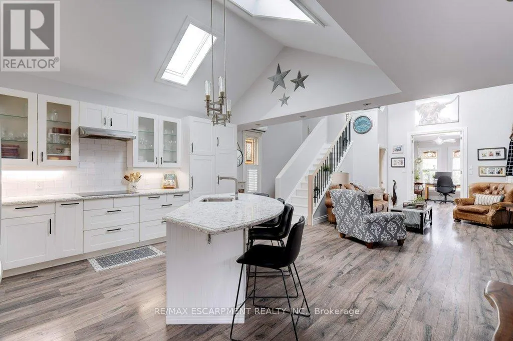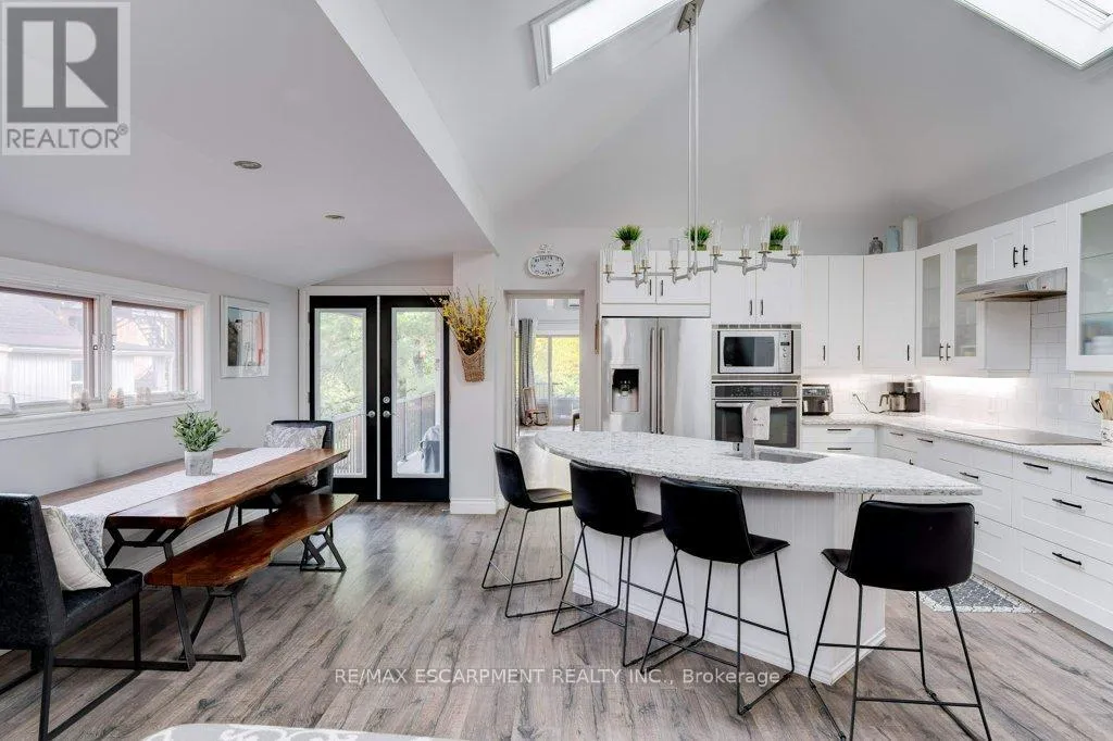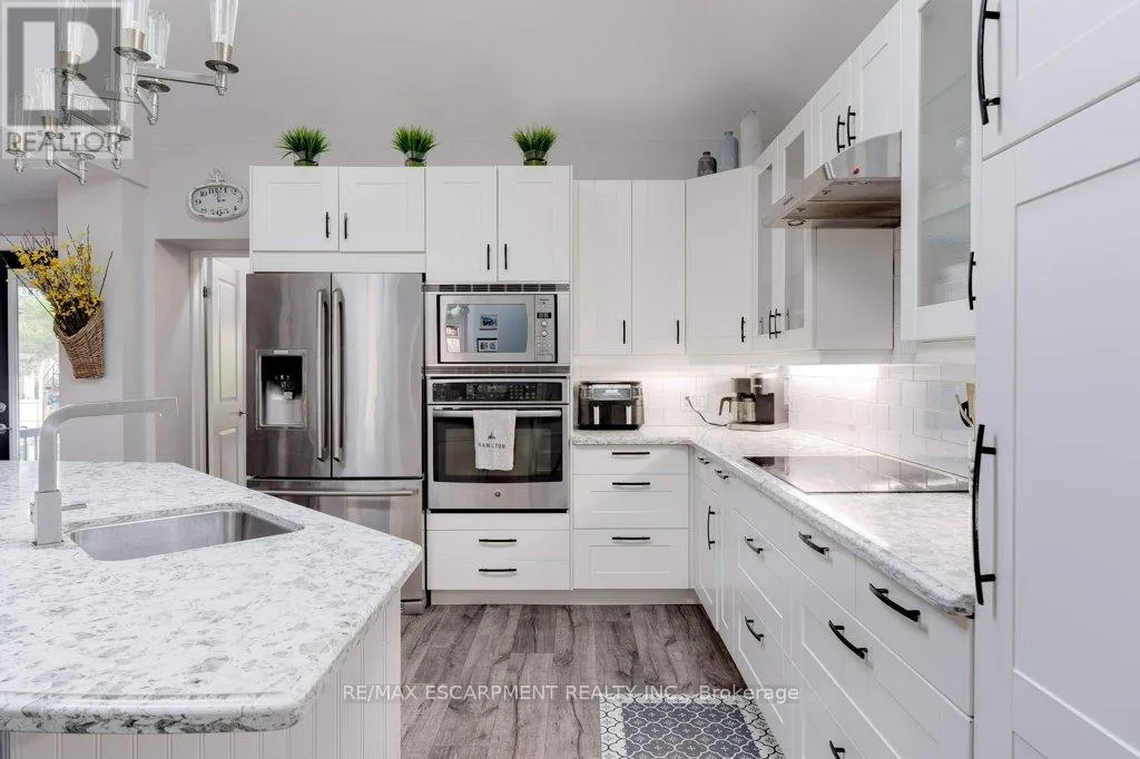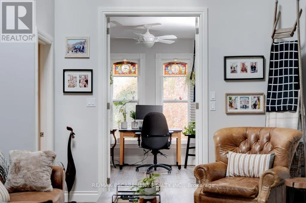 Cross Streets: Queen St S. ** Directions: Main St W to Queen St S to Homewood Ave. Tucked along a tree-lined street in Hamilton's beloved Kirkendall neighbourhood, this stately legal duplex tells a story of character, versatility, & opportunity. Behind its charming façade lies over 2,500 square feet of living area, thoughtfully separated into three distinct suites that adapt as life does. On the main level, a self-contained one-bedroom apartment at the rear and a dedicated home office at the front create endless possibilities. The recently renovated apartment offers a private space for parents or a tenant who wants a true home feeling. The office provides the perfect setup for professionals seeking a separate, client-ready workspace - ideal for a therapist, doctor, hair stylist, or lawyer who wants the convenience of working from home without sacrificing privacy. On the upper levels, natural light pours in through skylights and stained-glass windows, highlighting 18-foot ceilings, historic woodwork, and a wrap-around covered balcony made with Trex decking - a peaceful escape in the middle of the city. With two bedrooms, a loft, and two full bathrooms upstairs, it's a bright, welcoming home with timeless charm. Outside, the yard continues the character of the home with water features, a stained-glass art piece, and a restored church pew, creating a one-of-a-kind setting for entertaining or relaxing under the trees. Whether you're hosting friends or enjoying a morning coffee surrounded by art and greenery, this backyard is made for connection and celebration. Behind the charm lies confidence in the updates - a metal roof (2019), all-new windows (2023), high-end appliances, and independent heating and cooling systems for each level, ensuring comfort and efficiency year-round. Set in one of Hamilton's most sought-after neighbourhoods, steps to Locke Street's cafés, boutiques, and parks, 7 Homewood Ave is more than a home - it's a lifestyle, a workspace, and an investment in one of the city's most vibrant communities. (id:27476)