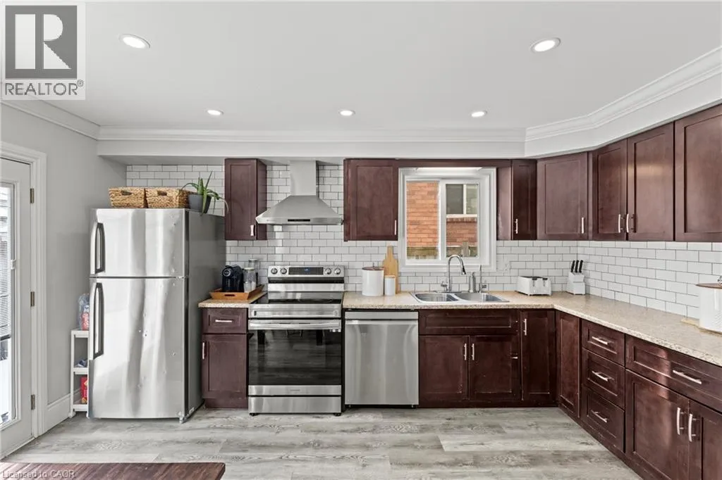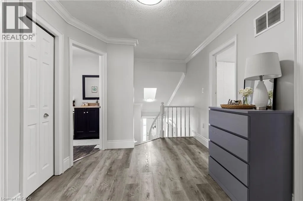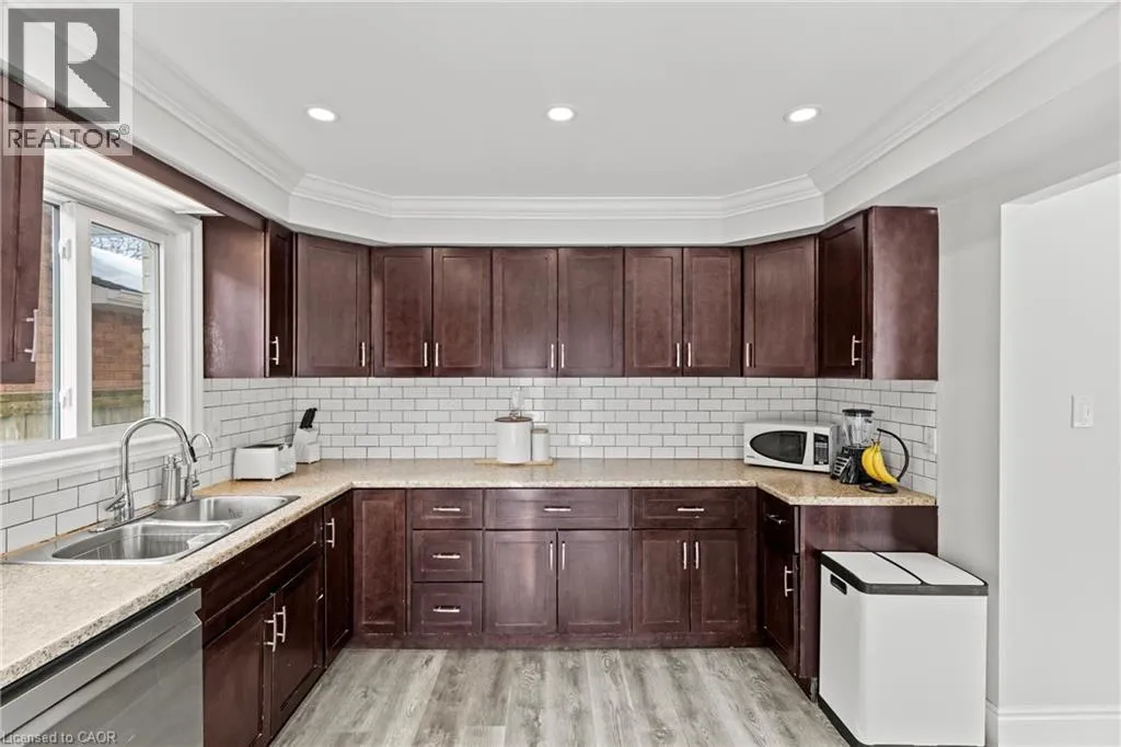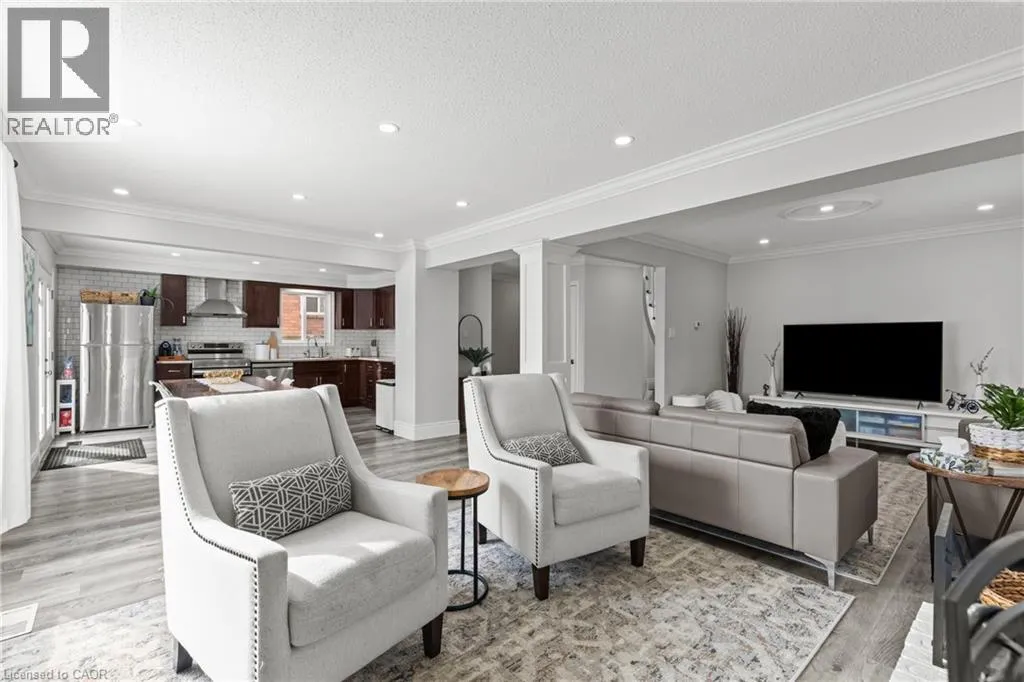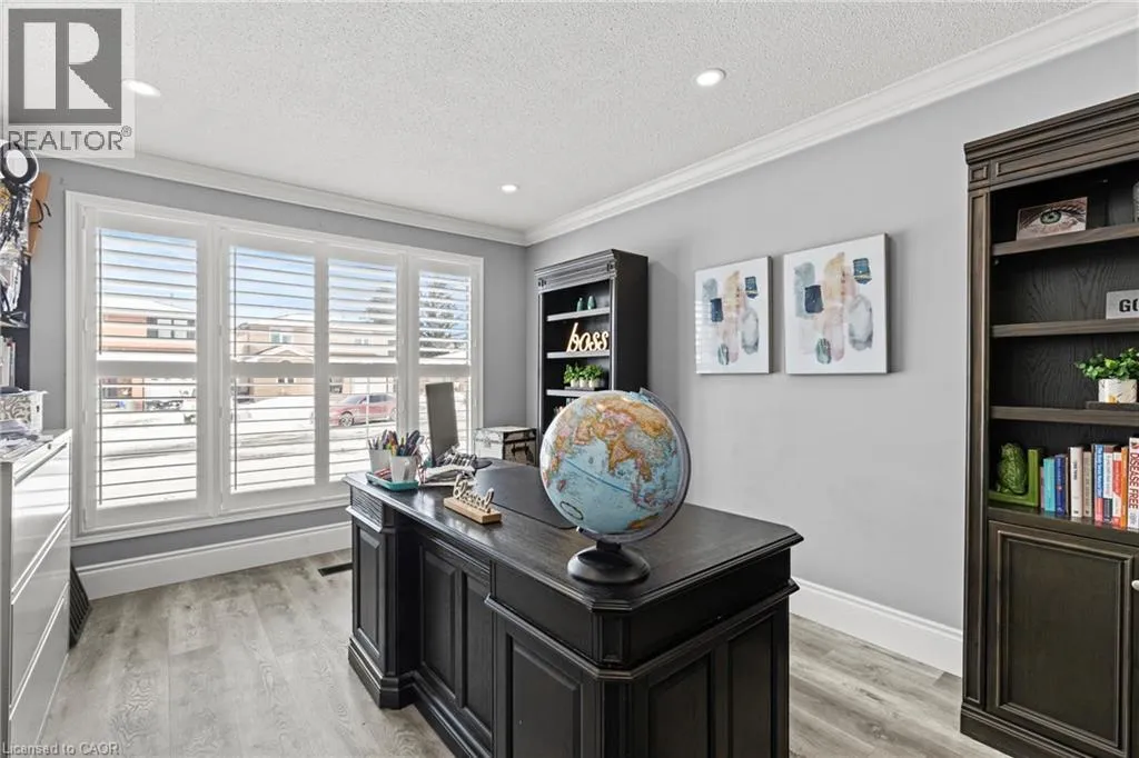 Welcome to this stunning two-story all-brick home, ideally designed for modern living and perfect for multi-generational families. The upper floor features four spacious bedrooms, with the primary having an ensuite, along with an additional full bathroom for added convenience. The main floor features an inviting open-concept layout that seamlessly connects the living room, dining room, and kitchen, complemented by a cozy wood-burning fireplace. A functional, large office space, perfect for those who work from home, off the front foyer and a convenient 3-piece bathroom complete this level. The fully finished basement is a highlight, offering a generous bedroom with a walk-in closet, a huge recreation room perfect for entertainment, a den with a closet, and a laundry room. This layout strikes a balance between privacy and shared space, accommodating the diverse needs of a multi-generational household. This property also features a 1-car garage and an aggregate double-car driveway. The exterior is enhanced with concrete walkways on both sides of the house. In the backyard, you will find a stamped concrete patio complemented by a large shed perfect for extra storage. Close to the Highway, Limeridge Mall, and lots of amenities nearby. Come check it out before it's gone. (id:27476)