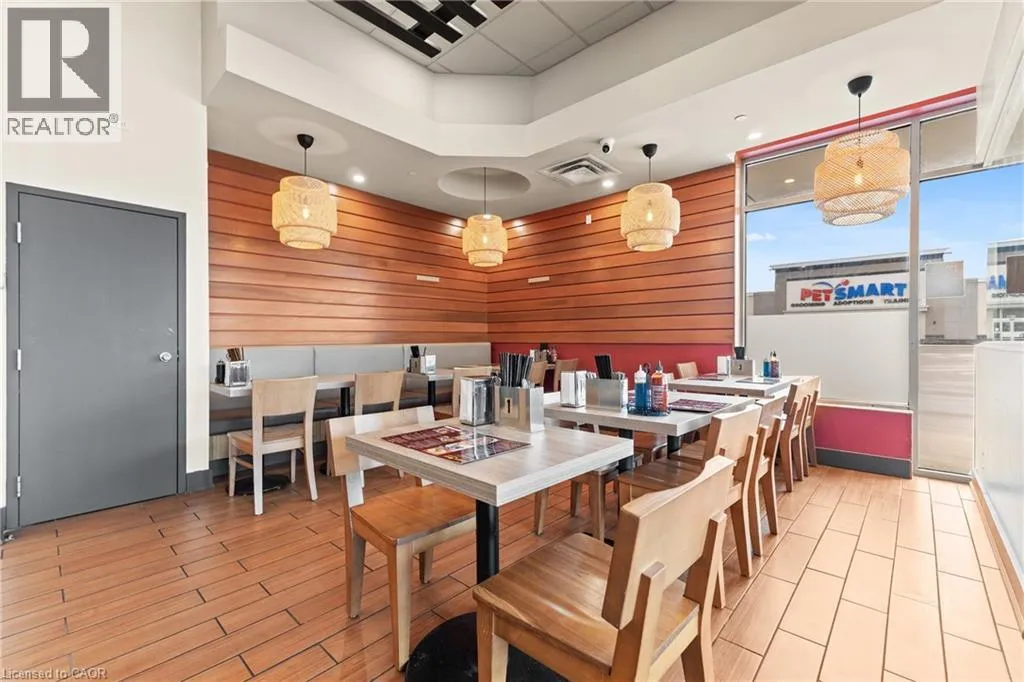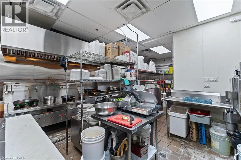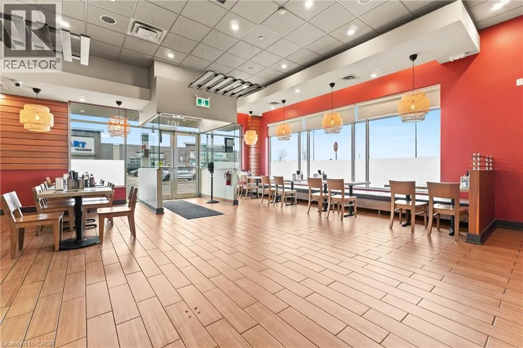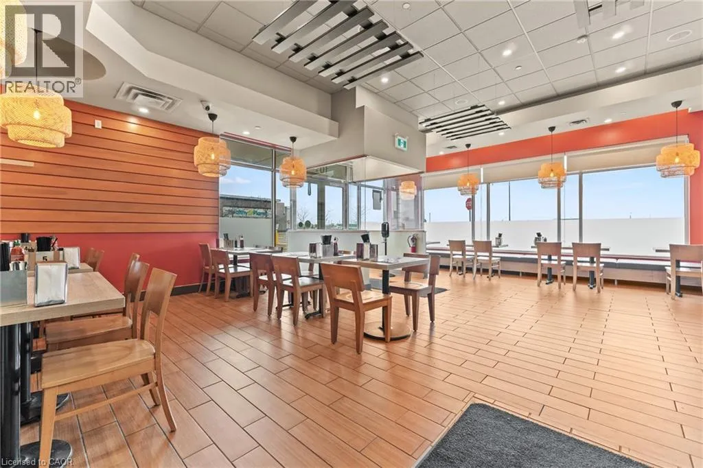 Exceptional opportunity to acquire a fully built-out and well-established Southeast Asian restaurant in the heart of Hamilton's vibrant Stoney Creek community. Saigon House Restaurant is known for its authentic Vietnamese and Thai cuisine, strong local reputation, and loyal customer base. This is a true turnkey operation ideal for owner-operators or experienced restaurateurs looking to step into a fully equipped space with long-term lease security.The premises offer approximately 1,800 sq. ft. of functional and efficient layout designed for high-volume service. The commercial kitchen is extensively equipped with a range featuring 2 large and 7 mid-size burners, 2 wok stations, 2 deep fryers, grill/charbroiler, 4 rice cookers/steamers, 2 stock pots/soup kettles, commercial mixer and slicer, prep stations, and food warming/holding equipment. Refrigeration includes 1 reach-in fridge, 2 reach-in freezers, and a walk-in chiller. Additional features include a commercial dishwasher, stainless steel shelving, sinks and hand-washing stations, and a 19 ft commercial hood with fire suppression system.Strong lease in place: 10-year term with approximately 9.5 years remaining. Well-maintained space with established branding and operational infrastructure already in place. Suitable for continuing the existing concept or converting to another cuisine (subject to landlord approval). Excellent opportunity to acquire a ready-to-operate restaurant without the cost and time of new construction.Serious inquiries only. Financial statements and additional details available upon execution of a confidentiality agreement. (id:27476)