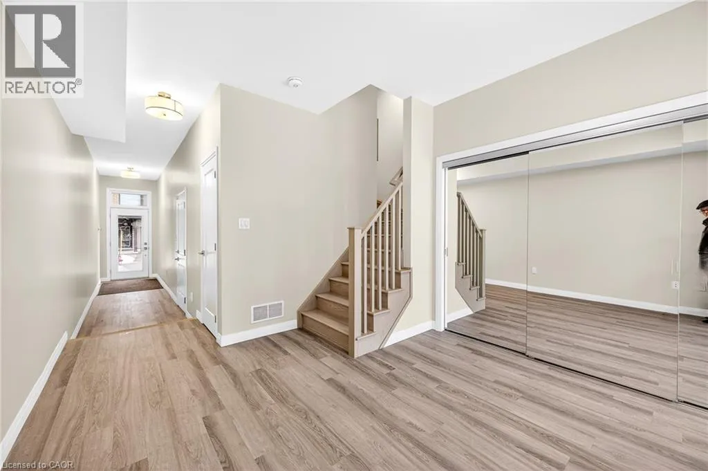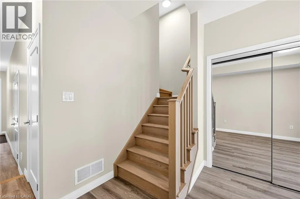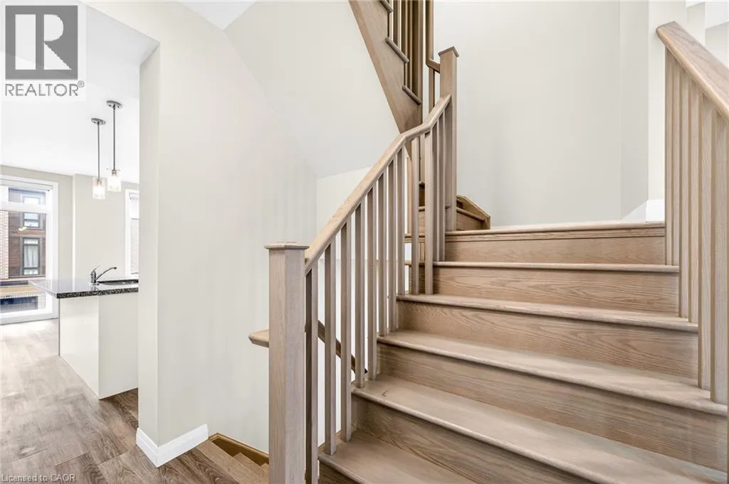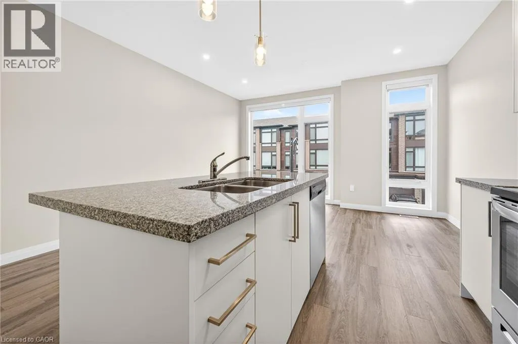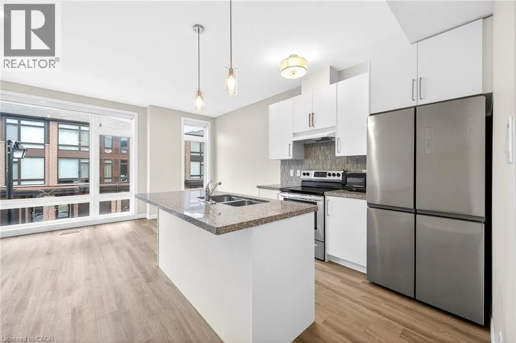 Stunning 3 Storey Townhome, Easy Access to All Amenities, 3 Min to Highway and 15 Min to Aldershot or Burlington GO. Floor to Ceiling Windows, 9 Ft Ceilings and High End Finishes Throughout. Practically Brand New and Freshly Painted Throughout, with Over 1600 Sq. Ft. of Luxury Living. Open Concept Living and Dining with Floor to Ceiling Windows. Eat In Kitchen with Granite Counter, Stainless Steel Appliances and Island With Breakfast Bar. Large Balcony Offers Wonderful Space for BBQ and Summer Entertaining. Convenient Upper Floor Laundry. Main Floor Family Room for Family Recreation or a Quiet Office for Those Who Work for Home with Walk-Out to Backyard. Convenient Entrance to Garage. (id:27476)