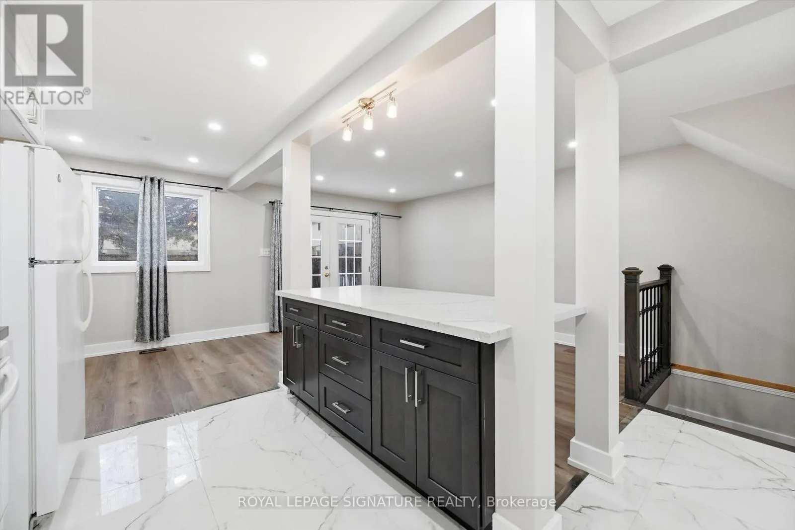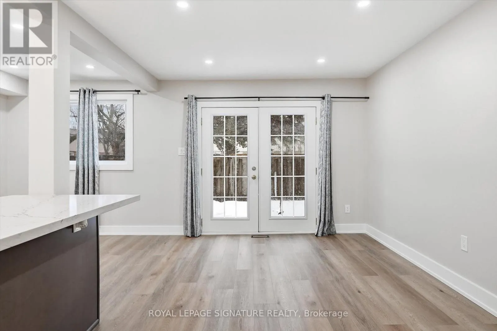 Cross Streets: King St E and Quigley Road. ** Directions: King Street East To Quigley Rd. Welcome home to this beautifully upgraded, carpet-free Corner-unit 2-storey Condo Townhouse with new flooring throughout. Tens of thousands invested in recent renovations, making this a true turn-key property. The main floor & baths were renovated in 2024, and the basement in 2026, offering updated living space on every level. Featuring 3 spacious bedrooms and 2 renovated bathrooms, this home offers an Open-concept layout and the bright, airy feel that only a Corner unit can provide. Unlike many other units, this property includes interior access to the garage for added convenience. The entire second floor was fully renovated in 2026, and the home has been freshly painted throughout. The updated Open-concept Kitchen (2024) features quartz countertops, a centre island, ample cabinetry, and pot lights. The living and dining area opens through French garden doors onto a private deck overlooking one of the complex's parks. The finished basement includes new flooring and pot lights, providing additional space for a recreation room, office, or gym. Located in a well-managed complex close to schools, parks, shopping, public transit, and with easy access to the Red Hill Valley Parkway and QEW, this move-in-ready end-unit is an excellent opportunity in a convenient Hamilton location. 10 minutes drive to Confederation GO Station (id:27476)