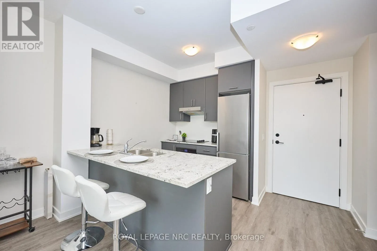 Cross Streets: QEW Fruitland. ** Directions: QEW to Fruitland to North Service Road. Experience elevated condo living in this beautifully designed suite built by the renowned DeSantis Homes in the COMO Building. Featuring a spacious open-concept layout, this residence is adorned with chic finishes and large windows that flood the space with natural light. The kitchen is both stylish and functional, complete with a breakfast bar perfect for casual dining, while in-suite laundry adds everyday convenience. Step outside to a generously sized balcony that offers additional living space ideal for relaxing or entertaining. This unit includes a dedicated underground parking spot and a private storage locker, offering both security and convenience for your lifestyle. Residents enjoy access to an impressive array of building amenities, including a rooftop terrace with breathtaking views of Lake Ontario, outfitted with BBQs, loungers, and a welcoming seating area. Pet lovers will appreciate the on-site dog park and pet grooming spa, while the media room and party room provide space for social gatherings and entertainment. Located in a prime spot for commuters, this home is just minutes from the QEW and within walking distance to the lake, blending convenience with lifestyle in one exceptional package. (id:27476)
