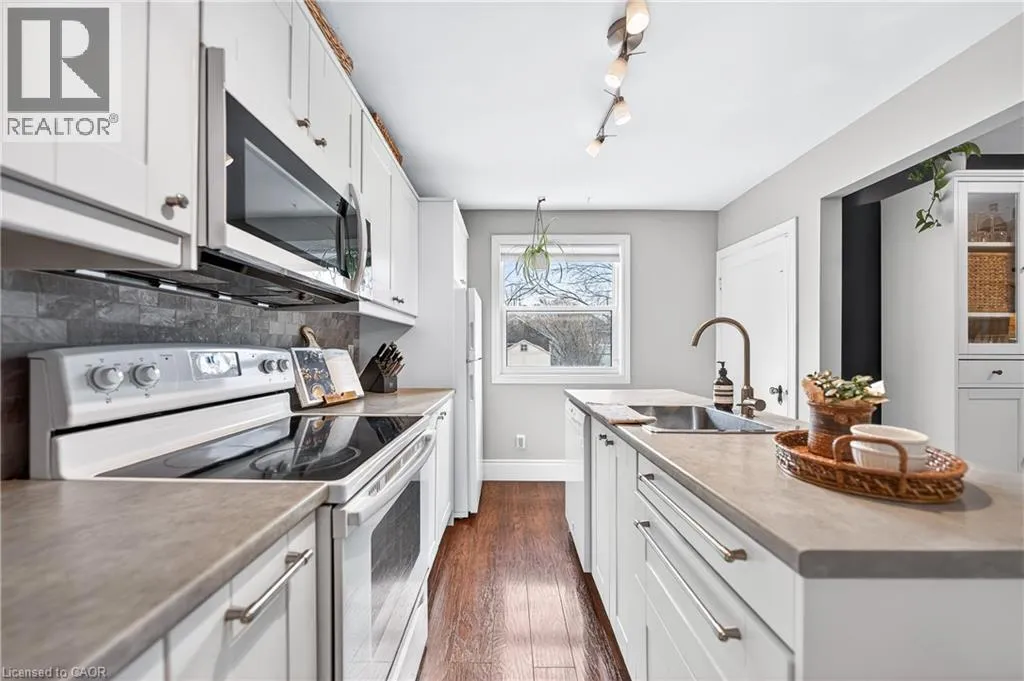 DUNDURN ST S TO STANLEY AVE TO HERKIMER ST Welcome to this beautifully updated 3-bedroom home in the vibrant and family-friendly Kirkendall neighbourhood. Thoughtfully renovated and move-in ready, this property offers a blend of modern upgrades and timeless character. The main floor features a bright bedroom and a stylish 4-piece bathroom complete with ceramic tile and a classic cast-iron tub. The eat-in kitchen is a standout, showcasing soft-close cabinetry and newer appliances including dishwasher, microwave hood range, fridge, and flat-top stove. Perfect for both everyday living and entertaining. The second floor offers two additional bedrooms with a renovated 3-piece bath, while the unfinished basement provides flexible bonus space with upgraded plumbing (2022), ideal for a rec room, home office, gym, or storage. Extensive updates include eaves and soffits (2022), interlock driveway and walkway (2024), fencing and shed (2022), select new windows, and a digital thermostat. Fully fenced and ideally located just steps from Locke Street South, parks, schools, transit, fine dining, and entertainment, this home delivers lifestyle, comfort, and long-term value in one of Hamiltonâs most sought-after communities. (id:27476)
