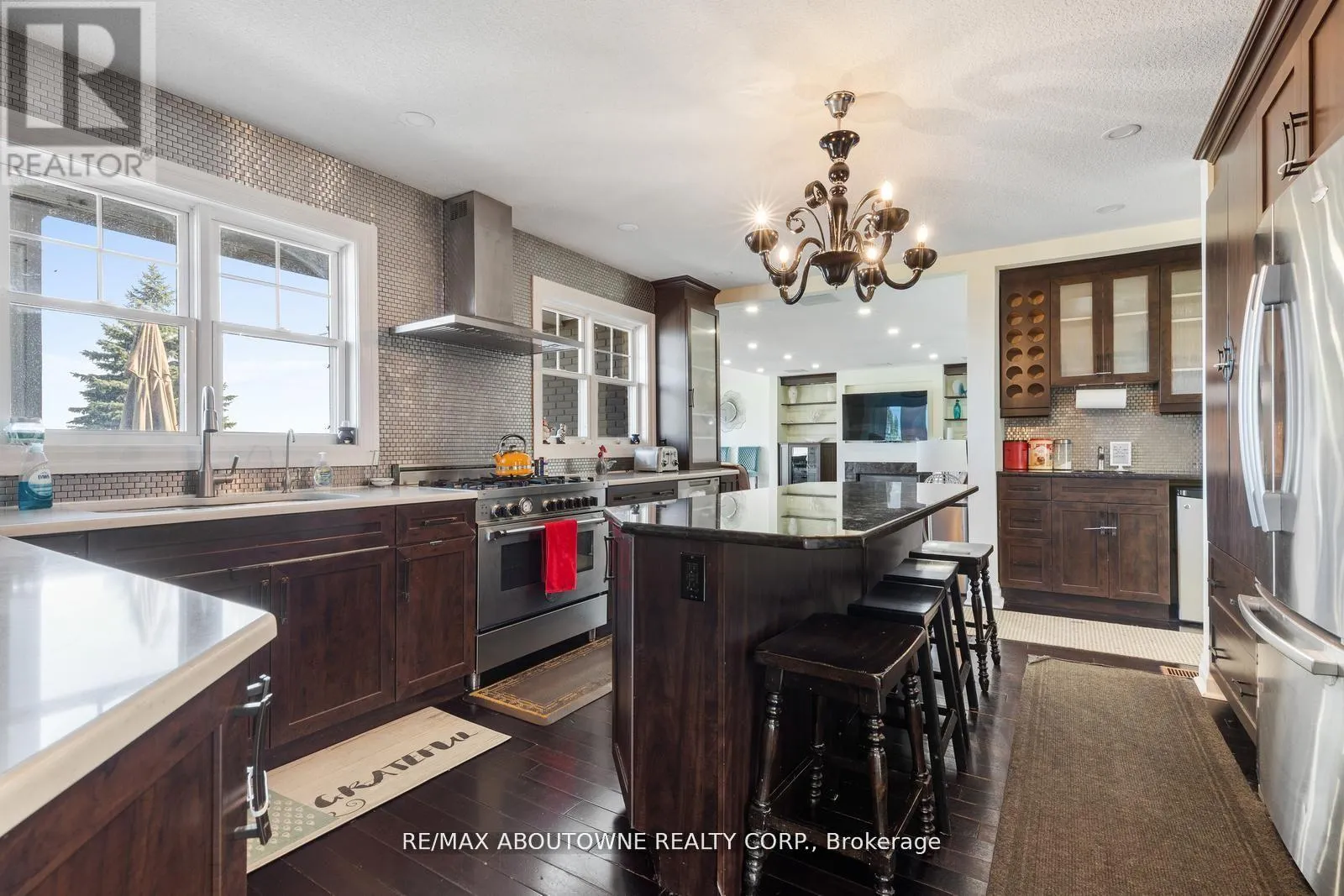Fruitland/QEW Perched on the tranquil shores of Lake Ontario, this exquisite home offers breathtaking, unobstructed views of the Toronto skyline, refined living spaces, and numerous upgrades throughout. Inside, the inviting layout features spacious principal rooms with hardwood floors and pot lights. The dining room showcases stunning lake views, while the family room boasts a cozy gas fireplace. Built-in speakers enhance the ambiance of the living room. The chef's kitchen impresses with stainless steel appliances, granite countertops, and hardwood flooring. The primary bedroom serves as a private retreat with a 3-piece ensuite, a walk-in closet, and hardwood floors. Three additional bedrooms provide ample space, including one with serene lake views and others overlooking the lush front yard. The versatile lower level includes a bedroom, a full washroom, and walk-up access to the backyard oasis. Outdoors, enjoy a 16' x 40' concrete pool set against a tranquil waterfront backdrop, along with a private outdoor sauna for ultimate relaxation. This home effortlessly blends luxury, comfort, and style-perfect for your refined lifestyle. (id:27476)