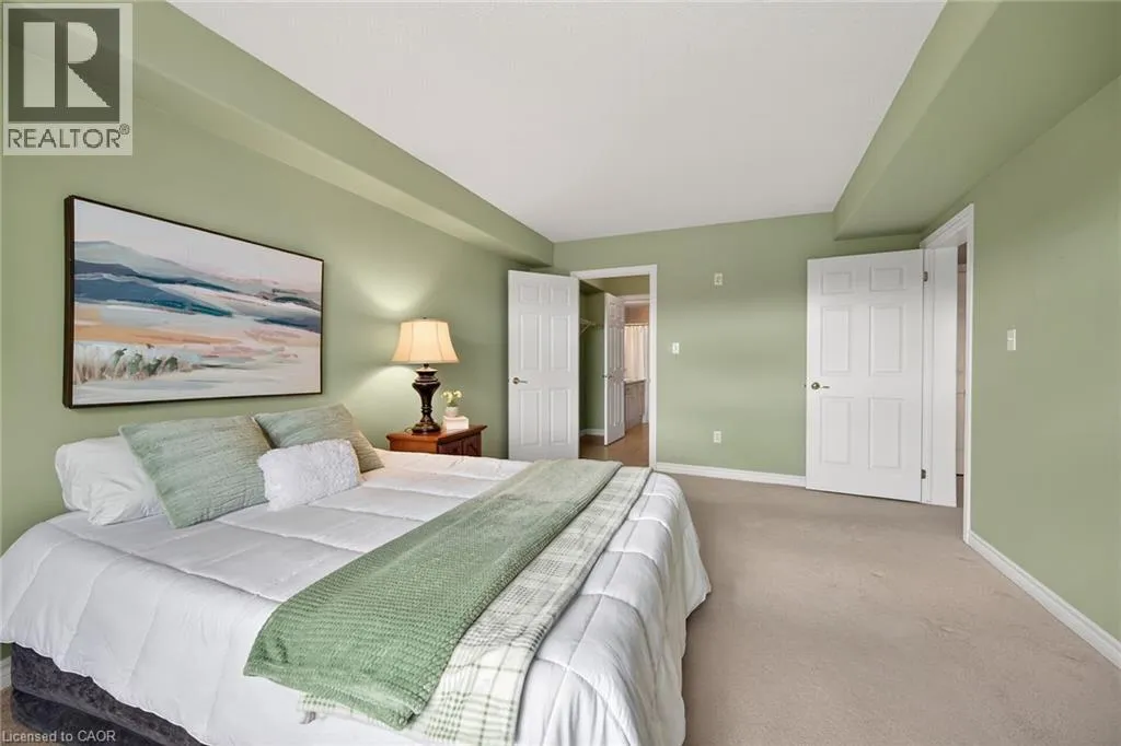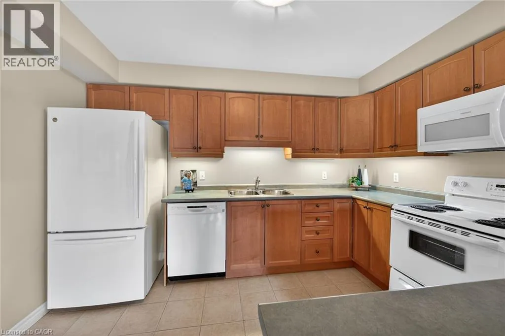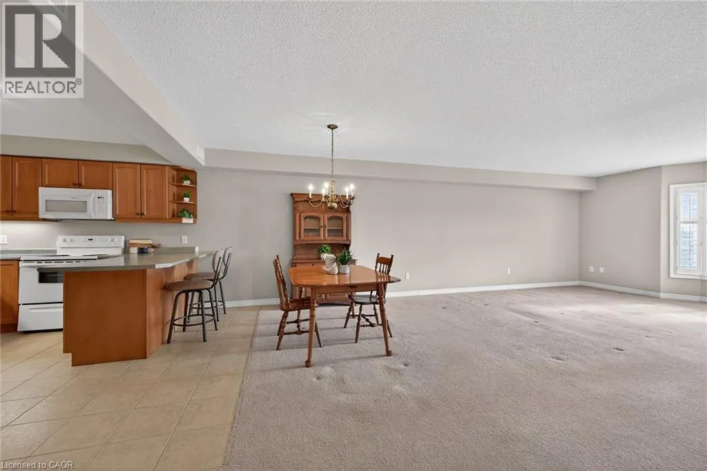 Upper Ottawa St to Mohawk Rd E. Condo living in a desirable East Hamilton Mountain neighbourhood, perfectly positioned near local recreation, nature, and everyday conveniences. This spacious two-bedroom, two-bathroom condominium offers approximately 1,362 sq ft of well-planned living space. The kitchen features warm wood cabinetry, a pantry, ample counter space, and a peninsula with breakfast bar ideal for casual meals or entertaining. The generous dining room flows seamlessly into the bright living room, with walk-out access to a covered balcony for year-round enjoyment. The thoughtful layout includes a main 3-piece bathroom with a tiled shower with glass door, while the large primary bedroom boasts a walk-through closet and a private ensuite bathroom. A second well-sized bedroom provides flexibility for guests, a home office, or hobbies. Enjoy the convenience of one underground parking space, an extra large storage unit, and building amenities that include a small gym with a washroom on the lower level. The building offers accessible features throughout the common areas, along with visitor parking located on the west side. Ideally located close to Bernie Arbour Memorial Stadium, Liuna 4 Ice Centre, scenic trails along the mountain brow, and the natural beauty of Albion Falls. Close to public transit, shopping and a public library. This home is a fantastic opportunity to enjoy comfortable, low-maintenance living in a vibrant community. Some photos are virtually staged. (id:27476)