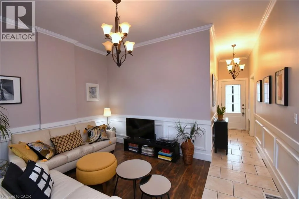 Cannon St to South on Steven St Pride of ownership is evident in this lovely 3 bedroom home. As you enter the foyer, take note of the wainscotting and crown molding found throughout adding elegance and style. The living room and bedrooms also all have beautiful laminate floors. The eat-in kitchen has lots of cupboards and sliding doors leading to a side patio area making for easy access for BBQing. The dining area is adjacent to the kitchen as well as the four piece bathroom. You will be impressed to see that there is main floor laundry and a convenient office area  adjacent to the back door leading to a fenced yard. The back yard is a good size and there is a gate that can open making the area available for parking off the laneway if desired or alternatively it can be used for open space enjoyment as there is also parking in the front yard. A shed is included for handy outside storage. The basement was formally finished but the current owner had the finished areas removed in order to water proof the basement and have a sump pump installed to address some moisture issues. This work was all completed in 2025 under a City of Hamilton program. The basement also has electrical installed, the ceilings finished, some partitioning and drywall remaining from the previous finished basement. There is a rough in for a 3 piece bathroom which is also framed so the basement is ready to complete to your own finishing touches. The shingles were replaced in 2024 also under a City of Hamilton Program. A disclosure is provided with respect to the shingles and basement waterproofing. All appliances are included but the stove, which is working, is in as-is condition due to the door. This house is a great place to call home!! (id:27476)