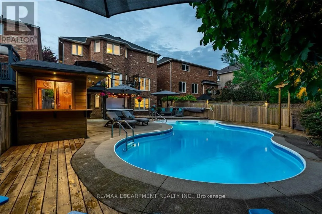 Cross Streets: CHUDLEIGH ST TO PREMIER RD TO VOLTERRA CRT. ** Directions: DUNDAS ST E TO HAMILTON ST N TO WHITE OAK DR TO CHUDLEIGH ST TO PREMIER RD TO VOLTERRA CRT. Welcome to 7 Volterra Court, Waterdown - a rare family gem! Located on a quiet, family-friendly court, this beautifully maintained, move-in-ready home offers over 4,000 square feet of finished living space with five-plus-one bedrooms, three-and-a-half bathrooms, a finished walkout basement and a private backyard oasis with heated saltwater pool and hot tub. Curb appeal shines with professional landscaping and inground irrigation. Inside, a grand foyer opens to a spacious main floor featuring a formal dining room, a private living room and a functional mudroom/laundry area. The heart of the home is the open-concept kitchen and family room with custom built-ins and a gas fireplace - ideal for everyday living or hosting. Upstairs offers four generous bedrooms plus a large office or recreation room which can be converted to a fifth bedroom, including a luxurious primary suite with walk-in closet, spa-like five-piece ensuite, electric fireplace and a private sitting area. The updated main bathroom features heated floors and a towel rack. The fully finished lower level includes a large recreation room, an additional bedroom and a three-piece bath. A walkout leads to your private backyard retreat: a multi-tier composite deck, a covered hot tub, a heated pool, multiple lounging and dining areas, a pergola and a cedar pool house with electricity. Notable upgrades include Lutron switches and pot lights, California shutters, central vacuum, front yard irrigation, exterior landscape lighting, Swiss Trax garage flooring, new front and garage access doors plus a rear patio door with retractable screen and a monitored smart home alarm system - plus much more. See attachments for full details. This exceptional home in one of Waterdown's most sought-after neighbourhoods checks every box. RSA. (id:27476)