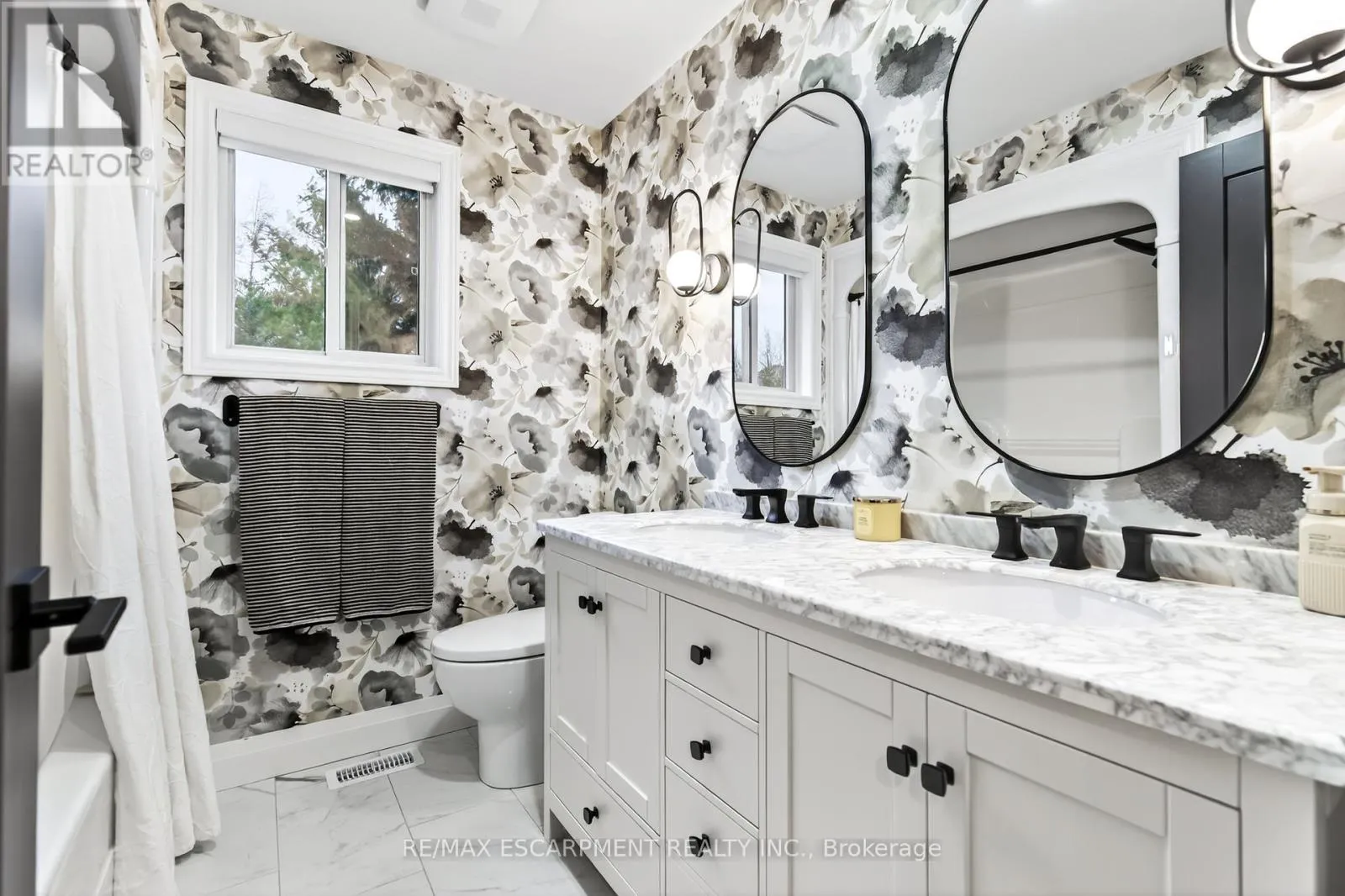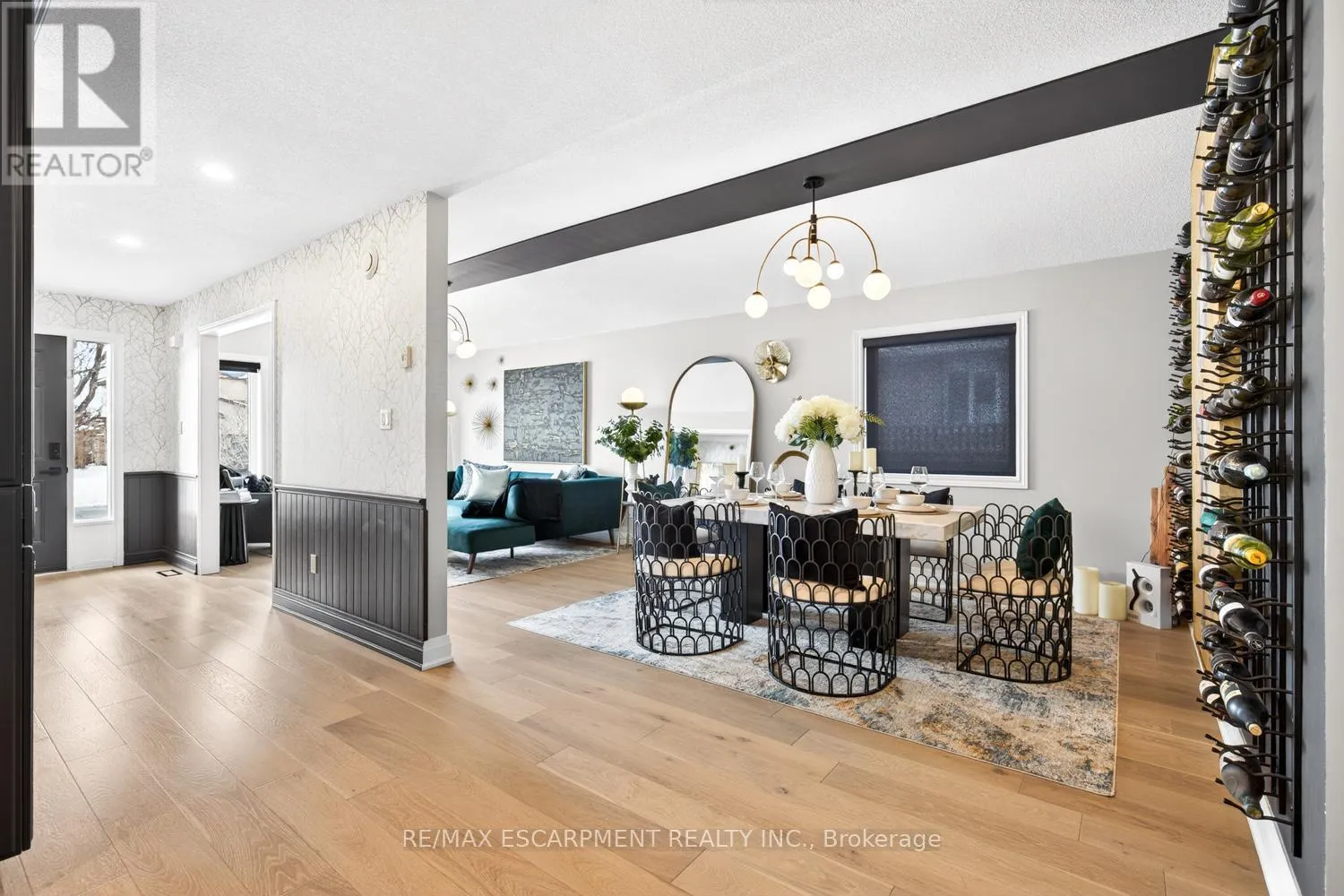 Cross Streets: Creanona Blvd. ** Directions: Fifty Rd to North Service Rd to Baseline Rd to Creanona Blvd to Waterside Dr. Beautifully remodeled 4 level back split, 4 beds, 2 full baths, double car garage and 4 car driveway! Upgrades include new hardwood flooring through-out, fully finished basement with large laundry room and separate office space, freshly painted through-out, gorgeous feature walls, professionally refinished kitchen with new quartz counter tops with waterfall feature, separate dining room, living room, and family room w gas fireplace. Backyard is an oasis with a saltwater pool that features a brand new pool liner and all brand new equipment (2025), covered deck space with gazebo and patio area beside pool! This home is steps away from Lake Ontario w parks, Costco, grocery stores etc. mins down the road. This spectacular home is move in ready and has so much space for everyone. A MUST SEE! (id:27476)