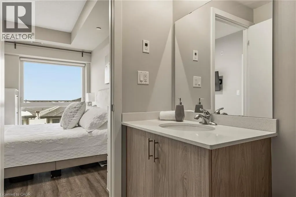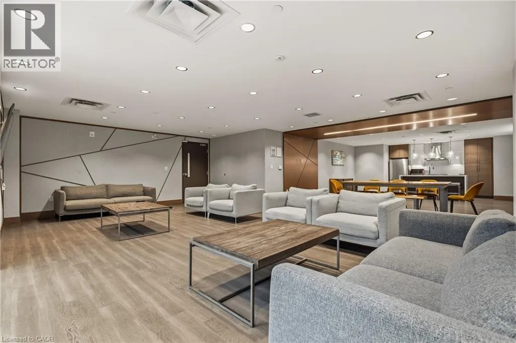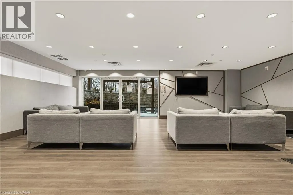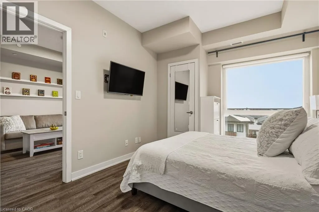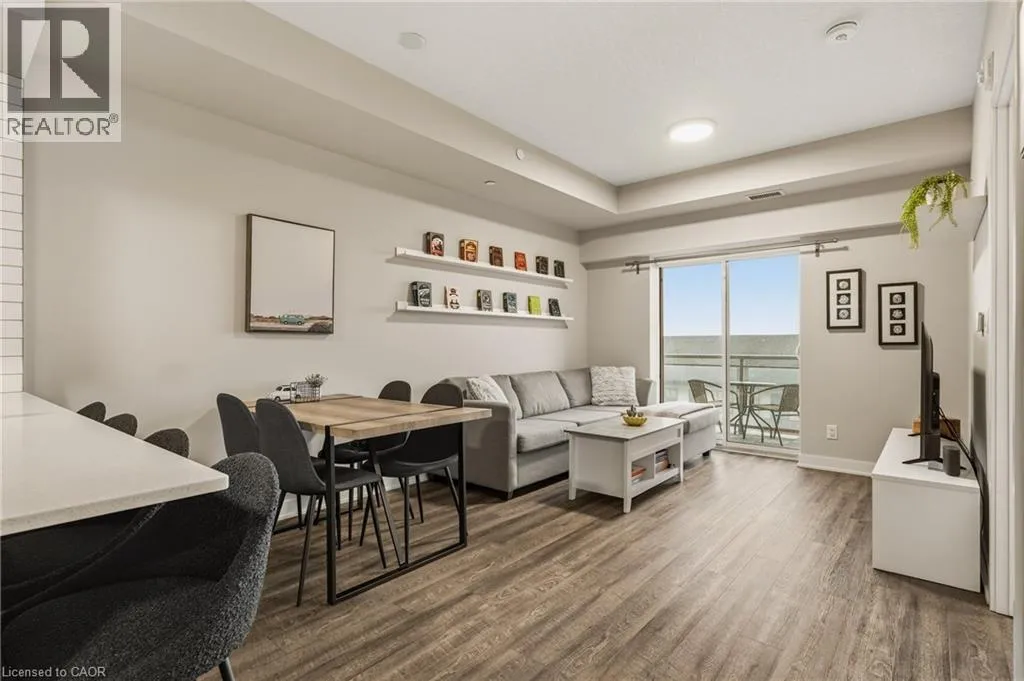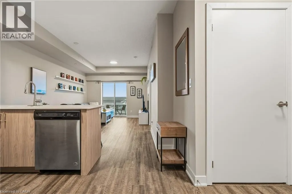 Garner Rd W (near Shaver Rd) to Munay Ln to Markle Cres Step into elevated living in this recently built, beautifully appointed and fully furnished condo in a fantastic Ancaster community. Designed with style and comfort in mind, this 1-bedroom, 1.5-bath suite delivers the perfect blend of modern luxury and everyday ease. The open-concept layout feels airy and inviting, anchored by a stunning chef-inspired kitchen featuring sleek stainless steel appliances, quartz countertops, subway tile backsplash, contemporary cabinetry, and a generous breakfast bar made for casual mornings or hosting friends. Soaring 9-foot ceilings and expansive windows flood the living space with natural light, creating a bright, sophisticated atmosphere throughout. The primary retreat is a true standout, complete with a large picture window, a spa-like ensuite, and a walk-in closet outfitted with a custom organization system. In-suite laundry adds everyday convenience, while your private balcony offers the perfect spot to unwind and catch sunset views. Enjoy a carefree lifestyle with exceptional building amenities, including a fully equipped fitness centre, dedicated yoga studio, and an impressive party room with full kitchen that opens onto a landscaped terrace featuring BBQs and cozy gas fire tables. Underground parking, a private locker, and access to two EV charging stations add even more value. Ideally located just minutes from shopping, dining, trails, community centres, and only a short drive to McMaster and Redeemer University, this upgraded, move-in-ready condo is your opportunity to enjoy refined, maintenance-free living from day one. (id:27476)