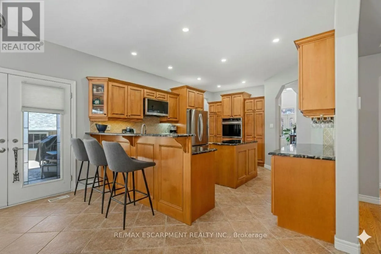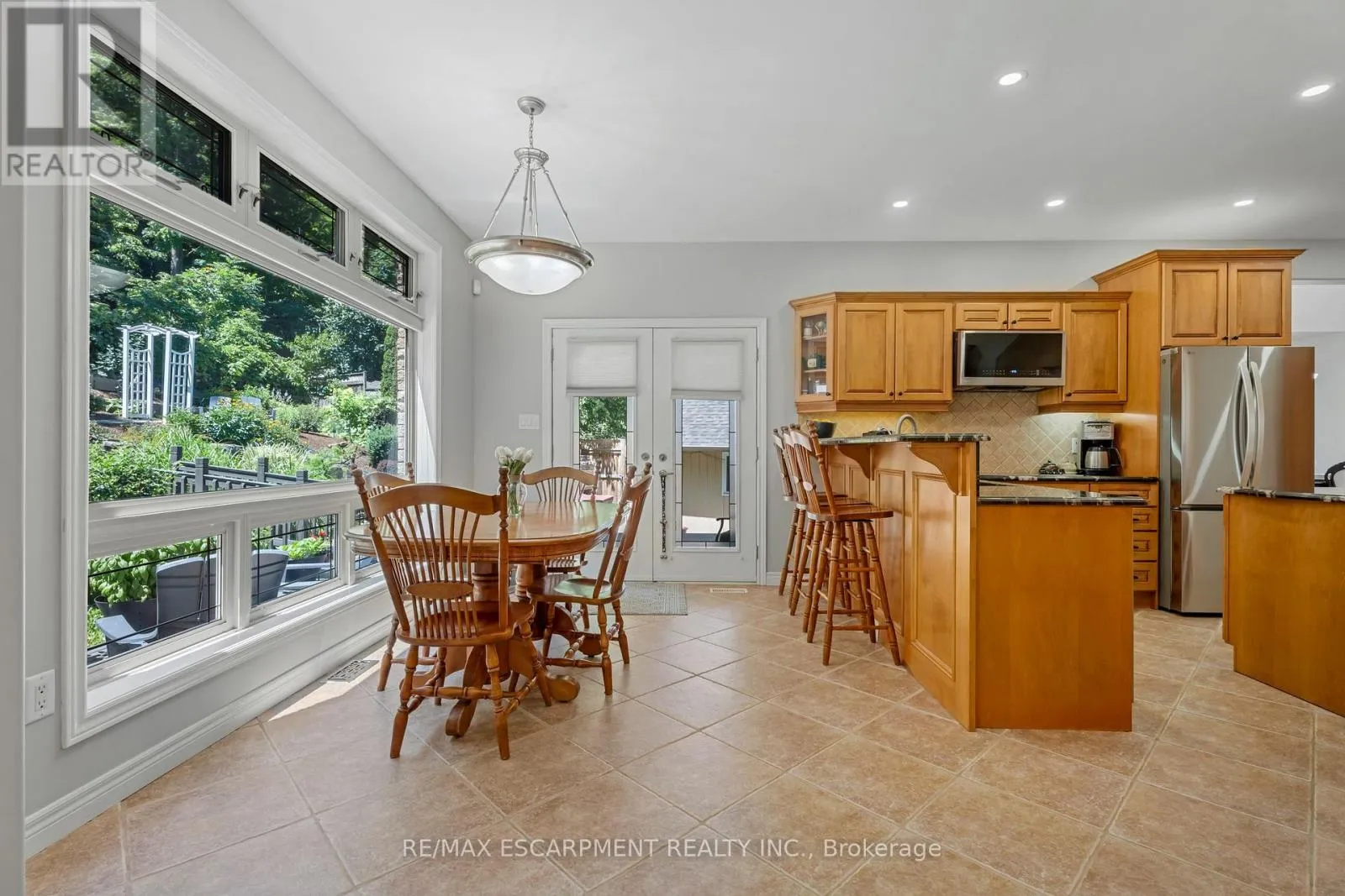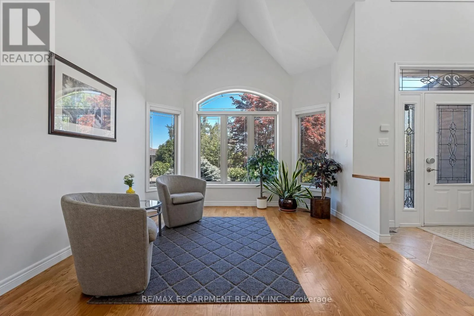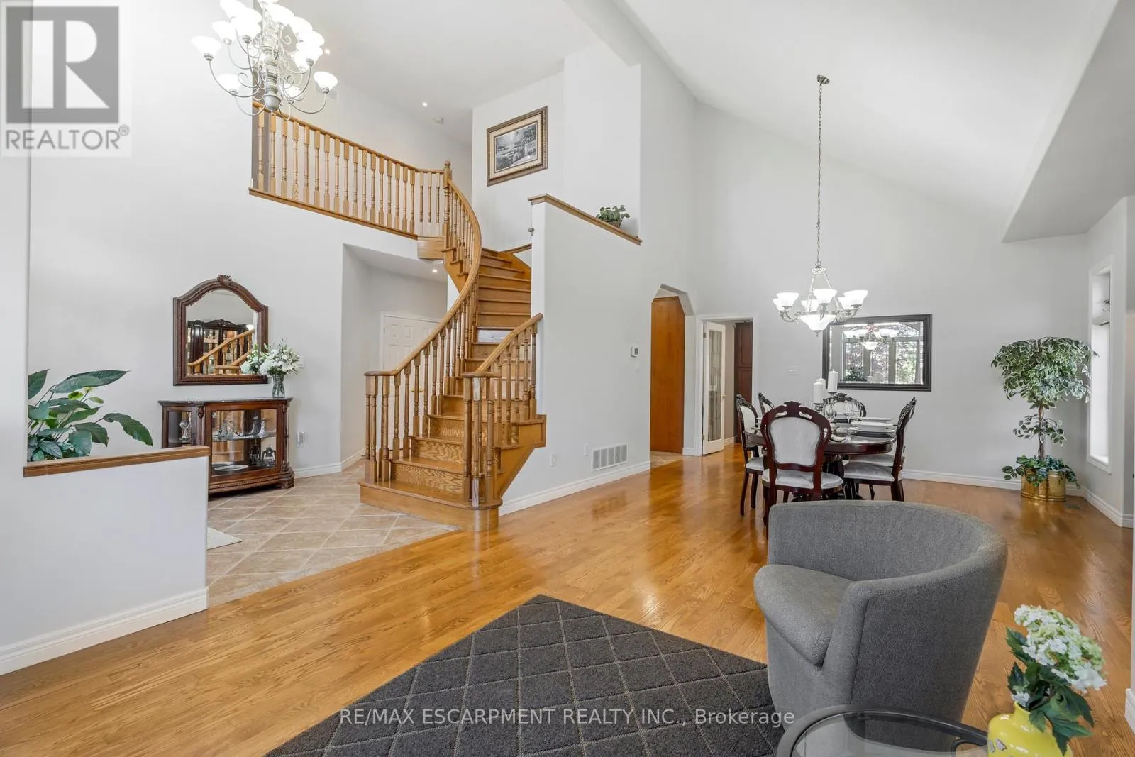 Cross Streets: Regalview Dr. ** Directions: Hwy 8 to Regal view to Shadeland. Escape the hectic pace of the modern world and step into your own private cottage retreat. Nestled gracefully beneath the Niagara Escarpment on a quiet crescent, this custom-built (2003) home sits on a premium pie-shaped lot backing onto lush, protected green space. This isn't just a backyard; it's a lifestyle. Imagine trading screen time for real-world adventures-watching your kids catch frogs by your private, multi-tiered waterfall or chase fireflies as the sun goes down. Spend your evenings soaking in the hot tub, letting the stresses of the day melt away to the tranquil sounds of trickling water and a gentle symphony of cicadas and grasshoppers. It is a true piece of calm in a busy world. Inside, that connection to nature continues. Oversized windows flood the meticulously maintained 4+1 bedroom home with natural light, complementing the soaring ceilings and elegant rounded corners. The freshly painted interior features a kitchen equipped with brand-new appliances (including a gas cooktop option) protected by a 4-year warranty, plus reverse osmosis water at every sink. When it's time to unwind, the spacious primary suite serves as the ultimate sanctuary, featuring a two-sided gas fireplace shared with a luxurious, spa-like ensuite. Family living is made easy with walk-in closets in every single bedroom, central vac, and two fruit cellars. The fully finished basement offers fantastic in-law or income potential, boasting rare 9-foot ceilings, a separate entrance, and a roughed-in kitchen. Complete with an oversized exposed aggregate driveway parking six cars, this move-in-ready home perfectly balances the tranquility of nature with modern luxury. (id:27476)