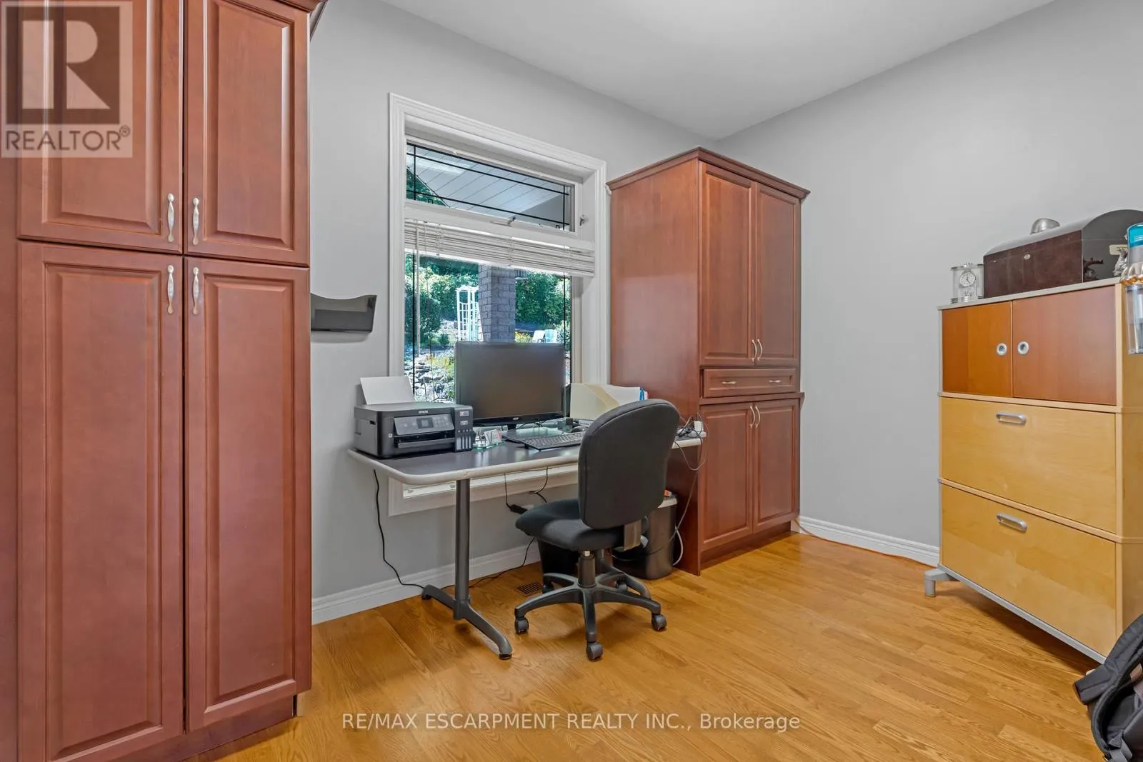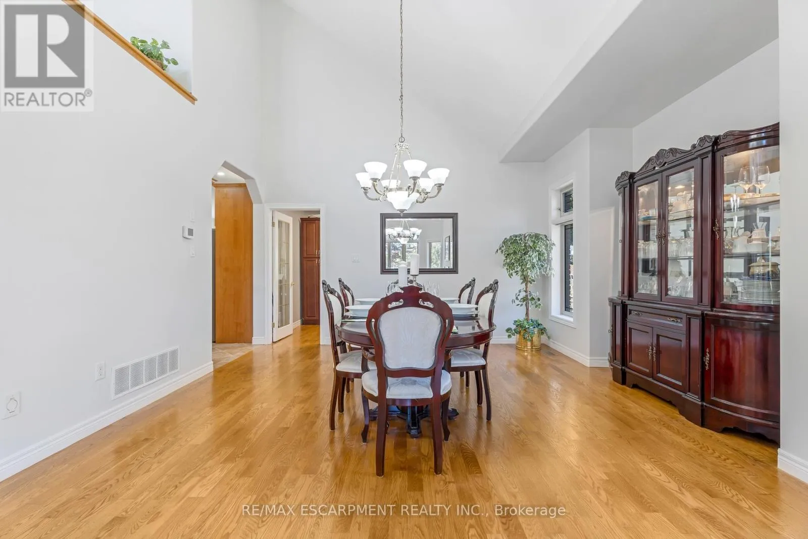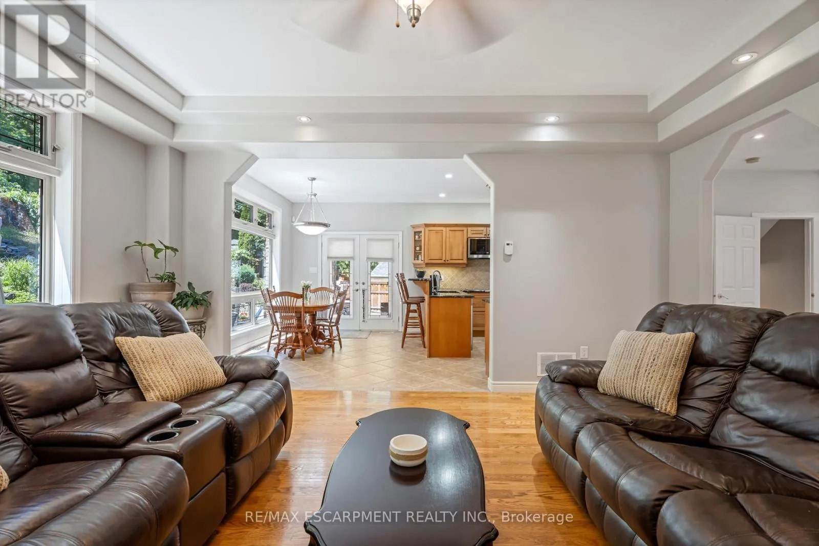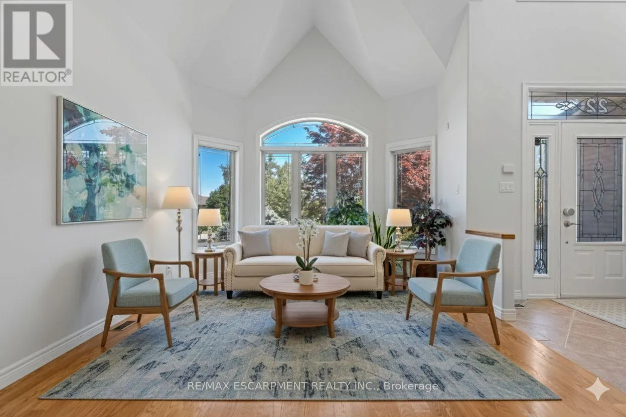Cross Streets: Regalview Dr. ** Directions: Hwy 8 to Regal view to Shadeland. Escape the hectic pace of the modern world and step into your own private cottage retreat. Nestled gracefully beneath the Niagara Escarpment on a quiet crescent, this custom-built (2003) home sits on a premium pie-shaped lot backing onto lush, protected green space. This isn't just a backyard; it's a lifestyle. Imagine trading screen time for real-world adventures-watching your kids catch frogs by your private, multi-tiered waterfall or chase fireflies as the sun goes down. Spend your evenings soaking in the hot tub, letting the stresses of the day melt away to the tranquil sounds of trickling water and a gentle symphony of cicadas and grasshoppers. It is a true piece of calm in a busy world. Inside, that connection to nature continues. Oversized windows flood the meticulously maintained 4+1 bedroom home with natural light, complementing the soaring ceilings and elegant rounded corners. The freshly painted interior features a kitchen equipped with brand-new appliances (including a gas cooktop option) protected by a 4-year warranty, plus reverse osmosis water at every sink. When it's time to unwind, the spacious primary suite serves as the ultimate sanctuary, featuring a two-sided gas fireplace shared with a luxurious, spa-like ensuite. Family living is made easy with walk-in closets in every single bedroom, central vac, and two fruit cellars. The fully finished basement offers fantastic in-law or income potential, boasting rare 9-foot ceilings, a separate entrance, and a roughed-in kitchen. Complete with an oversized exposed aggregate driveway parking six cars, this move-in-ready home perfectly balances the tranquility of nature with modern luxury. (id:27476)