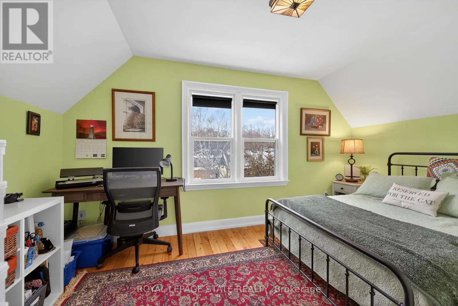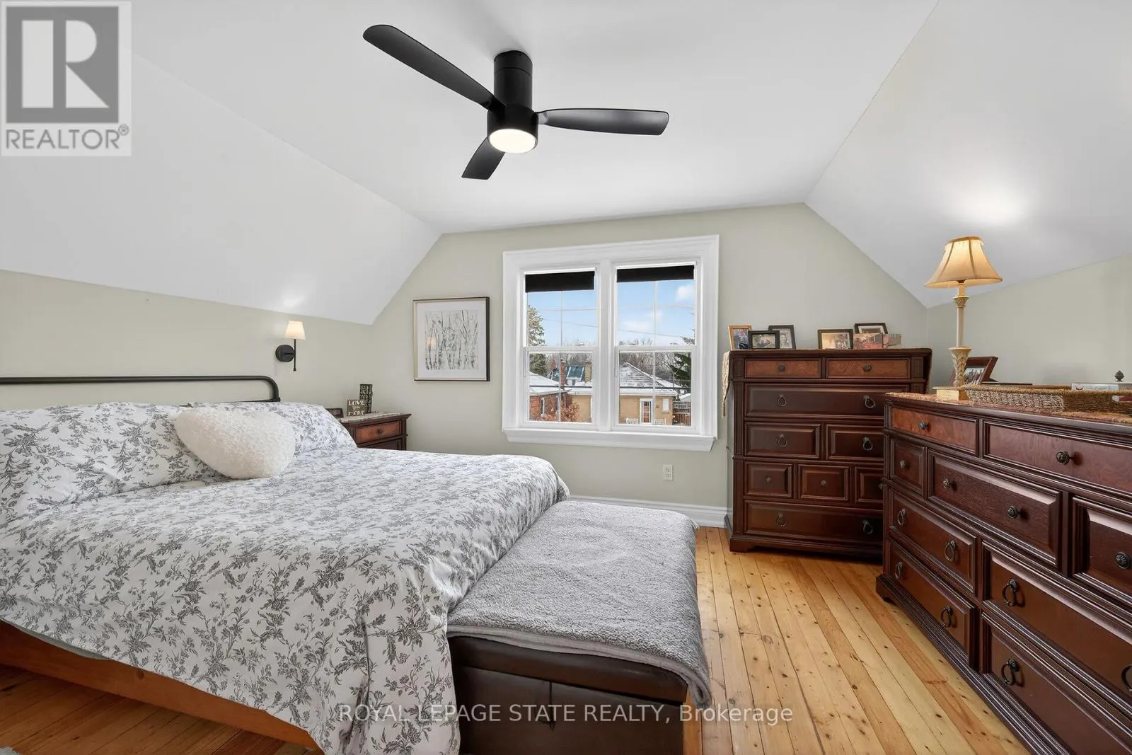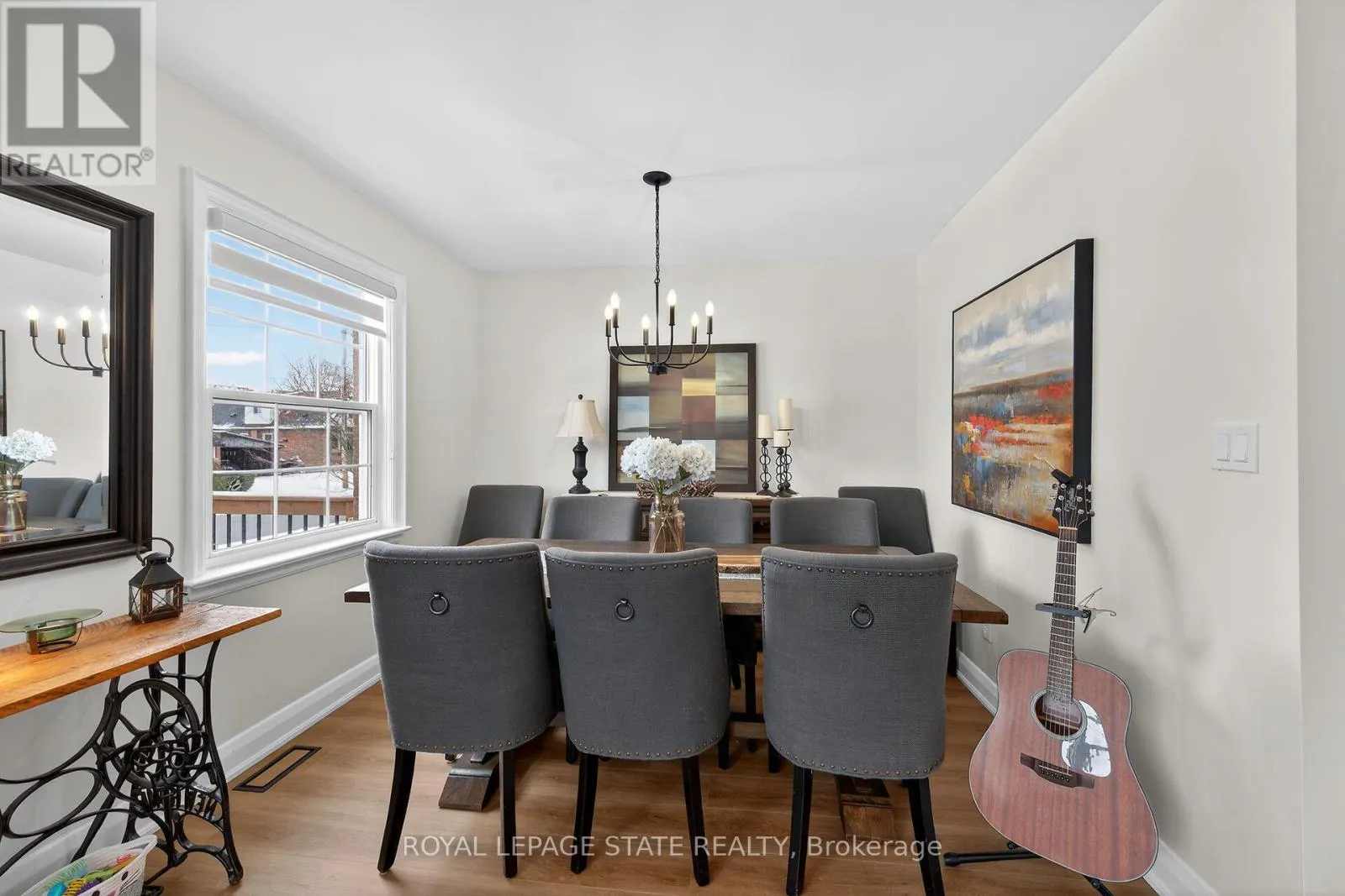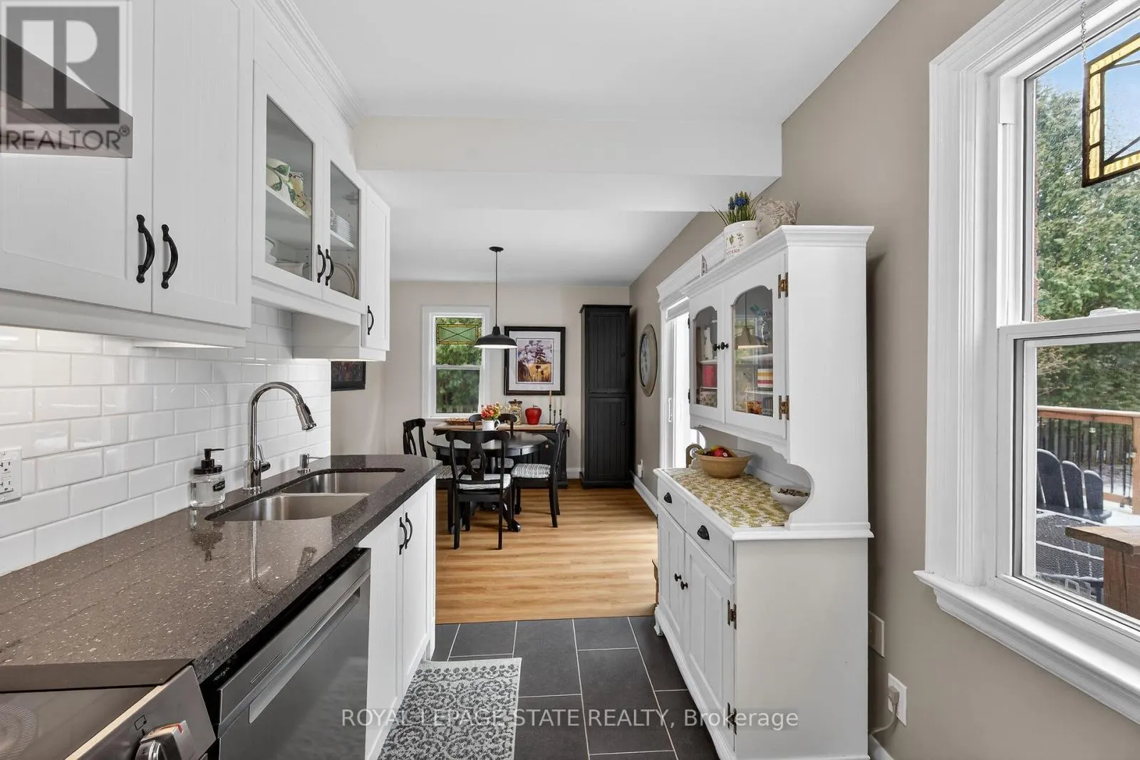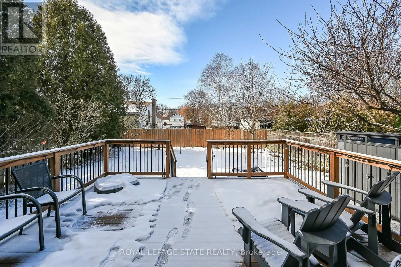 Cross Streets: York Road. ** Directions: King St. to York Road to Cameron Avenue. Welcome to this charming 1.5-storey home in the heart of Dundas, just a short walk to the shops, cafés, and vibrant atmosphere of Olde Town. This beautifully maintained 2-bedroom,2.5-bath home blends classic character with thoughtful updates and functional living space. Step inside to a bright, open-concept main floor featuring laminate flooring, and an inviting layout perfect for everyday living and entertaining. The bright white kitchen is both stylish and practical, complete with stainless steel appliances and a patio door walkout to the deck-ideal for seamless indoor-outdoor living.Upstairs, you'll find comfortable bedrooms with hardwood flooring and an update bathrooms that offer a fresh, modern feel. The finished basement adds exceptional versatility with a cozy carpeted rec room featuring a gas fireplace, a 2pc bathroom and a convenient Murphybed-perfect for guests or a flexible living space. A large laundry room with cabinetry and ample storage throughout the basement add to the home's practicality. Outside, the fully fenced, generously sized yard is perfect for families, pets, for entertaining. Enjoy summer evenings on the deck, and take advantage of the two garden sheds for additional storage. With updated windows, stylish finishes, and an unbeatable walkable location, this Dundas gem offers comfort, convenience, and community all in one. Don't miss your opportunity to call it home! * Floorplans in photos * (id:27476)