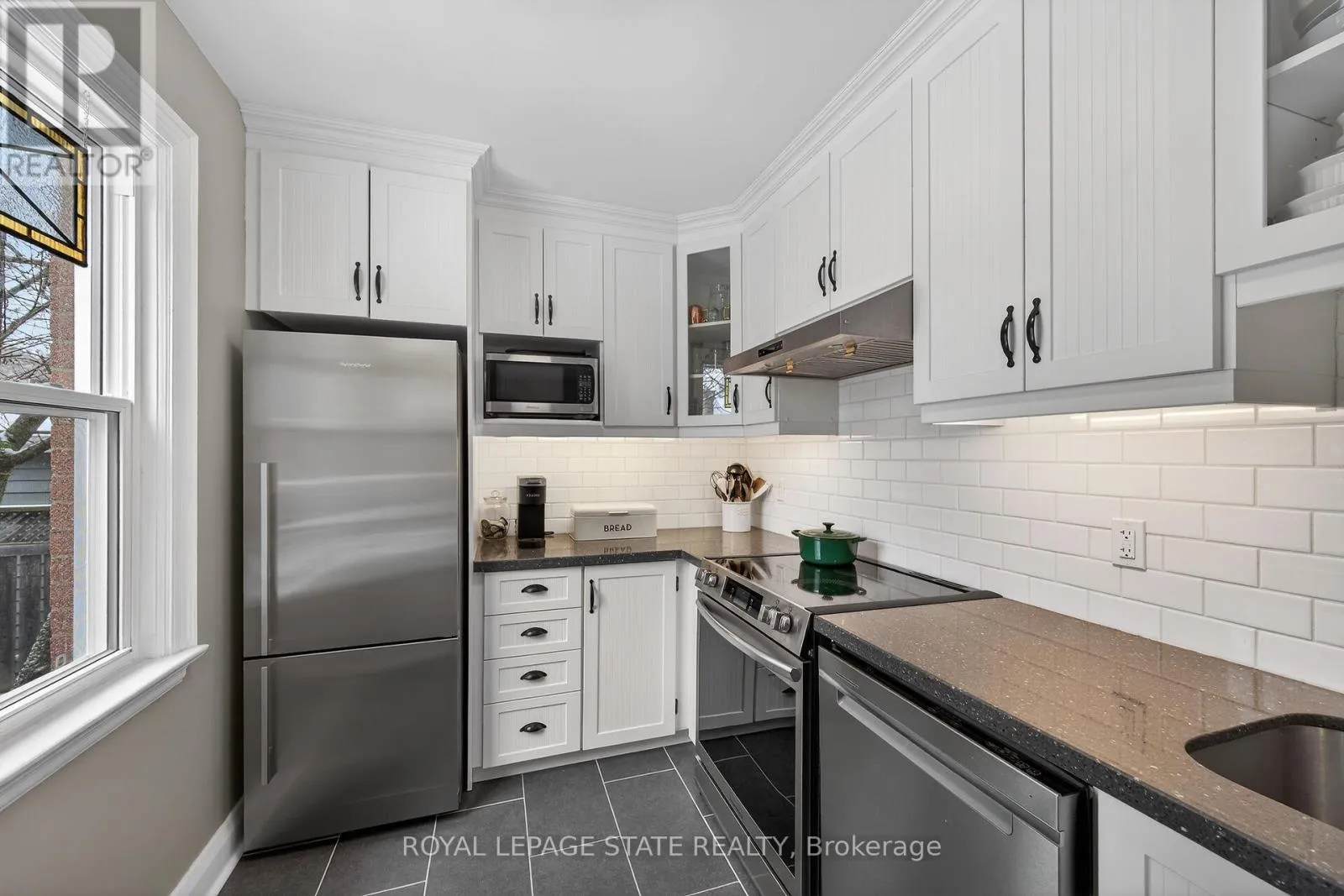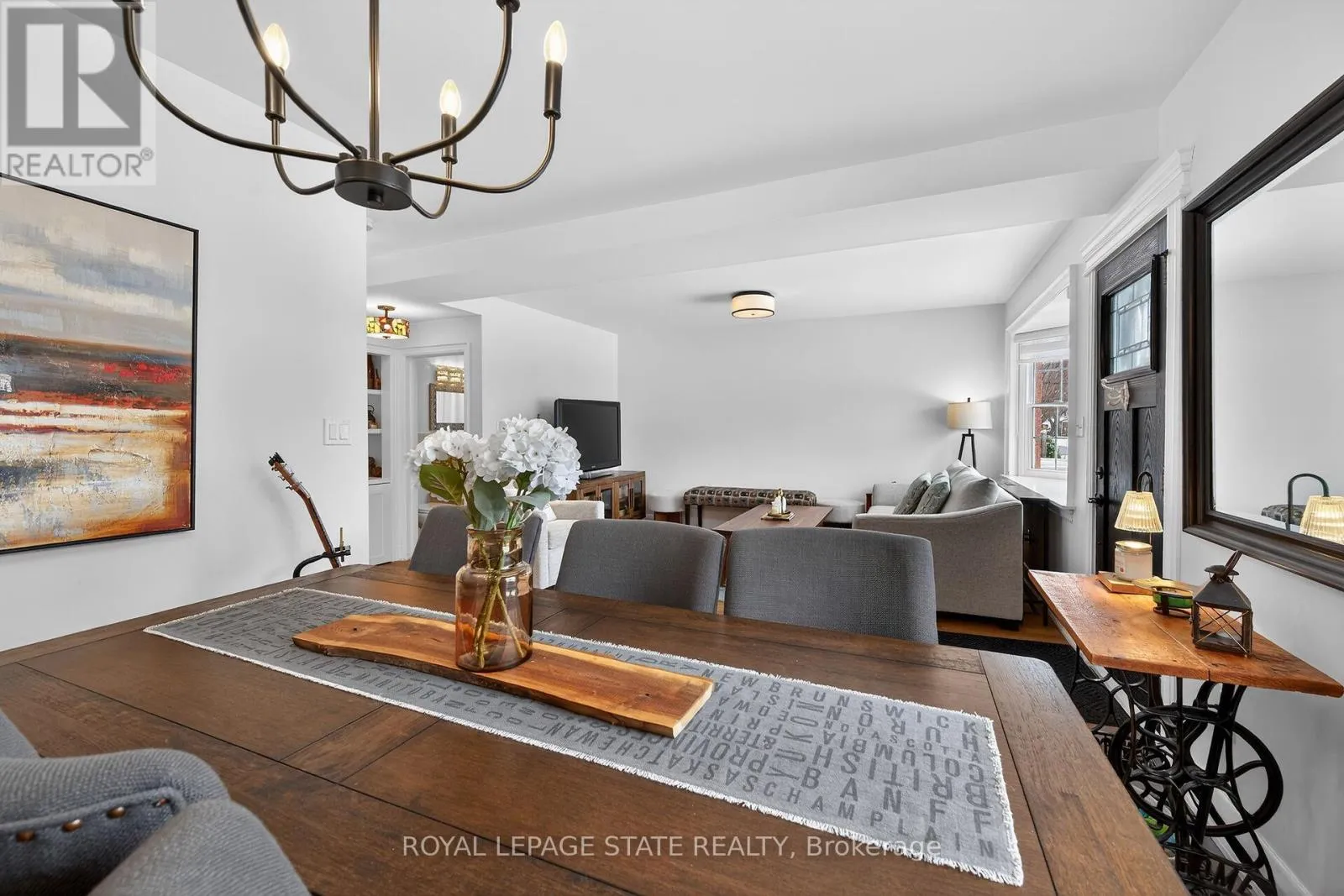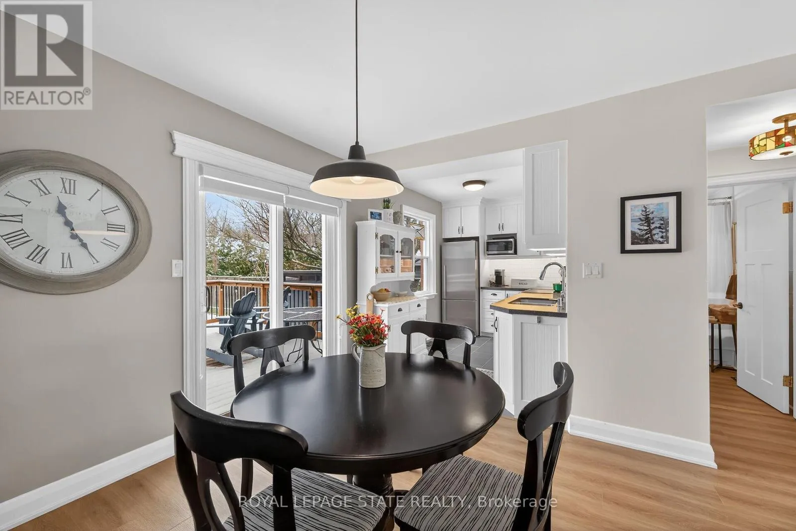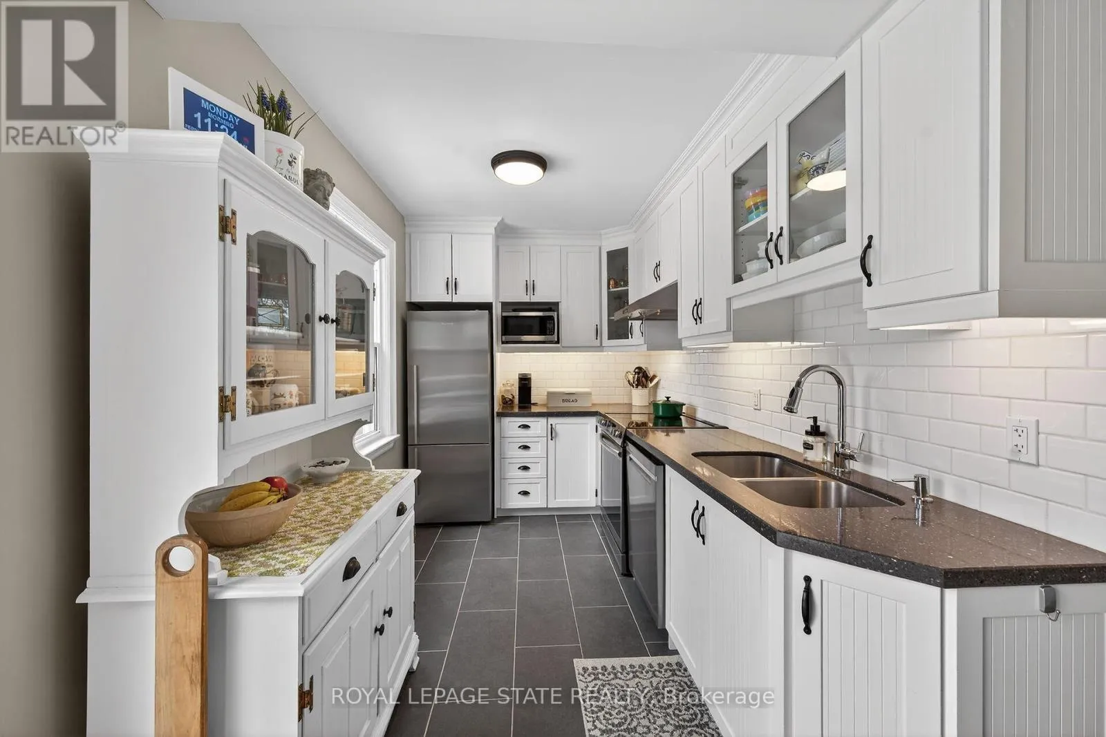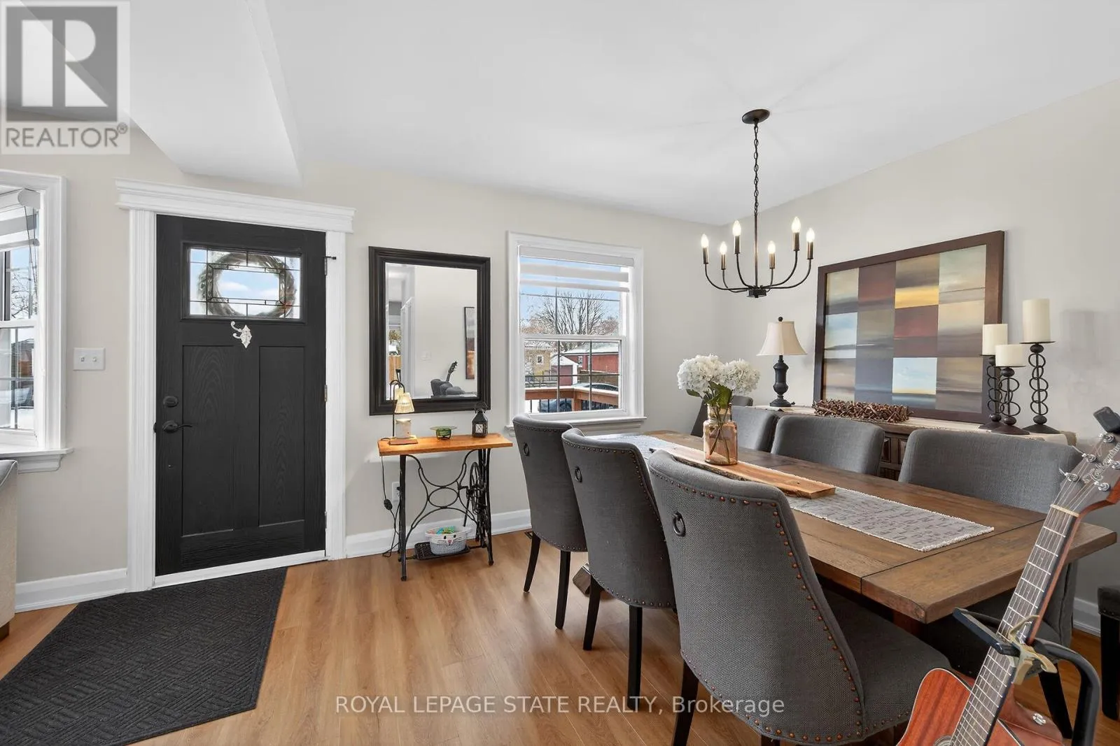 Cross Streets: York Road. ** Directions: King St. to York Road to Cameron Avenue. Welcome to this charming 1.5-storey home in the heart of Dundas, just a short walk to the shops, cafés, and vibrant atmosphere of Olde Town. This beautifully maintained 2-bedroom,2.5-bath home blends classic character with thoughtful updates and functional living space. Step inside to a bright, open-concept main floor featuring laminate flooring, and an inviting layout perfect for everyday living and entertaining. The bright white kitchen is both stylish and practical, complete with stainless steel appliances and a patio door walkout to the deck-ideal for seamless indoor-outdoor living.Upstairs, you'll find comfortable bedrooms with hardwood flooring and an update bathrooms that offer a fresh, modern feel. The finished basement adds exceptional versatility with a cozy carpeted rec room featuring a gas fireplace, a 2pc bathroom and a convenient Murphybed-perfect for guests or a flexible living space. A large laundry room with cabinetry and ample storage throughout the basement add to the home's practicality. Outside, the fully fenced, generously sized yard is perfect for families, pets, for entertaining. Enjoy summer evenings on the deck, and take advantage of the two garden sheds for additional storage. With updated windows, stylish finishes, and an unbeatable walkable location, this Dundas gem offers comfort, convenience, and community all in one. Don't miss your opportunity to call it home! * Floorplans in photos * (id:27476)