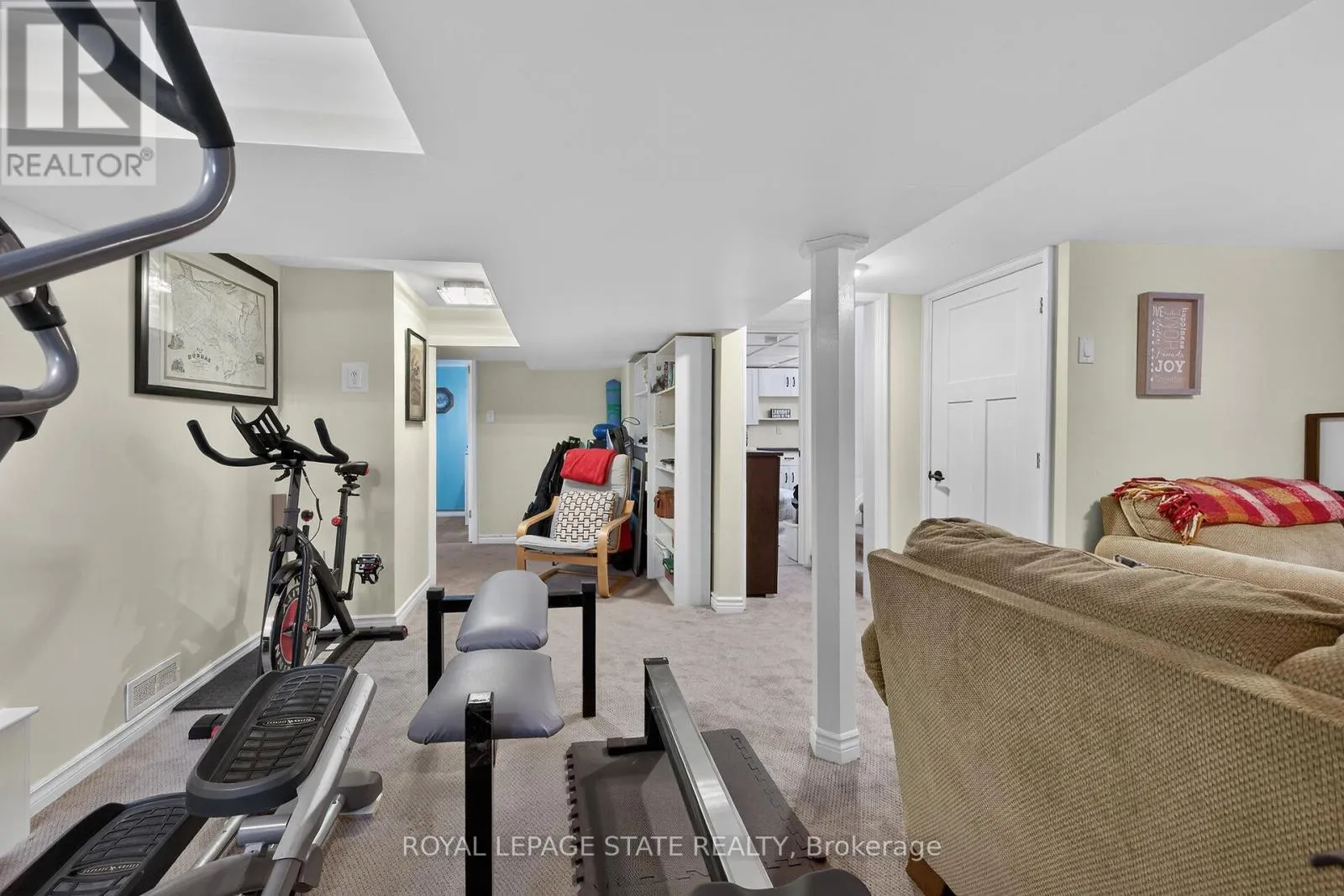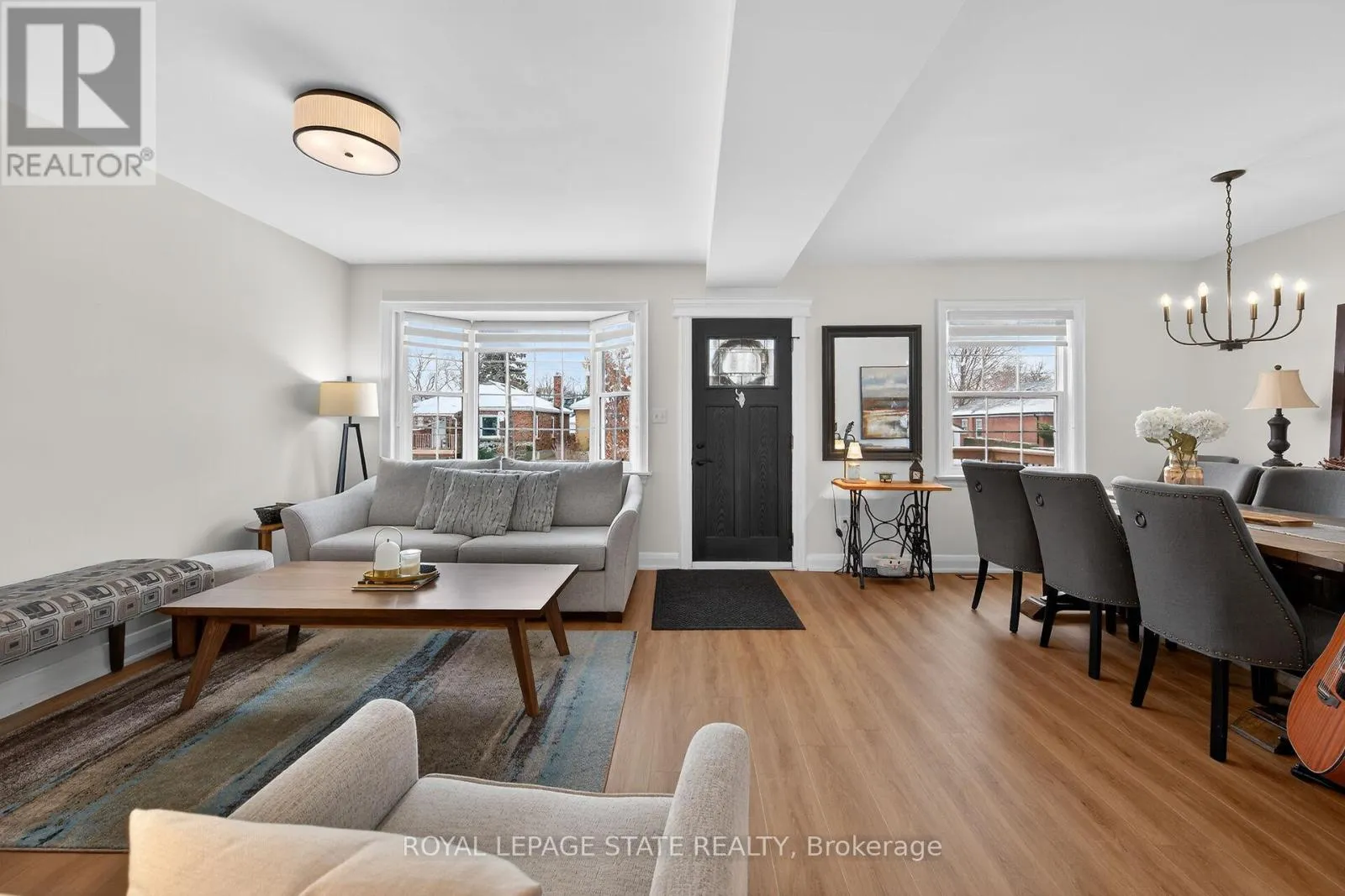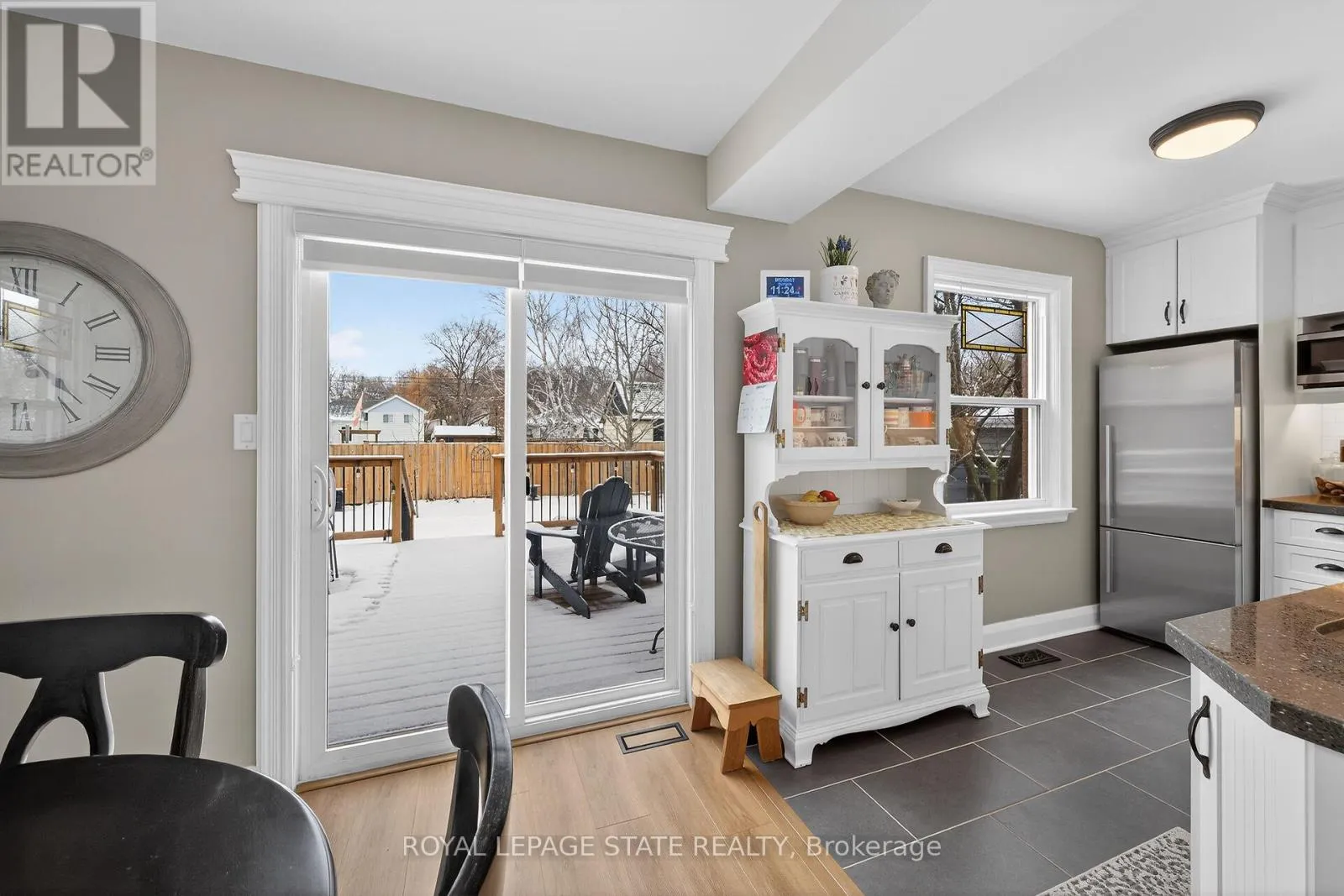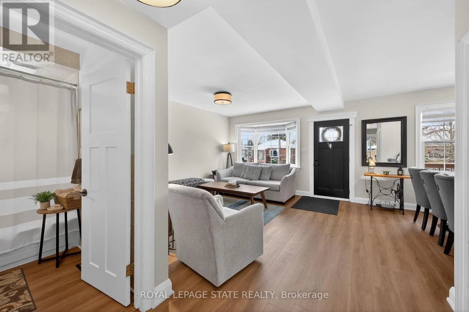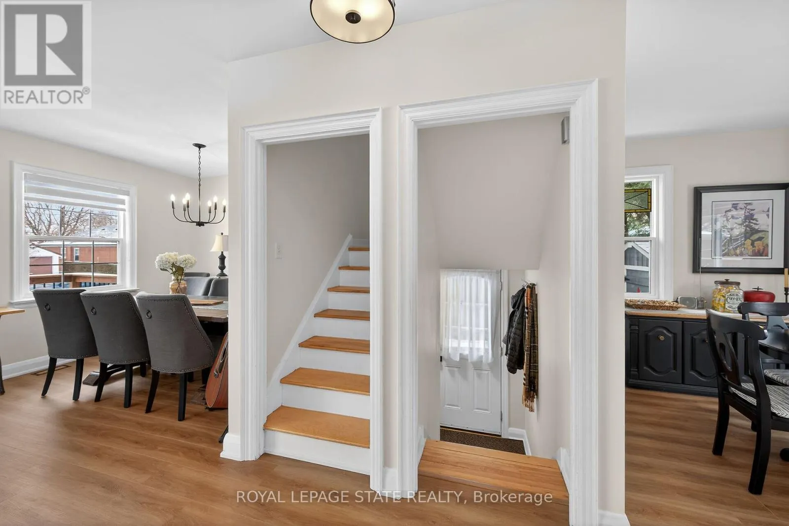 Cross Streets: York Road. ** Directions: King St. to York Road to Cameron Avenue. Welcome to this charming 1.5-storey home in the heart of Dundas, just a short walk to the shops, cafés, and vibrant atmosphere of Olde Town. This beautifully maintained 2-bedroom,2.5-bath home blends classic character with thoughtful updates and functional living space. Step inside to a bright, open-concept main floor featuring laminate flooring, and an inviting layout perfect for everyday living and entertaining. The bright white kitchen is both stylish and practical, complete with stainless steel appliances and a patio door walkout to the deck-ideal for seamless indoor-outdoor living.Upstairs, you'll find comfortable bedrooms with hardwood flooring and an update bathrooms that offer a fresh, modern feel. The finished basement adds exceptional versatility with a cozy carpeted rec room featuring a gas fireplace, a 2pc bathroom and a convenient Murphybed-perfect for guests or a flexible living space. A large laundry room with cabinetry and ample storage throughout the basement add to the home's practicality. Outside, the fully fenced, generously sized yard is perfect for families, pets, for entertaining. Enjoy summer evenings on the deck, and take advantage of the two garden sheds for additional storage. With updated windows, stylish finishes, and an unbeatable walkable location, this Dundas gem offers comfort, convenience, and community all in one. Don't miss your opportunity to call it home! * Floorplans in photos * (id:27476)