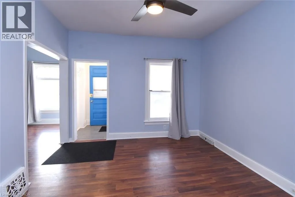 403 to Main St E exit, turn right onto Prospect St S Just a short walk to Gage Park and the vibrant Ottawa Street shopping district, this charming 1½-storey home is the perfect starter or downsizer. Featuring 2 bedrooms, including one with a large dormer denâideal for storage, a spacious walk-in closet, or a teen retreatâthis home offers flexibility to suit your needs. The main floor includes a generous 4-piece bath, updated eat-in kitchen with gas stove and fridge included, separate dining room, bright living room, and a main-floor office or potential third bedroom. The full basement is clean and unfinished, offering excellent storage or future potential. Enjoy morning coffee on the welcoming front porch or relax in the enclosed rear porch overlooking a private, fully fenced backyard complete with a perennial pollinator garden. A rare bonus: 3-car asphalt parking pad accessed from the rear lane. Impeccably clean, freshly painted in areas, and truly move-in ready. Room sizes approximate (id:27476)