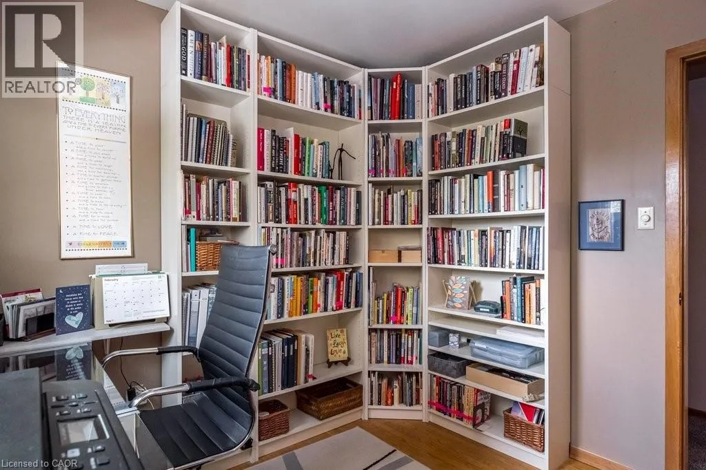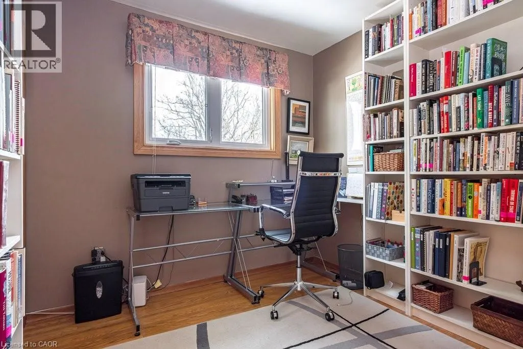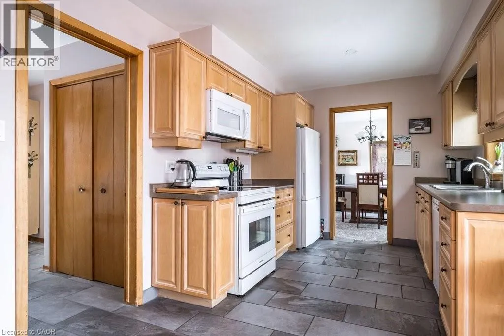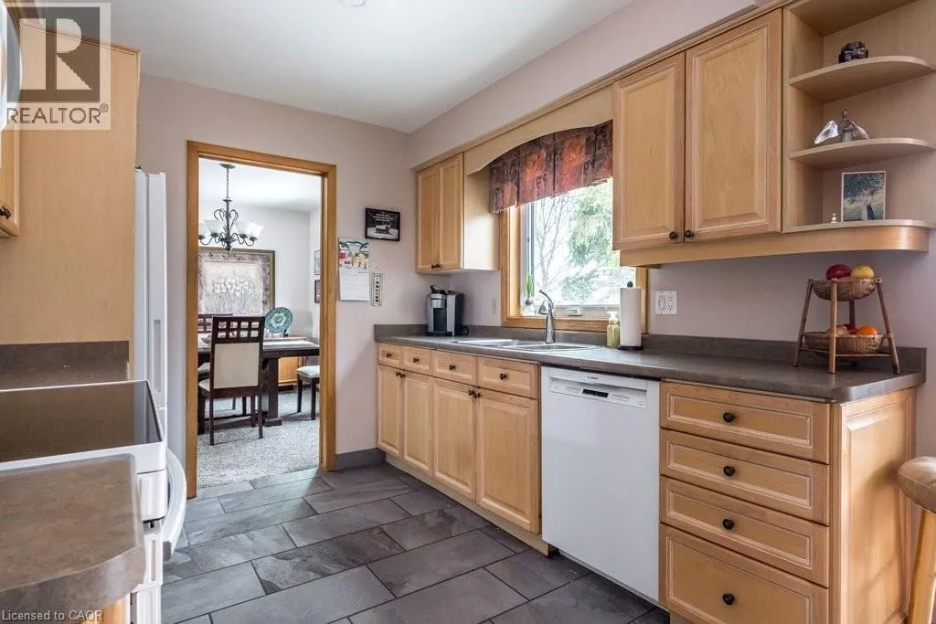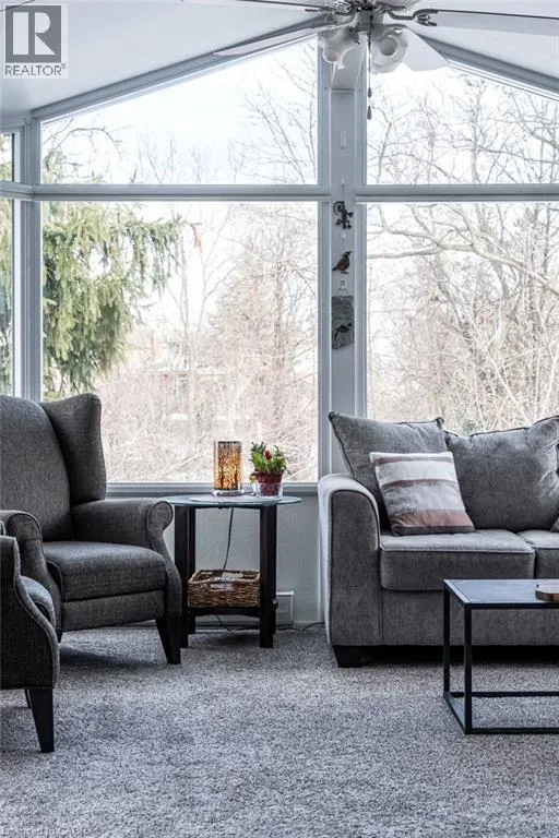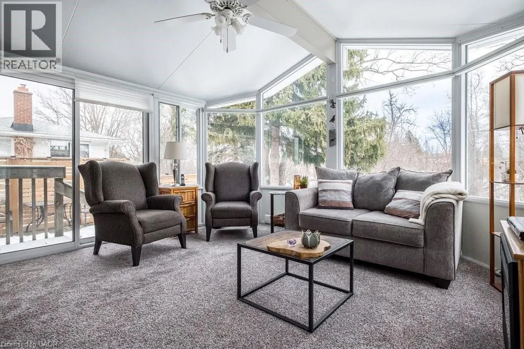 Scenic north from Mohawk, bear to the right and then south onto Chateau Crt Welcome to 19 Chateau Court in Hamilton, a beautifully maintained 4-bedroom, 1.5-bathroom home set on a premium ravine lot offering exceptional privacy and tranquil, treed views. The backyard retreat is a true highlight, featuring a stunning sunroom addition completed in 2004 by QSI (with permits) walk out to two tier deck with privacy fencing., filled with natural light and showcasing picturesque ravine vistasâperfect for relaxing or entertaining year-round. Remarkable two-level deck to the yard and ravine, offers the comfort of private time in the warmest months. The thoughtfully updated main level blends warmth and functionality with a renovated Canec kitchen (2005), an inviting living room with a Napoleon gas fireplace (2004) and remote, and ceramic flooring (2020) in key areas including the front hall, kitchen, back entry, and powder room. Beautiful Alexanian broadloom (2022) enhances the sunroom, living and dining rooms, staircase, and second-floor hallway, with original hardwood flooring underneath (except the sunroom). Upstairs offers four generous bedrooms and a tastefully renovated full bathroom (2020), complemented by a convenient main-floor powder room. The basement features a classic recreation room with nostalgic wood panelling, ideal for recreation or future customization. Extensive exterior and mechanical updates include eaves and gutter protection (2015), repaved driveway (2018), redesigned front porch, steps, sidewalk, and perennial gardens by Gelderman Landscaping, roof replacement by DeLuca Roofing (2019), and a Boonstra suppled new furnace and A/C with heat pump (2025). Located in a desirable, established Hamilton neighbourhood close to excellent schools, parks, escarpment trails, shopping, dining, public transit, and convenient highway access, this home offers a rare opportunity to enjoy privacy, quality updates, and natural beauty while remaining close to every amenity. PUBLIC OPEN HOUSES - Sunday, March 1st and Saturday, February 28, 2-4pm. (id:27476)