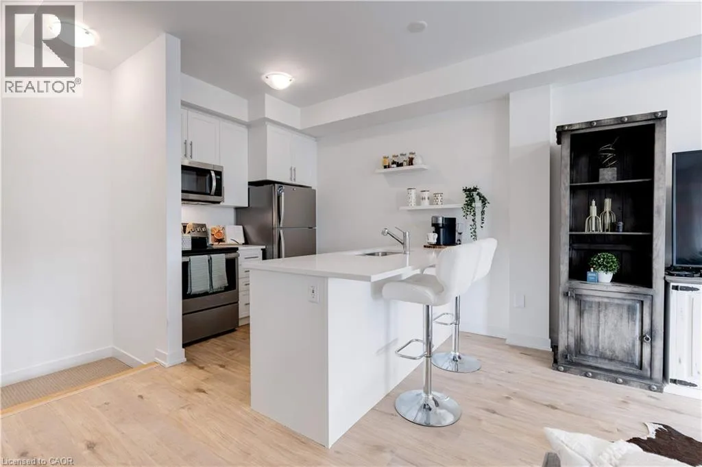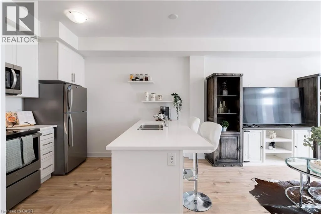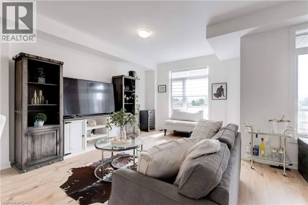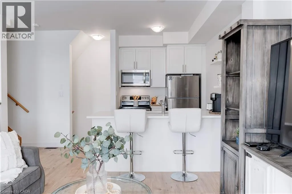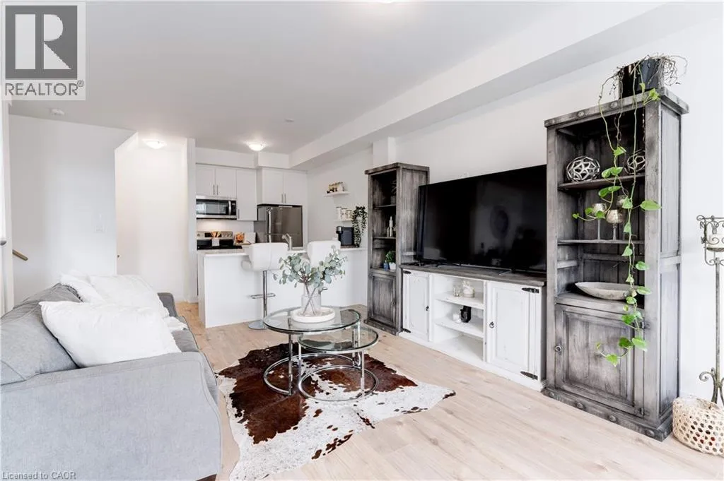 FRUITLAND RD/NORTH SERVICE RD Enjoy nearly 1,300 sq. ft. of bright, thoughtfully designed living space in this beautiful freehold townhome, perfectly located just steps from the lake and moments from the QEW. Set within a quiet, friendly neighbourhood surrounded by parks, trails, and the harbour, this home offers the perfect balance of convenience and a relaxed lakeside lifestyle. The open-concept main floor features 9-foot ceilings, a spacious living and dining area, and a modern kitchen with stainless steel appliances, a functional sit-up island, and plenty of storage. Step out onto the private balcony and enjoy peaceful, unobstructed views â ideal for your morning coffee or evening BBQs. Upstairs, youâll find a generous primary bedroom with a walk-in closet, a comfortable second bedroom, a stylish 4-piece bath, and in-suite laundry for ultimate convenience. The ground level includes a rare oversized storage room, an inside-entry single car garage with automatic door, and an additional driveway parking space. Low-maintenance living in a prime location â close to all amenities, schools, waterfront parks, and trails. (id:27476)