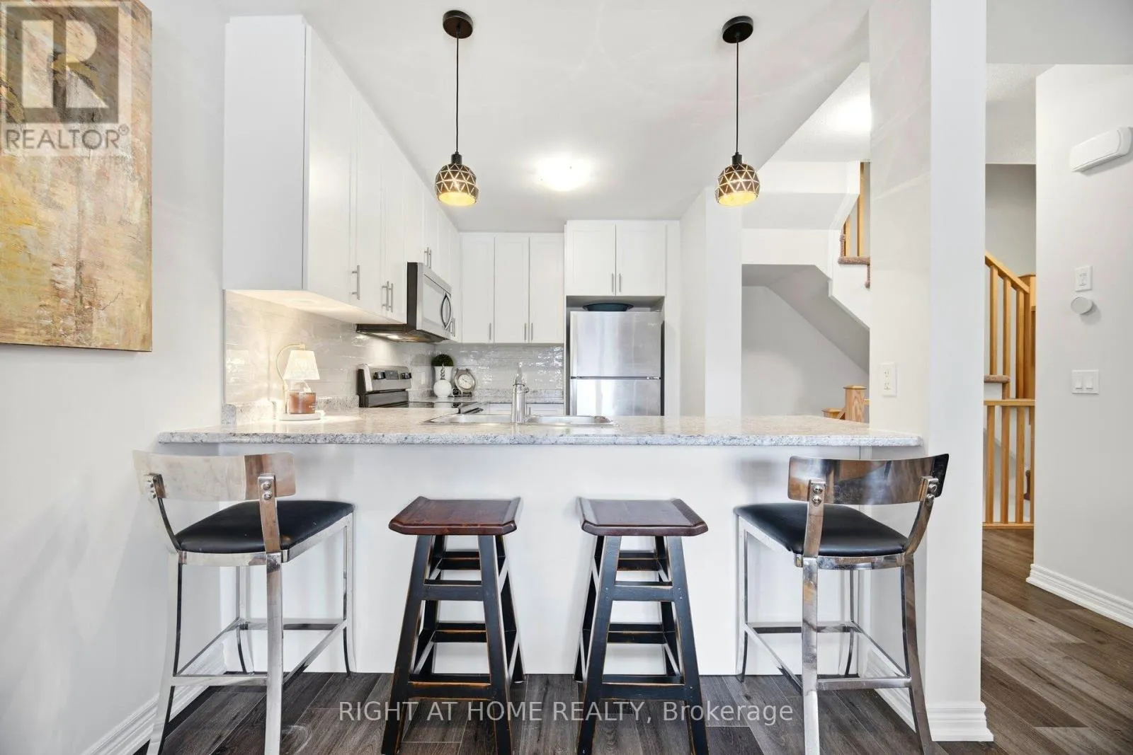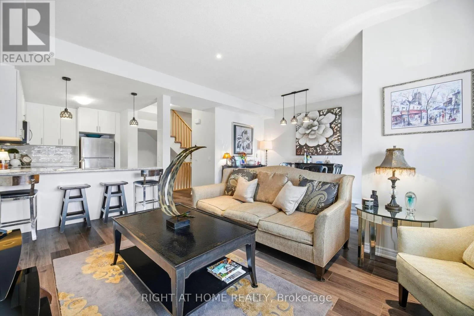Cross Streets: Picardy and Talence. ** Directions: Upper Centennial Pkwy to Highland Rd W to Picardy. Stylish newer-built freehold townhouse located in a prime Stoney Creek Mountain neighbourhood, thoughtfully finished throughout and offering a clean, modern layout ideal for everyday living. A "Fully Furnished Option" (high end) is available, providing added flexibility and convenience. The bright main level features wide-plank wood-inspired flooring, pot lighting, and large windows, anchored by a sleek kitchen, venetian & cellular shades, deep upper cabinet & gable over fridge, stainless steel appliances, tiled backsplash, double sink, Nest thermostat, linen/storage cabinets and breakfast bar seating. Upgrades include, high efficiency heat pump, garage door opener, pendant lights, D/R light, all pot lights, stainless steel appliances, washer/dryer. The upper level is well designed with two spacious bedrooms w/Loft that can be used as an office or +1 bedroom, including a primary suite with walk-in closet, plus convenient upper-level laundry, making the home equally well suited to professionals, first-time buyers, or young families. Enjoy the benefit of being directly across from the complex's green space/playground, along with parking that includes an attached garage, private driveway, and visitor parking for guests. Ideally situated across from Saltfleet High School, this location is perfect for families seeking top-tier education within walking distance. Commuters will appreciate quick access to the Red Hill Valley Parkway and Lincoln Alexander Parkway, while shopping, dining, parks, and everyday amenities are all just minutes away. A move-in-ready (Furnished Optional) opportunity in one of Hamilton's fastest-growing areas-whether you're buying your first home, upsizing, or investing. Don't miss the chance to secure this furnished-optional property in an exceptional location (id:27476)