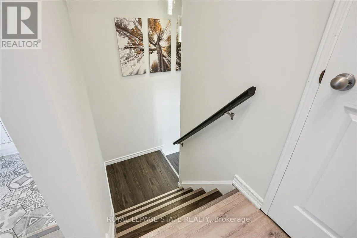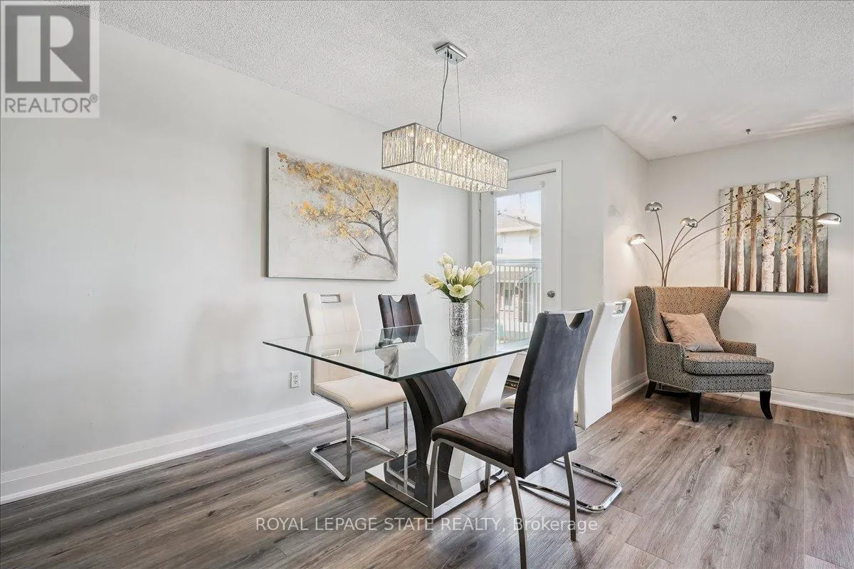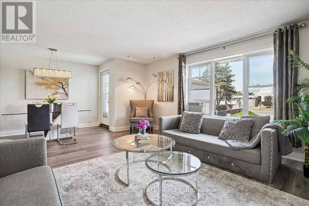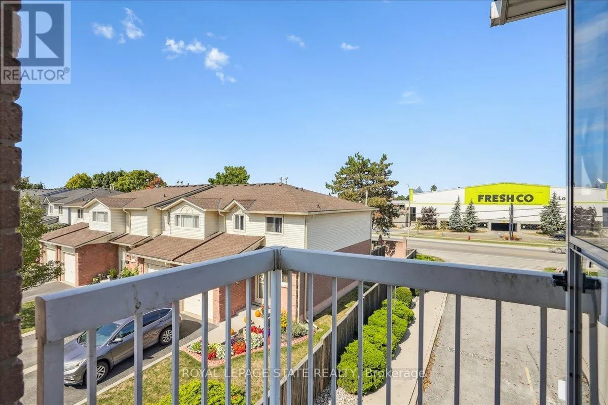 Cross Streets: RYMAL/UPR GAGE. ** Directions: Linc to Upper Gage ave, left onto Rymal rd E. Welcome to this charming 2-bedroom condo, perfectly located on Hamilton's East Mountain! Enjoy the convenience of being steps from shopping, right on a bus route, and just minutes to the LINC and Red Hill expressways. The main level features updated laminate flooring, a stylishly refreshed kitchen with modern appliances, a separate dining area, in-suite laundry, and a walkout to your own private balcony for fresh-air relaxation. Upstairs, you'll find two bright bedrooms and an updated bathroom. Additional highlights include a glass French door, updated lighting, and budget-friendly condo fees. Quick possession is available - move in and enjoy! (id:27476)
