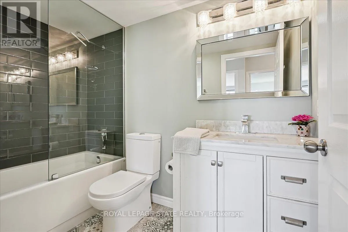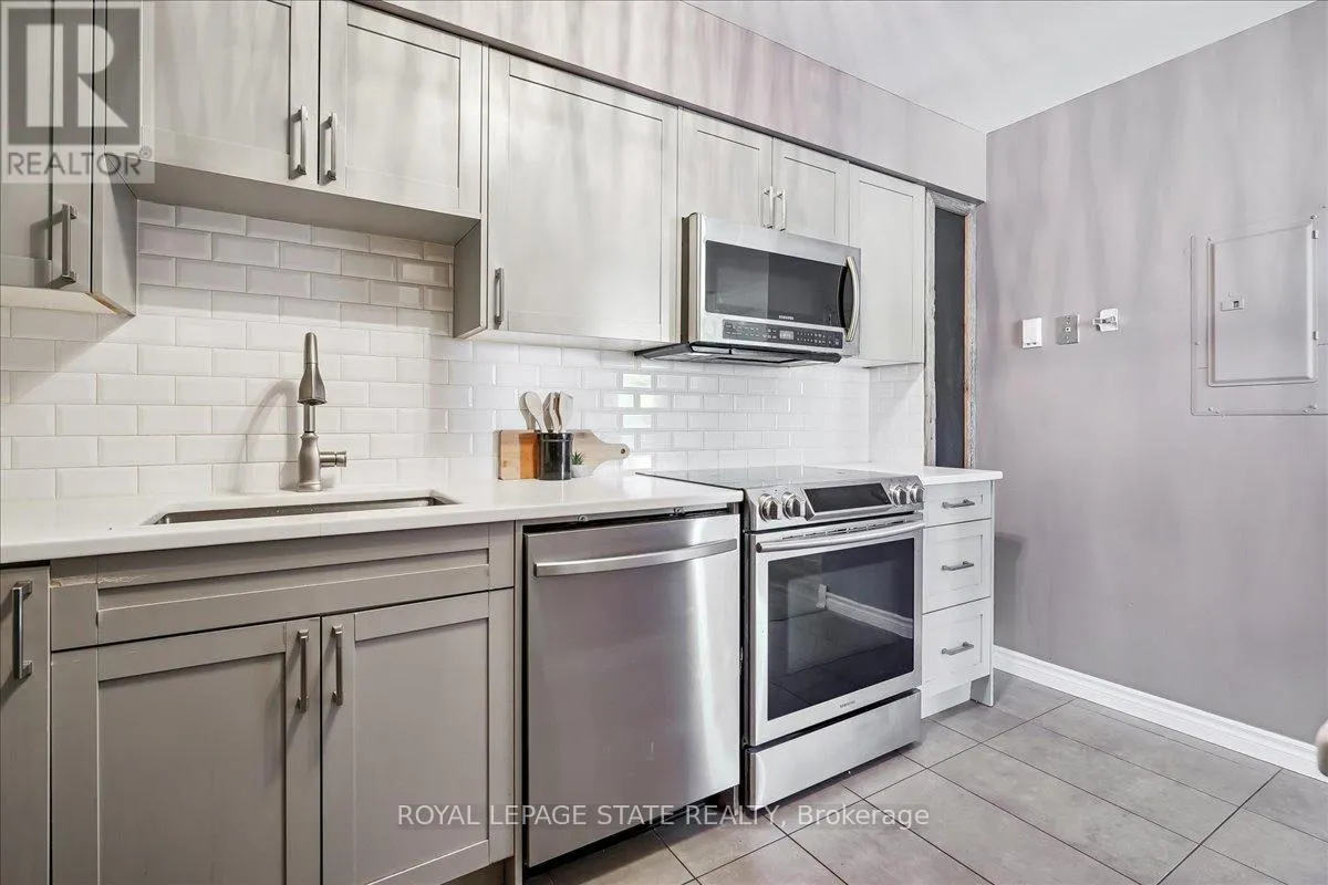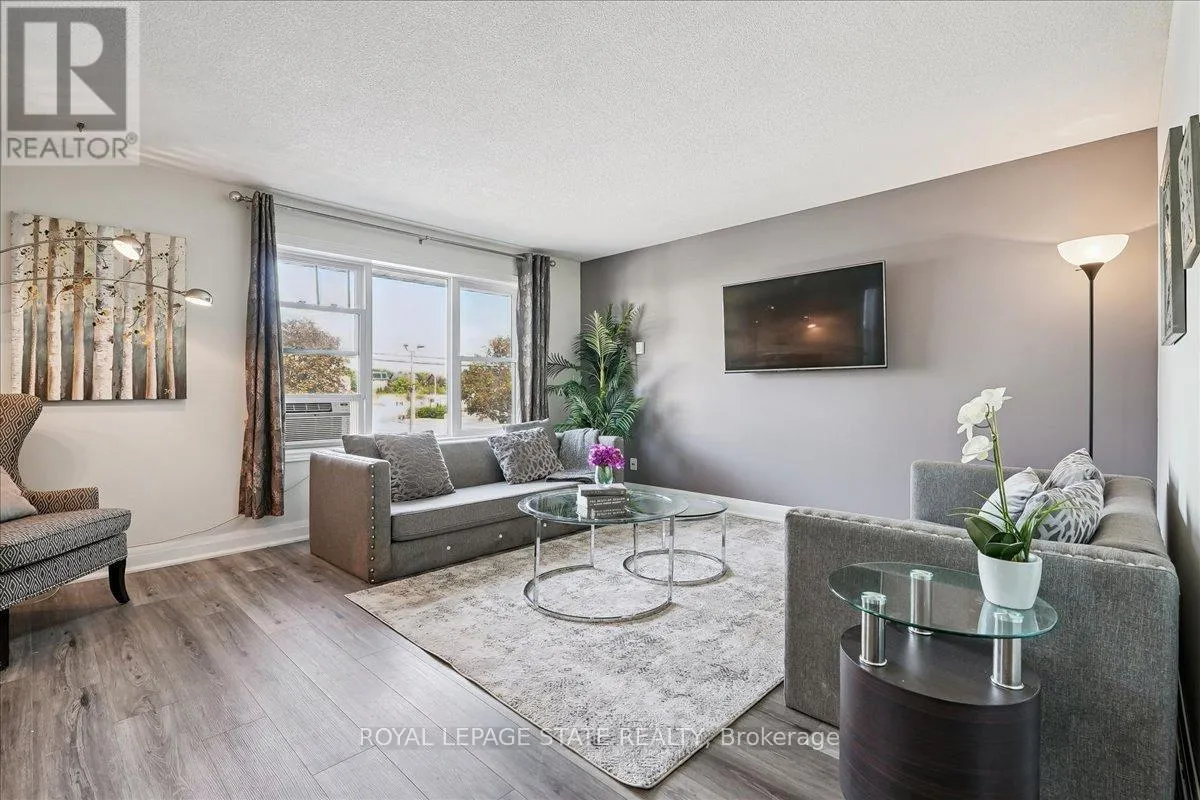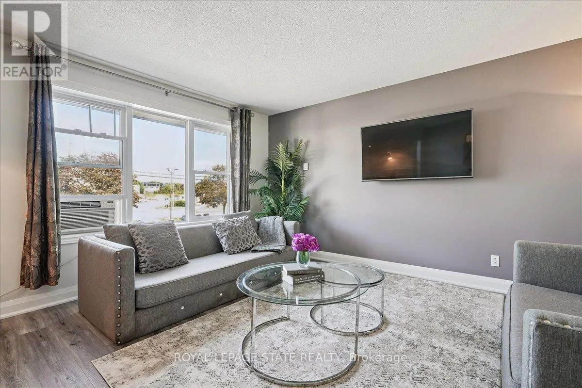 Cross Streets: RYMAL/UPR GAGE. ** Directions: Linc to Upper Gage ave, left onto Rymal rd E. Welcome to this charming 2-bedroom condo, perfectly located on Hamilton's East Mountain! Enjoy the convenience of being steps from shopping, right on a bus route, and just minutes to the LINC and Red Hill expressways. The main level features updated laminate flooring, a stylishly refreshed kitchen with modern appliances, a separate dining area, in-suite laundry, and a walkout to your own private balcony for fresh-air relaxation. Upstairs, you'll find two bright bedrooms and an updated bathroom. Additional highlights include a glass French door, updated lighting, and budget-friendly condo fees. Quick possession is available - move in and enjoy! (id:27476)