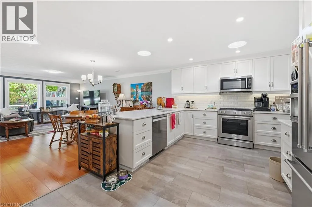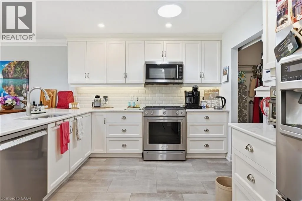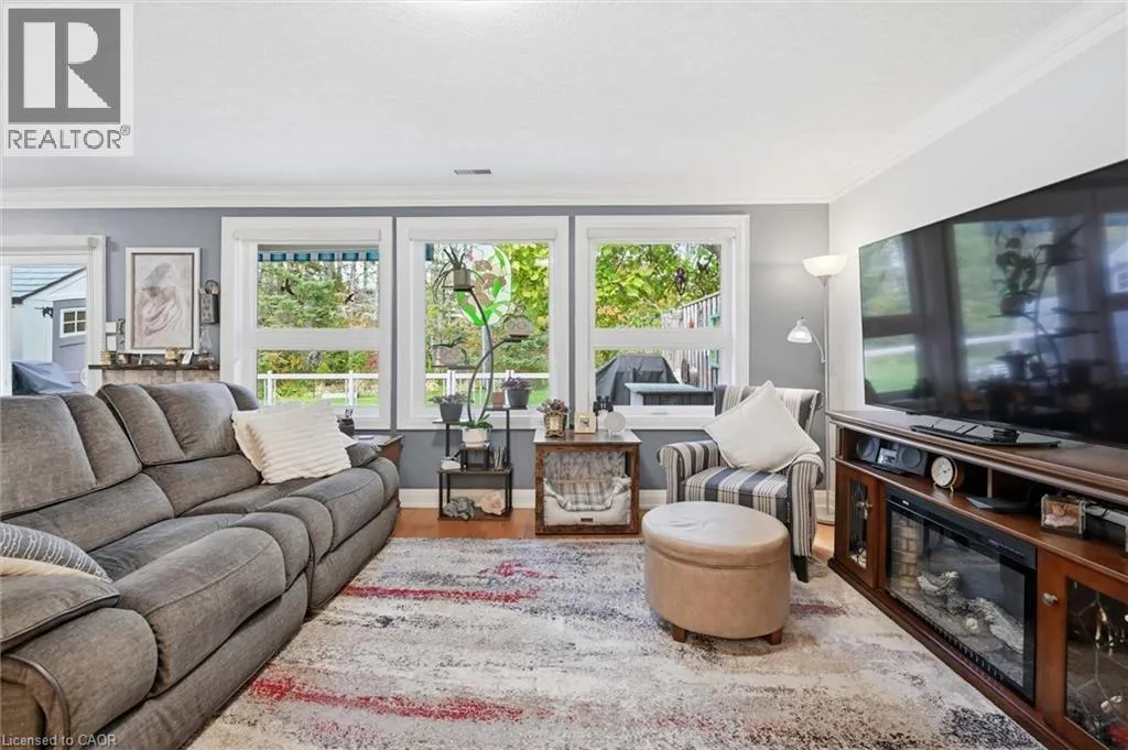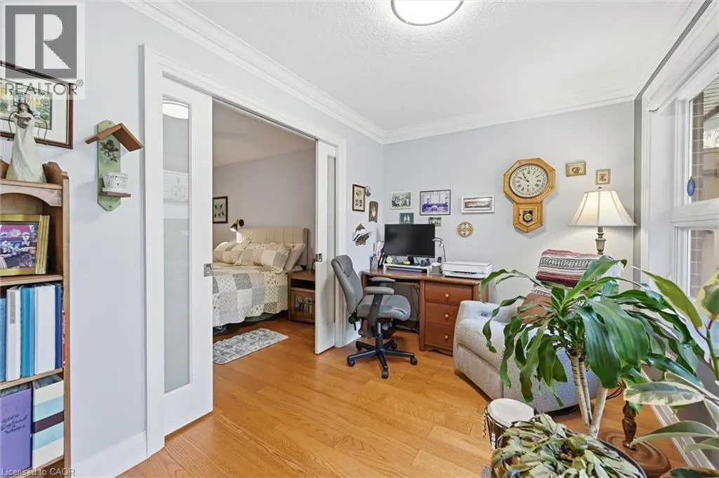 GARTH ST. & RYMAL RD W Location location location. Discover St. Elizabeth Villageâa vibrant 55+ community in Hamilton where every day feels like a getaway! Live life fullest in this resort-style community offering an exceptional lifestyle for active adults, with four-season indoor and outdoor recreation including fitness facilities, walking trails, swimming, social clubs, on-site retail, dining, entertainment, and festive events âall within a beautiful landscaped neighbourhood surrounded by natural scenery, and breathtaking views. This updated bungalow is perfectly situated with a serene forest backdrop and a clear view of a tranquil pond from the cozy covered front porch âperfect for relaxing. The home features two spacious bedrooms, both with walk-in closets (one with a vaulted ceiling), two full bathrooms, an open-concept living area with gas fireplace, a great bonus den area, carpet-free living including engineered hardwood floors, and elegant crown moulding. The stylish kitchen is filled with natural light from three sun tunnels and offers Quartz countertops, subway tile backsplash, and breakfast bar. Enjoy inside access to the impressive 12'ceiling garage complete with epoxy flooring, a workshop area including a sturdy Lee Valley workbench and peg-board wall, and an amazing standable loft area with drop-down stairs âa valuable space for storage and organization! The backyard retreat is ideal for relaxation and entertaining, featuring a composite deck with glass railing, a 16' x 12' awning, a deck fireplace to gather around, a BBQ with gas hookup, a storage shed, and a raised veggie garden bed. Whether youâre seeking connection, convenience, relaxation, or adventure, St. Elizabeth Village offers it all âright at your doorstep! (id:27476)