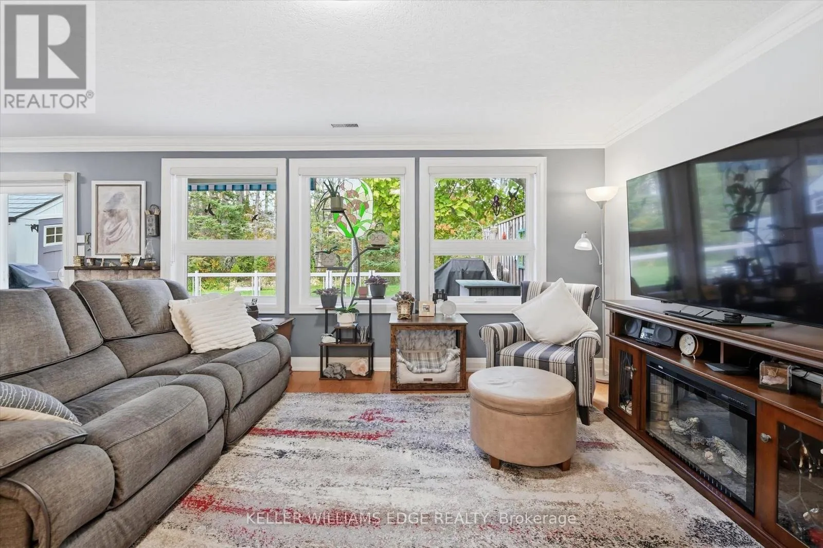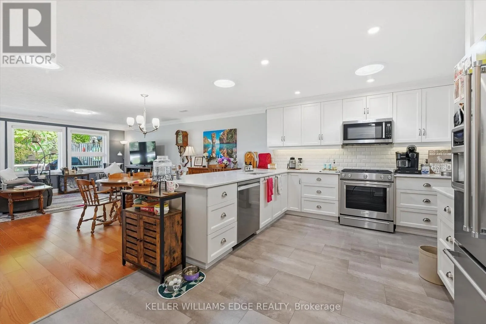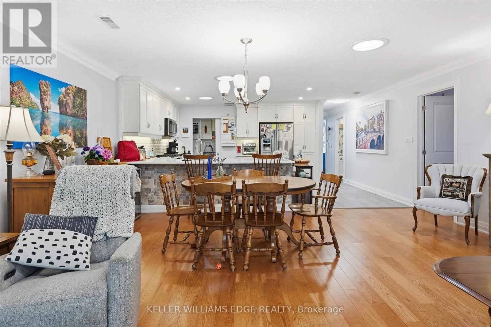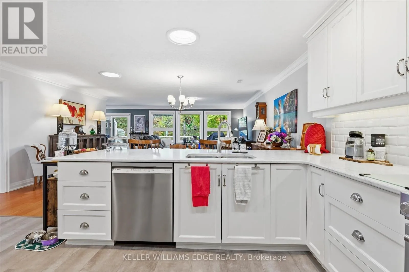 Garth St & Rymal Rd W Location location location. Discover St. Elizabeth Village-a vibrant 55+ community in Hamilton where every day feels like a getaway! Live life fullest in this resort-style community offering an exceptional lifestyle for active adults, with four-season indoor and outdoor recreation including fitness facilities, walking trails, swimming, social clubs, on-site retail, dining, entertainment, and festive events -all within a beautiful landscaped neighbourhood surrounded by natural scenery, and breathtaking views. This updated bungalow is perfectly situated with a serene forest backdrop and a clear view of a tranquil pond from the cozy covered front porch -perfect for relaxing. The home features two spacious bedrooms, both with walk-in closets (one with a vaulted ceiling), two full bathrooms, an open-concept living area with gas fireplace, a great bonus den area, carpet-free living including engineered hardwood floors, and elegant crown moulding. The stylish kitchen is filled with natural light from three sun tunnels and offers Quartz countertops, subway tile backsplash, and breakfast bar. Enjoy inside access to the impressive 12'ceiling garage complete with epoxy flooring, a workshop area including a sturdy Lee Valley workbench and peg-board wall, and an amazing standable loft area with drop-down stairs -a valuable space for storage and organization! The backyard retreat is ideal for relaxation and entertaining, featuring a composite deck with glass railing, a 16' x 12' awning, a deck fireplace to gather around, a BBQ with gas hookup, a storage shed, and a raised veggie garden bed. Whether you're seeking connection, convenience, relaxation, or adventure, St. Elizabeth Village offers it all -right at your doorstep! (id:27476)
