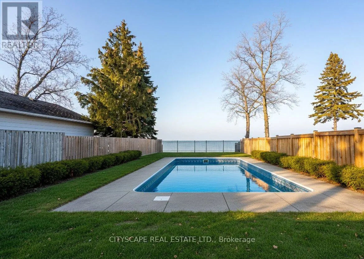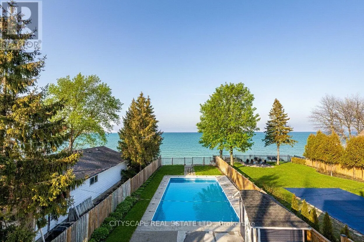 N Service Rd/Campview Rd Welcome to 6 Campview Road a truly exceptional waterfront estate offering luxury, privacy, and rare direct access to the shores of Lake Ontario. This custom-built home spans over 4700 sq ft of elegant living space, Built in 2022, this remarkable home showcases beautiful craftsmanship throughout, w/10' ceilings on the main level, led pot lights, elegant engineered hardwood floors, and a stunning open concept floor plan that seamlessly blends all the living areas together. Expansive windows bring the outdoors in w/ unobstructed views of the water. Chef's gourmet kitchen designed w/ high-end JennAir appliances anchors this home and fts quartz countertops and ample upper and lower cabinetry space. Charming living room w/ a gas fireplace creates the perfect ambiance to sit around and catch up with loved ones. Step into your primary bedroom above designed w/ a large walk-in closet, 5pc ensuite and direct access to your private balcony overlooking the tranquil Lake and its soothing sounds. 4 more bedrooms down the hall w/ ensuites. 9' ceilings on 2nd lvl! The lower level w/ walk-up fts 2 more bedrooms, a full size kitchen, a dining area, a 3pc bath & a rec room w/ electric fireplace. Great for multi-generational living or investment purposes! Spacious backyard w/ inground pool and ample seating areas to entertain! Mins to Downtown Burlington & Niagara Region, Marinas, Trails, Shops, Schools, Major Highways & More. (id:27476)