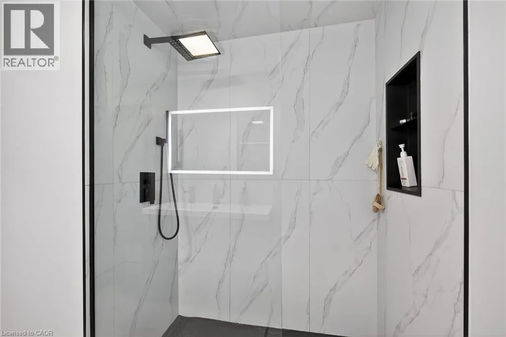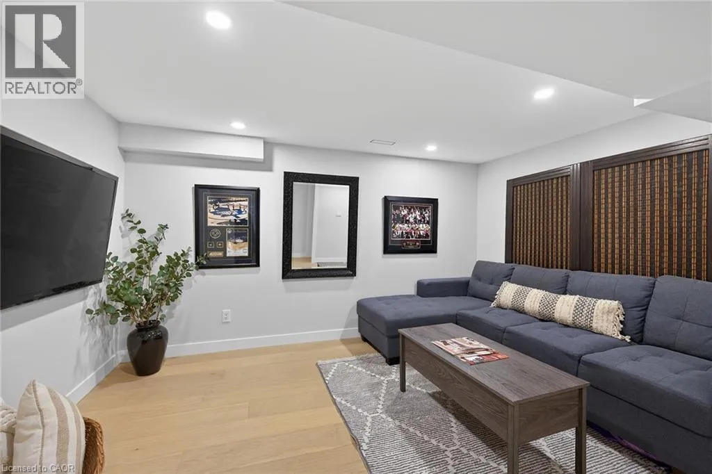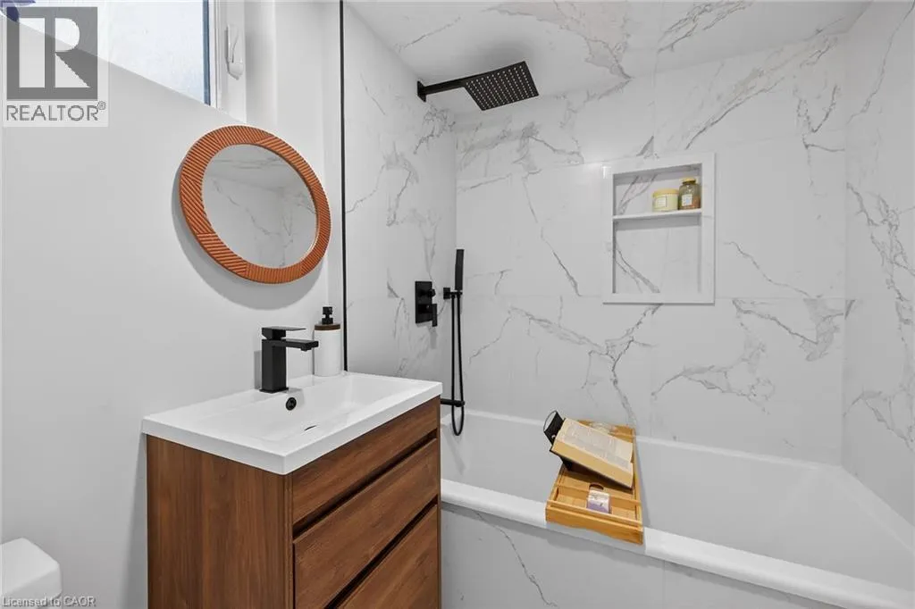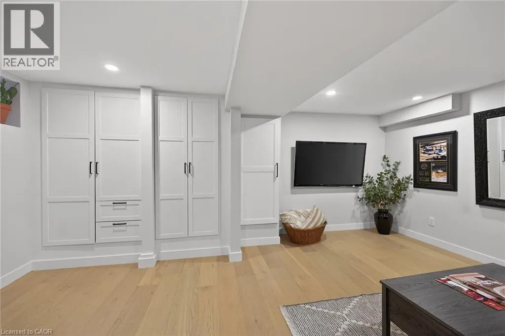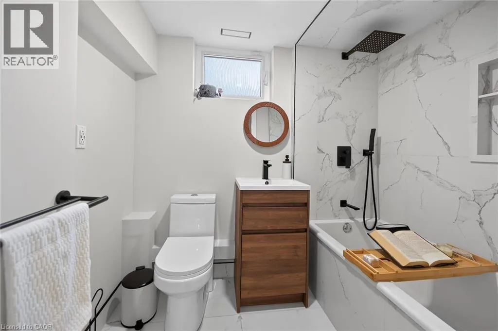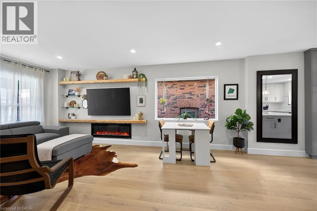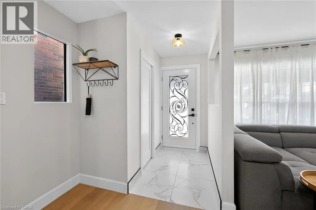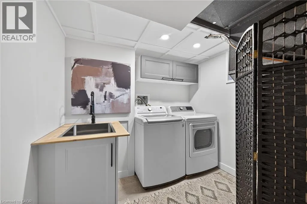 A must see in the heart of Corktown, one of Hamiltonâs most vibrant & walkable neighbourhoods. This thoughtfully designed turn-key 1.5-storey detached home blends modern comfort with low maintenance living, offering 2+1 bedrooms, 3 baths, detached garage & parking for 2 cars. Step inside to an airy open-concept main floor featuring engineered hardwood throughout, recessed lighting & seamless flow between living, dining & kitchen spaces. The stunning functional kitchen, showcases a large island with deep drawers, a pantry with coffee nook, sleek black SS appliances & beverage cooler, perfect for hosting. The second level features 2 sun-filled bedrooms with skylights, built-in cabinetry & his/hers double closets in the primary bedroom. Full bathroom with walk-in shower, tile flooring, double vanity & medicine cabinet, complete the space. The finished basement with over 500 sqft bonus living space offers a large recreation room, built-in closet storage, bright bedroom, 4-piece bathroom with soaker tub, dedicated laundry room & ample storage. Walk out to your private fully fenced backyard that feels like a hidden urban oasis. Surrounded by a natural canopy of mature trees, it features turf that's always green, a deck for lounging & a rare rooftop patio offering the perfect setting for summer backyard entertaining. The detached garage with automatic garage door opener plus additional parking provides two convenient parking spaces. Location is everything & this one delivers! Minutes to St. Joseph's & Juravinski Hospitals, the GO Station, steps to Corktown Park, Rail Trail, dog park, historical Corktown Pub. Within walking distance to the energy of the Augusta Street district, James Street North bars/restaurants, King William Street dining & performances at Theatre Aquarius. Catch a game or concert at the nearby TD Coliseum & enjoy quick mountain access via Claremont, Jolley Cut or Sherman Access. Stylish, smart & exceptionally located. This is Corktown living at its best. (id:27476)