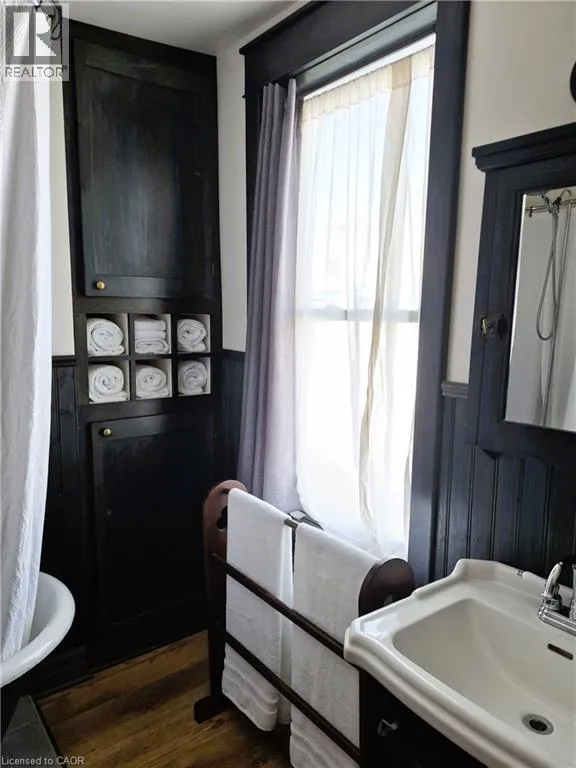 John St S. to Charlton Ave E between Ferguson & Aurora A must-see for those seeking something truly special. Outstanding inside & out with no stone left unturned! Tucked away at the base of the escarpment, this thoughtfully renovated 2-storey, 2-bedroom, 1-bath home is full of character, creativity, and modern comforts and convenience. From its clever storage solutions to its private âsecret gardenâ patio, every detail has been carefully designed to make the most of both space and style. Step inside to discover an updated kitchen thatâs as functional as it is beautiful, featuring built-in banquette seating with hidden storage, a pull-out butcher block for added prep space, subway tile backsplash, and generous cabinetry. The living room offers built-in glass display shelves with lighting to add ambiance and charm, perfect space to enjoy company with and the walkout to a private oasis for morning coffee or evening gatherings highlighted with stunning interlock and flagstone patio and the wood stairs to get to a meditating garden! â Upstairs, the primary bedroom delights with a âsecret closetâ concealed behind a bookshelf, while the large 4-piece bathroom features an extra-long clawfoot tub and pedestal sink for a touch of vintage luxury. Additional highlights include two-car private parking â a rare and valuable find â and a unique sense of privacy and tranquility steps from St. Joeâs, GO station & amenities. Low maintenance with economical running costs, this one-of-a-kind Corktown home offers the perfect blend of historic charm, smart updates, and whimsical details. Like we say this is a must-see for those seeking something truly special. (id:27476)